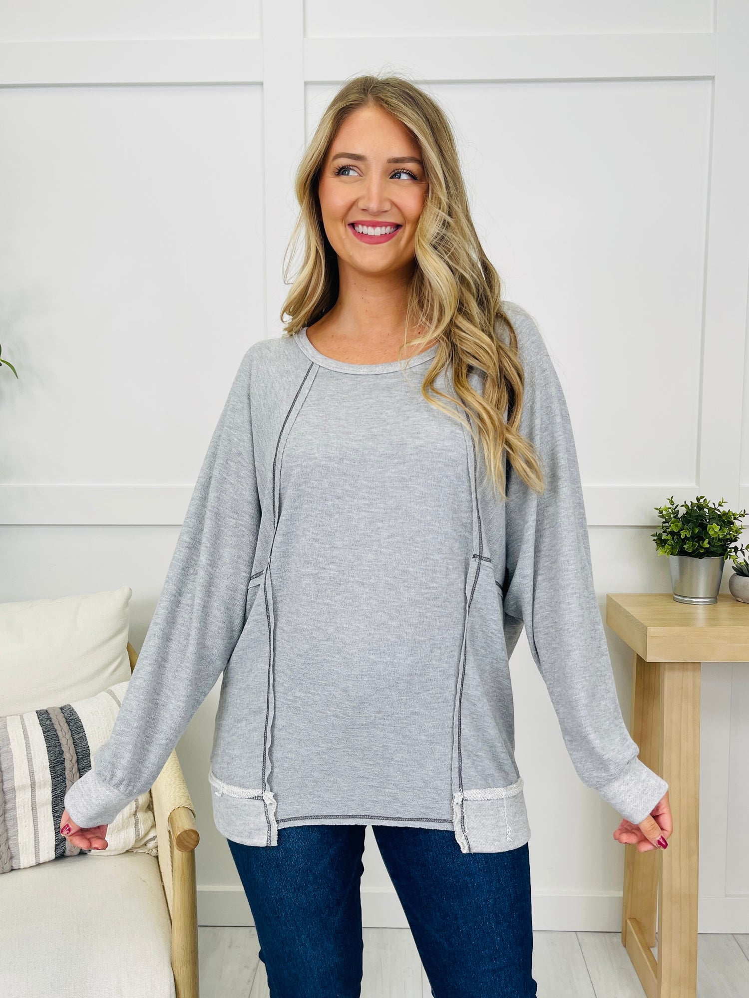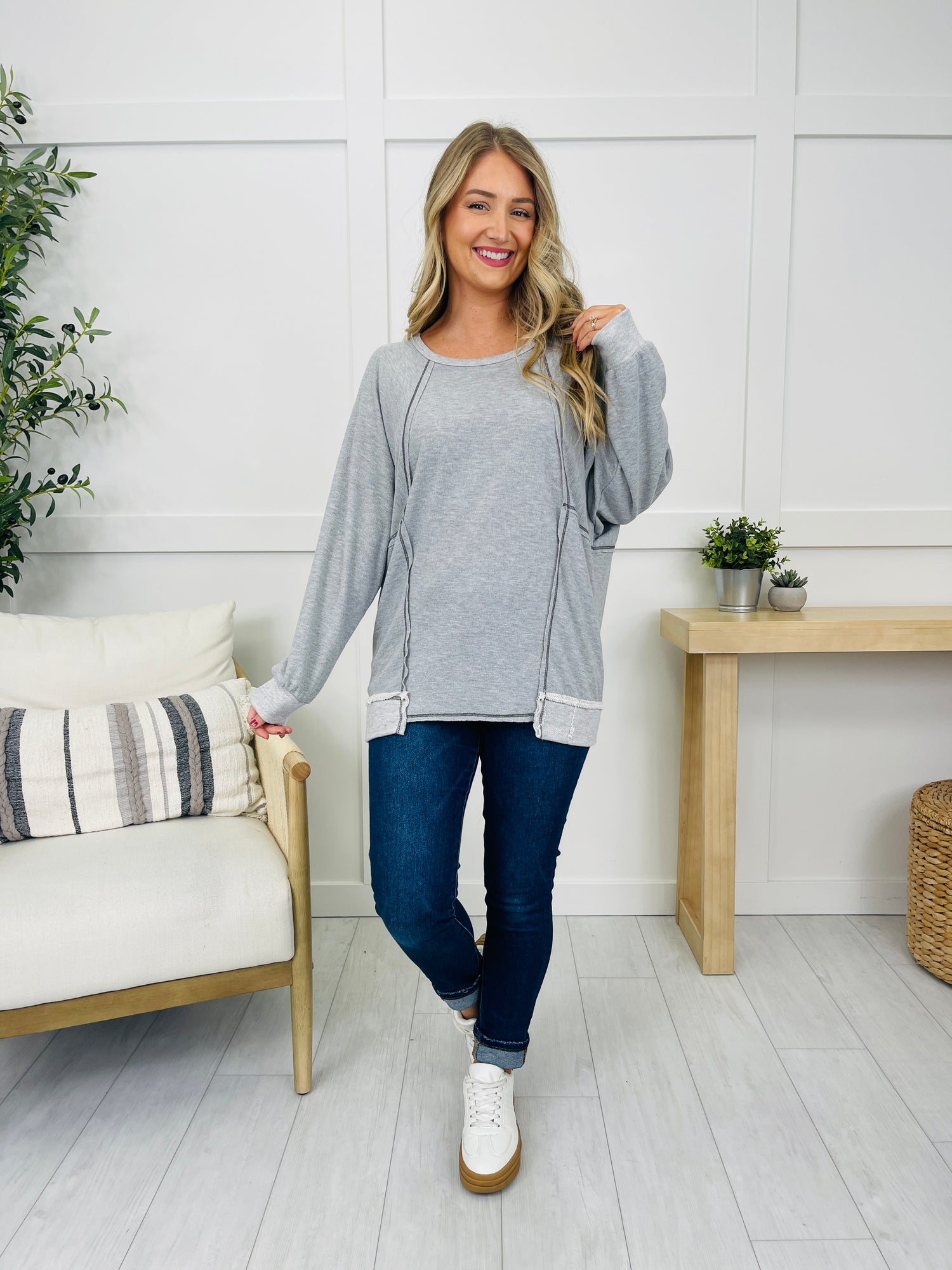 Keep things comfy and casual with this easygoing top featuring exposed seam detailing for a touch of laid-back charm. The soft, heathered gray tone adds versatility, while the relaxed silhouette makes it perfect for daily wear. Whether styled with jeans or leggings, this piece delivers effortless comfort with a polished, put-together feel.