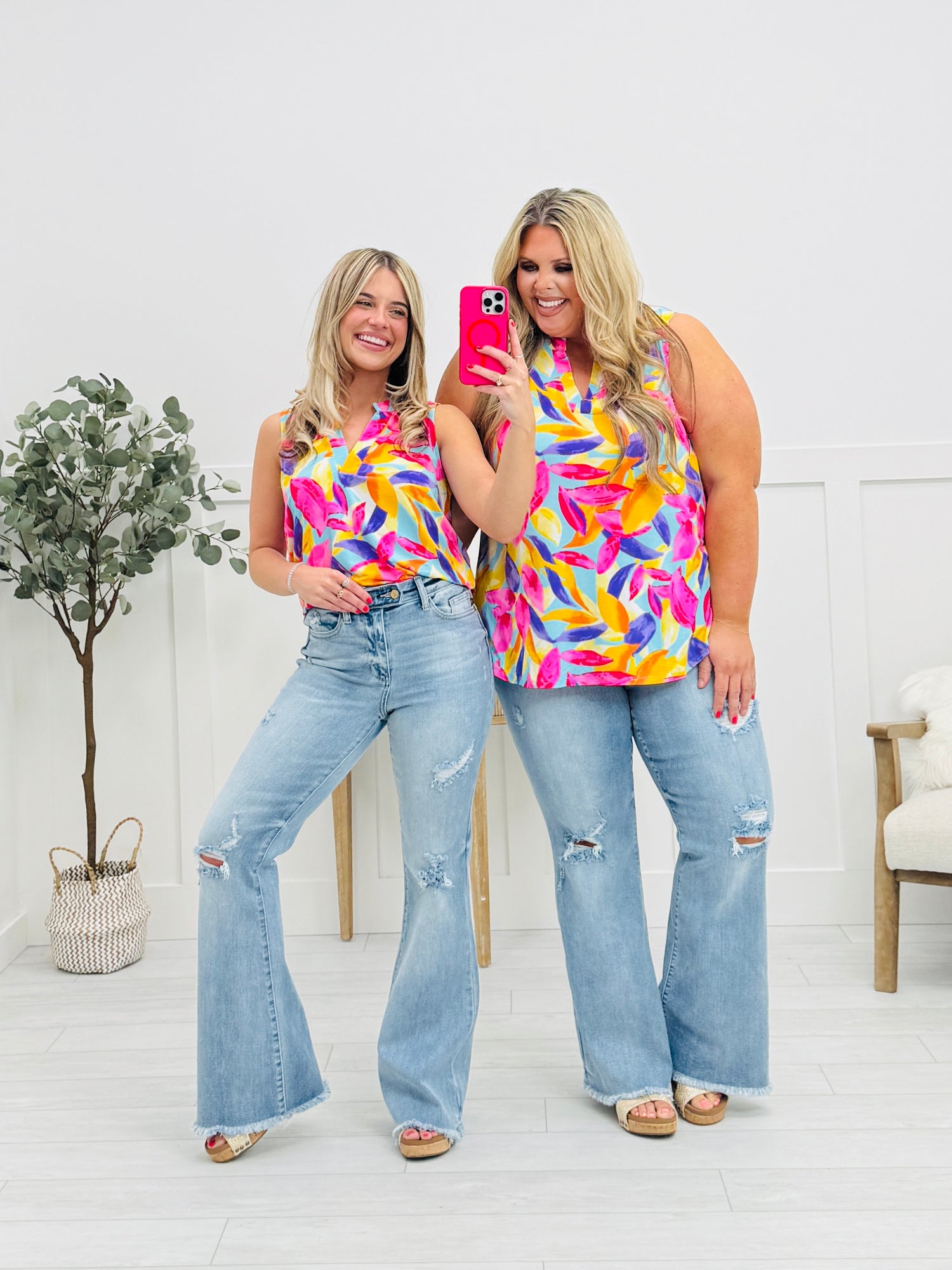 This best selling tank top is perfect for sunny days and is now available in a brand new, bold print that we can't get enough of! This tank top is 100% wrinkle free, which makes it easy to get up and go this summer or to throw it in a beach bag or suitcase when needed.