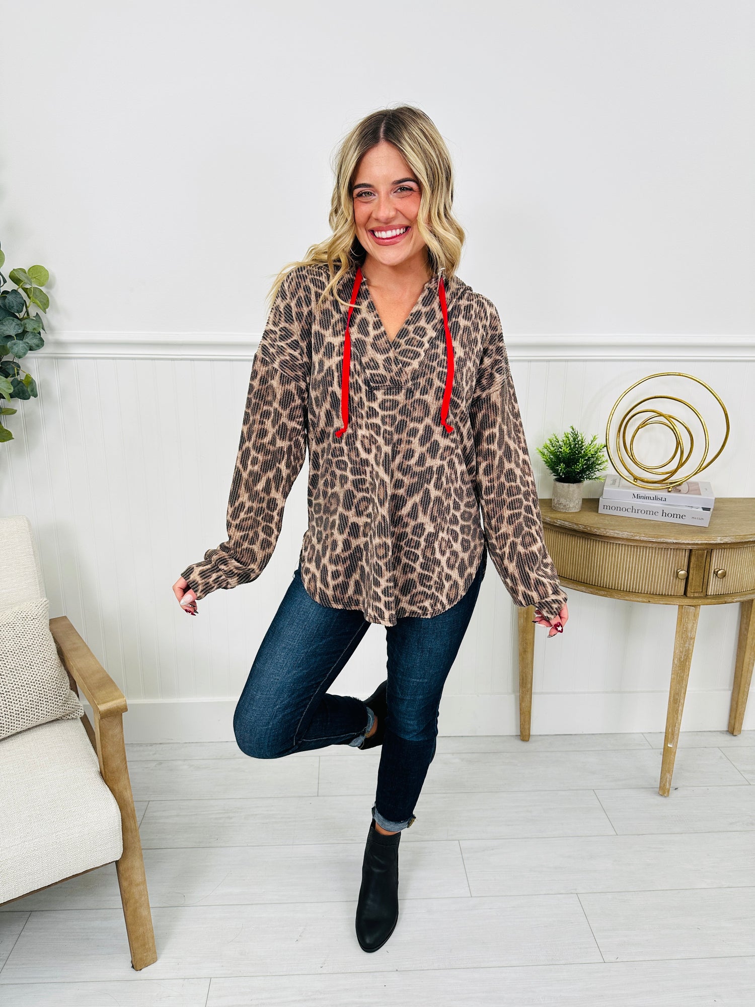 This top is perfect to pair with both jeans and leggings, which is always a win in our book! The hood adds a laid-back touch, making it perfect for everything from lounging to layering for a night out. This new arrival is a must have for leopard lovers looking to add a little luxe to their look!