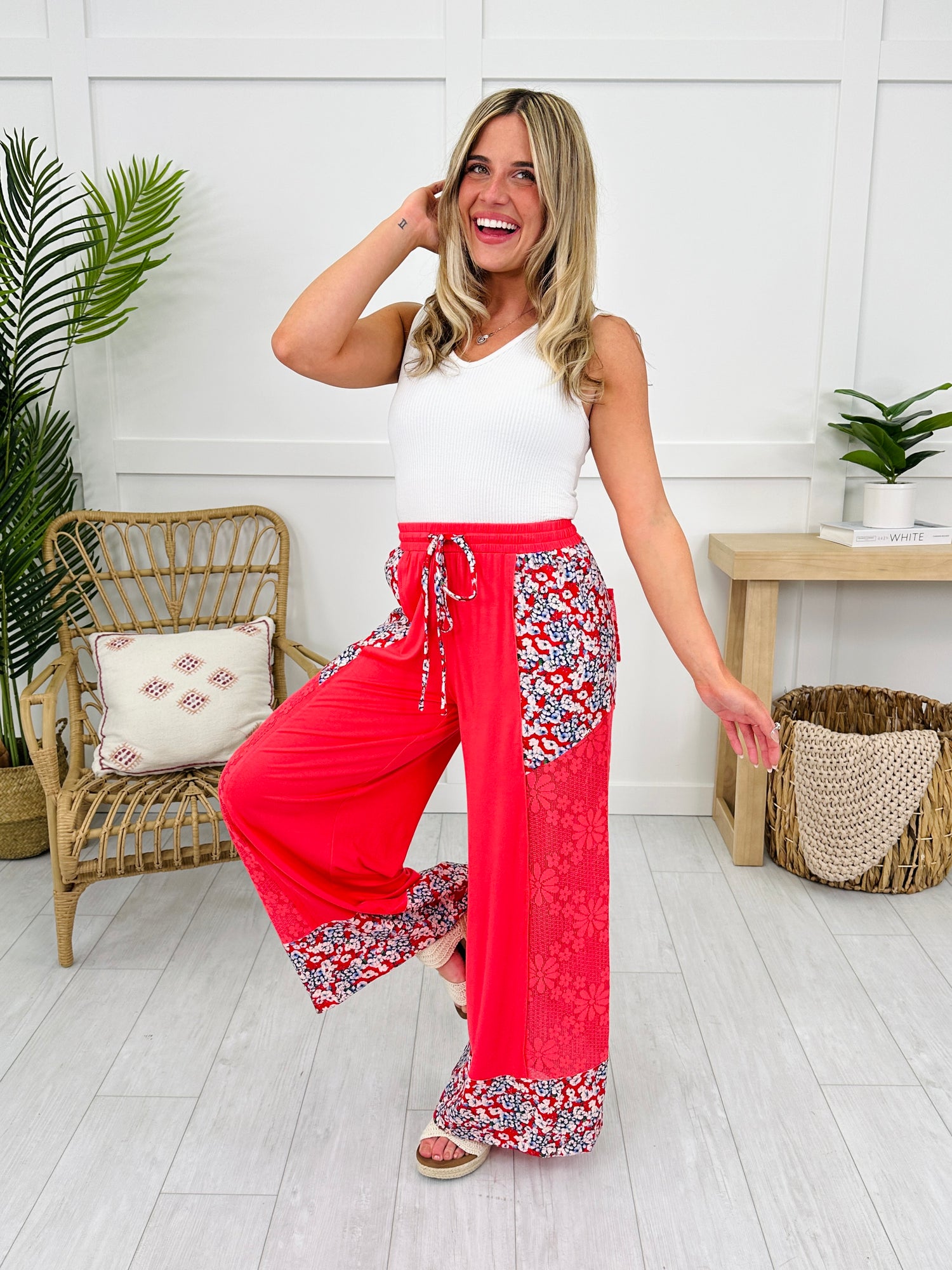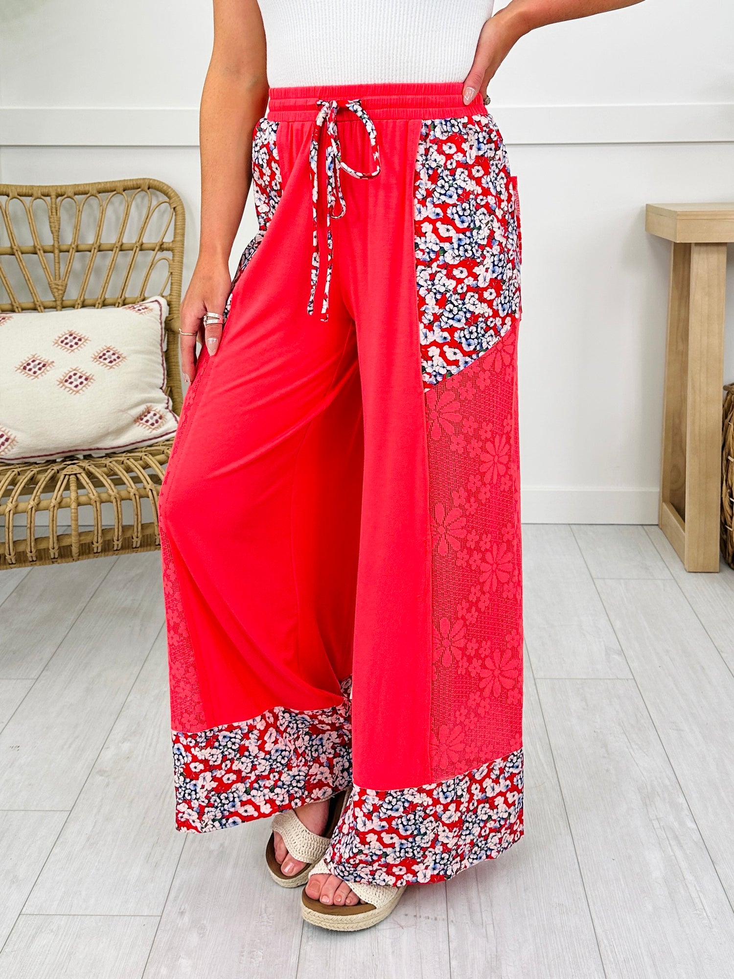 Featuring playful floral design panels and a touch of lace detailing along the sides, they offer a chic blend of comfort and style. The adjustable drawstring waist ensures the perfect fit, while the versatile design makes them easy to pair with just about anything!