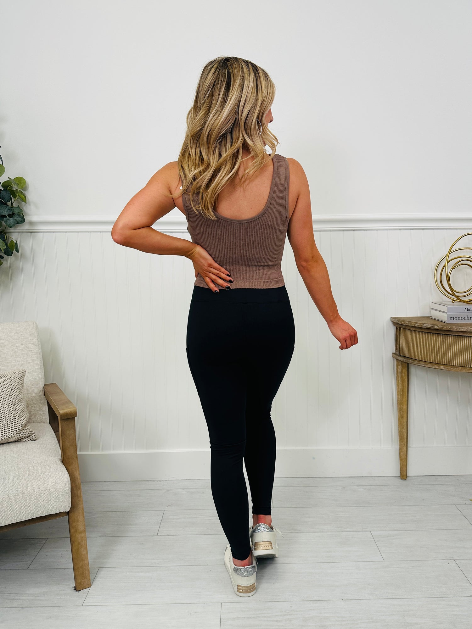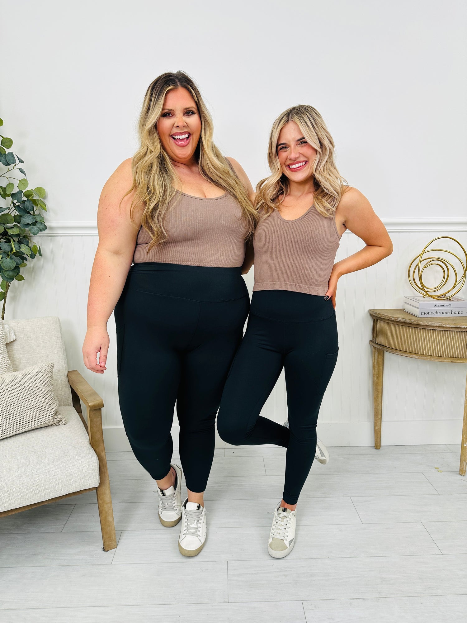 They're finally back in stock after months of waiting! Our viral, buttery soft leggings are loved and begged for by our customers. They feature the softest and stretchiest fabric for the most comfortable fit. The wide tummy control wasitband holds you in in all the right places and the pockets are perfect for holding your phone!
