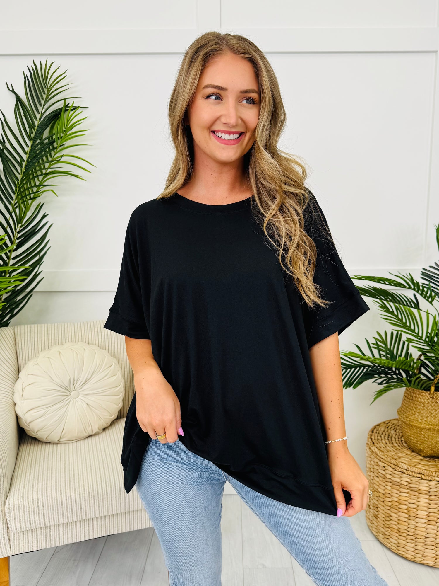 This tee is made for casual days and comfy vibes! With a relaxed roomy fit and side-slit hem, it’s the perfect throw-on-and-go style you'll reach for on repeat. Grab it in every color to keep your everyday outfits effortlessly cute and put together.