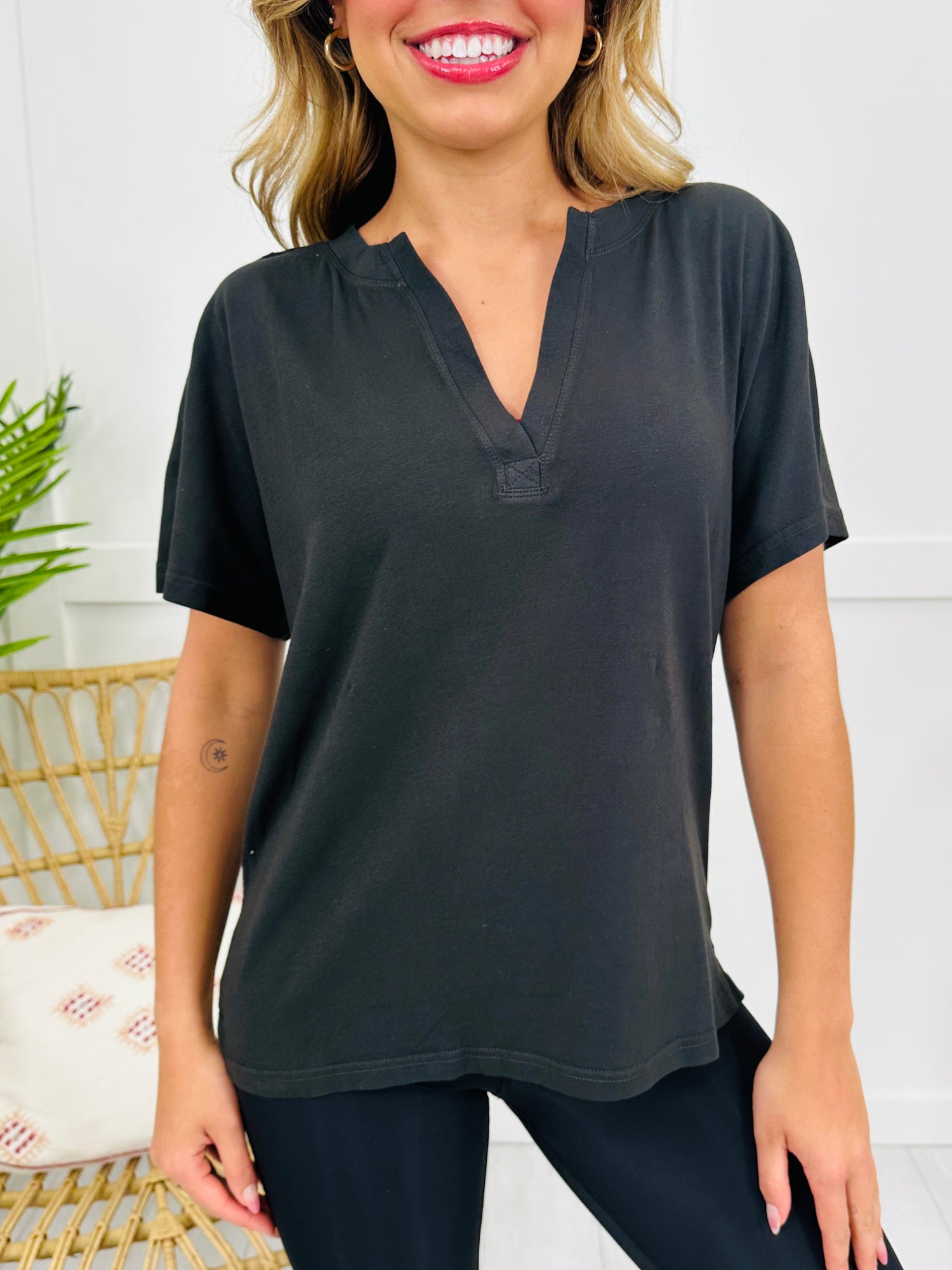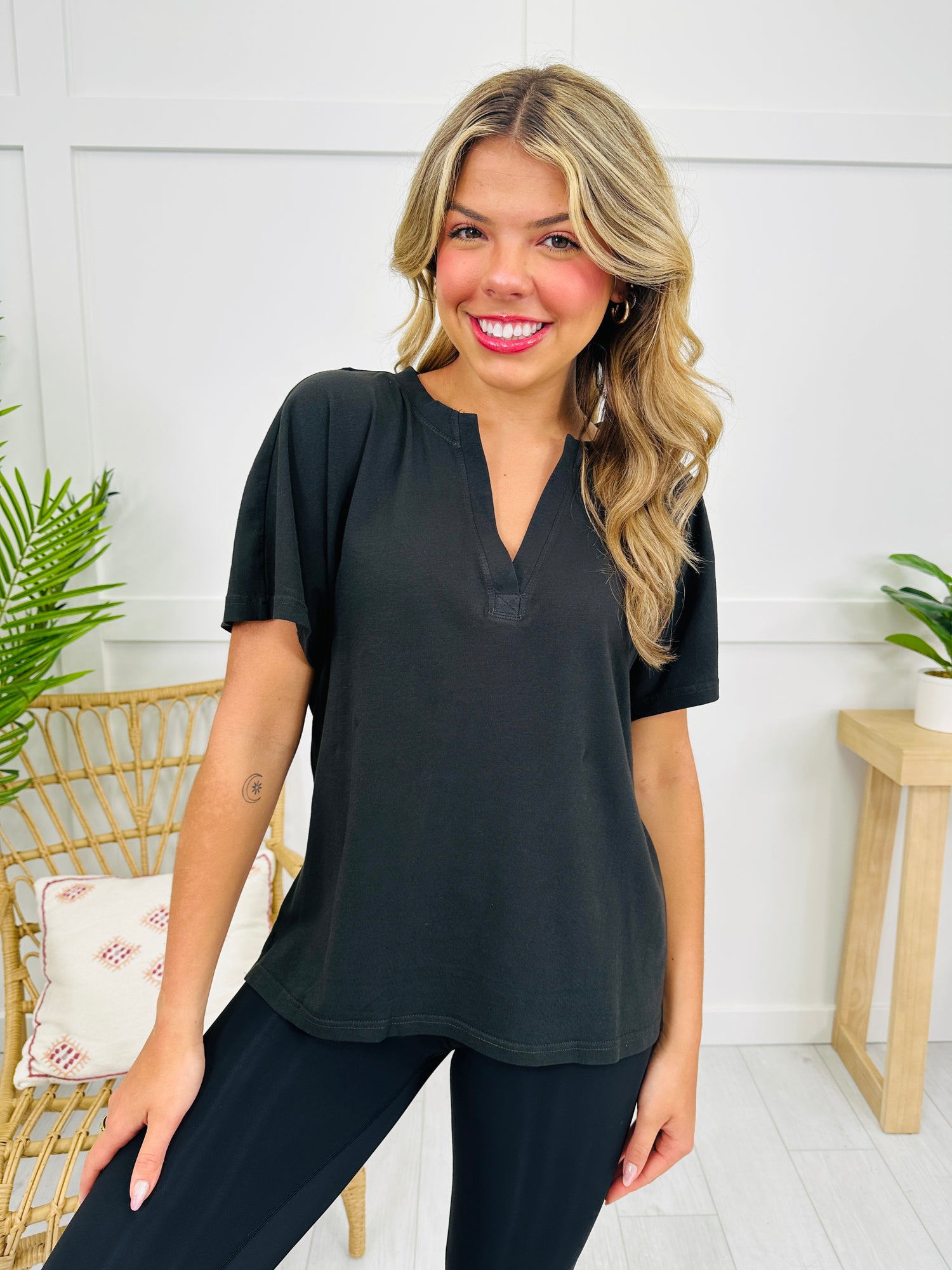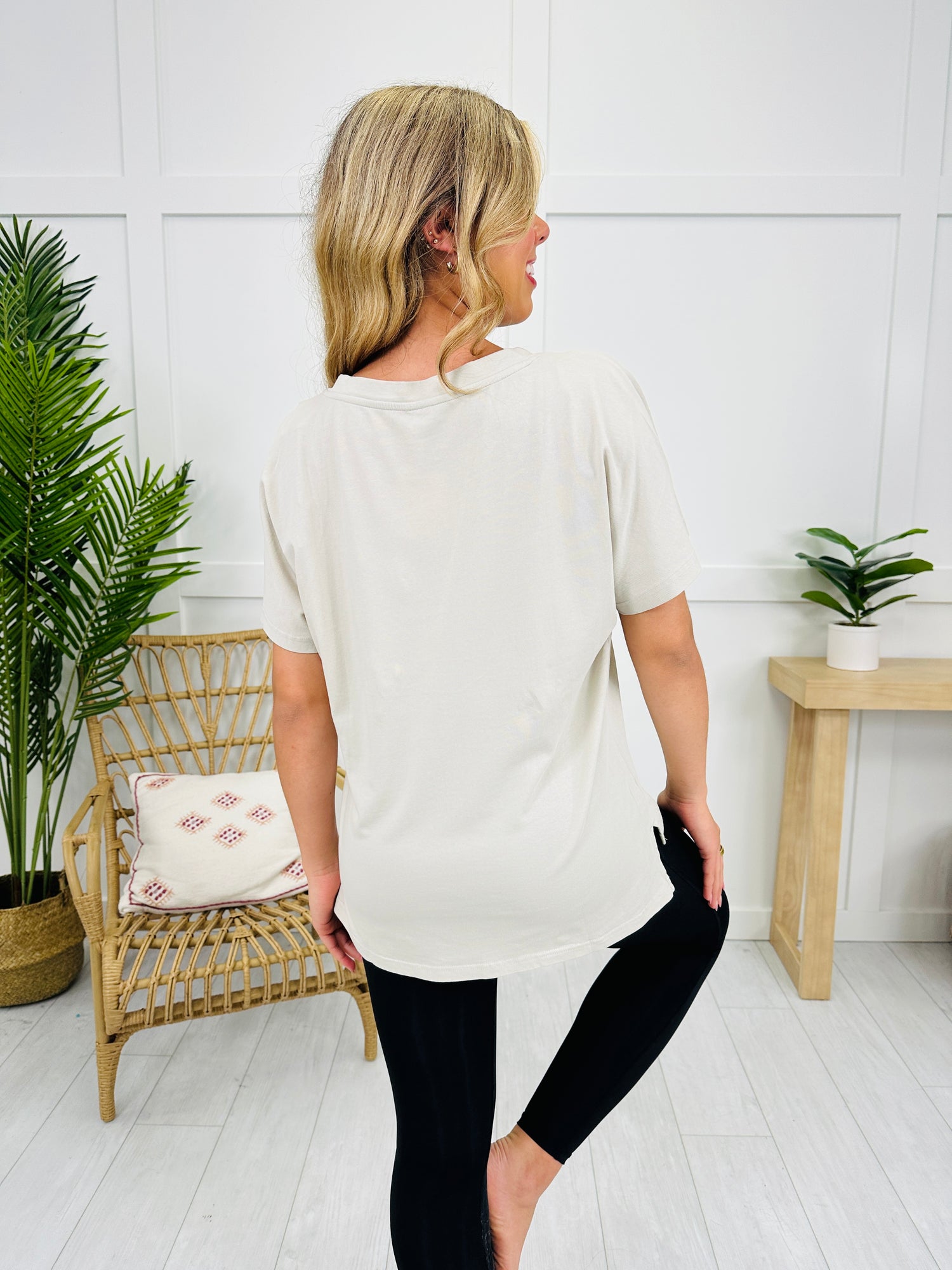 This ultra-comfy top comes in two neutral colors and features a comfy and casual v-neck design. Its relaxed and flowy fit provides comfort and style, making it the perfect versatile addition to any wardrobe.