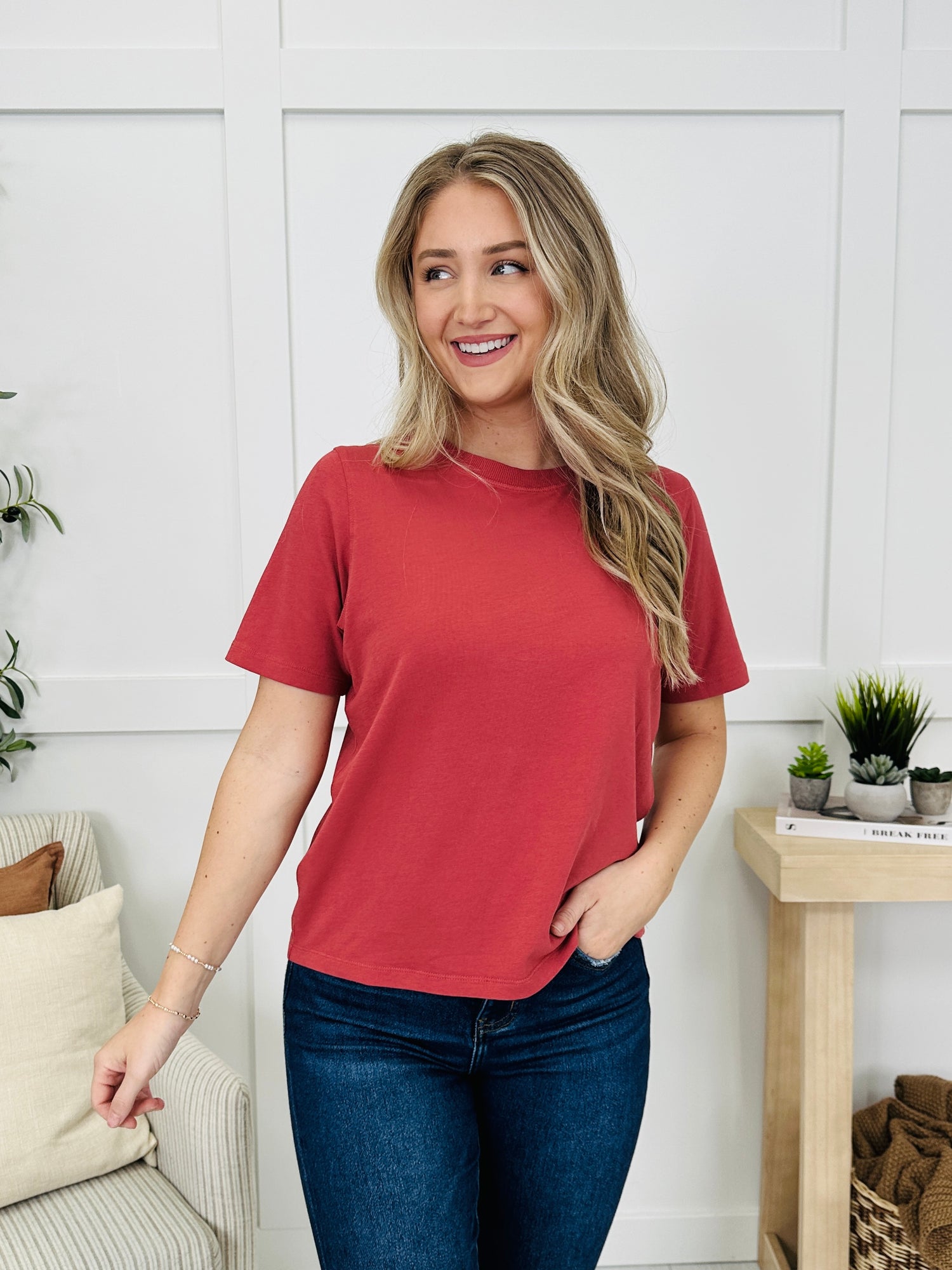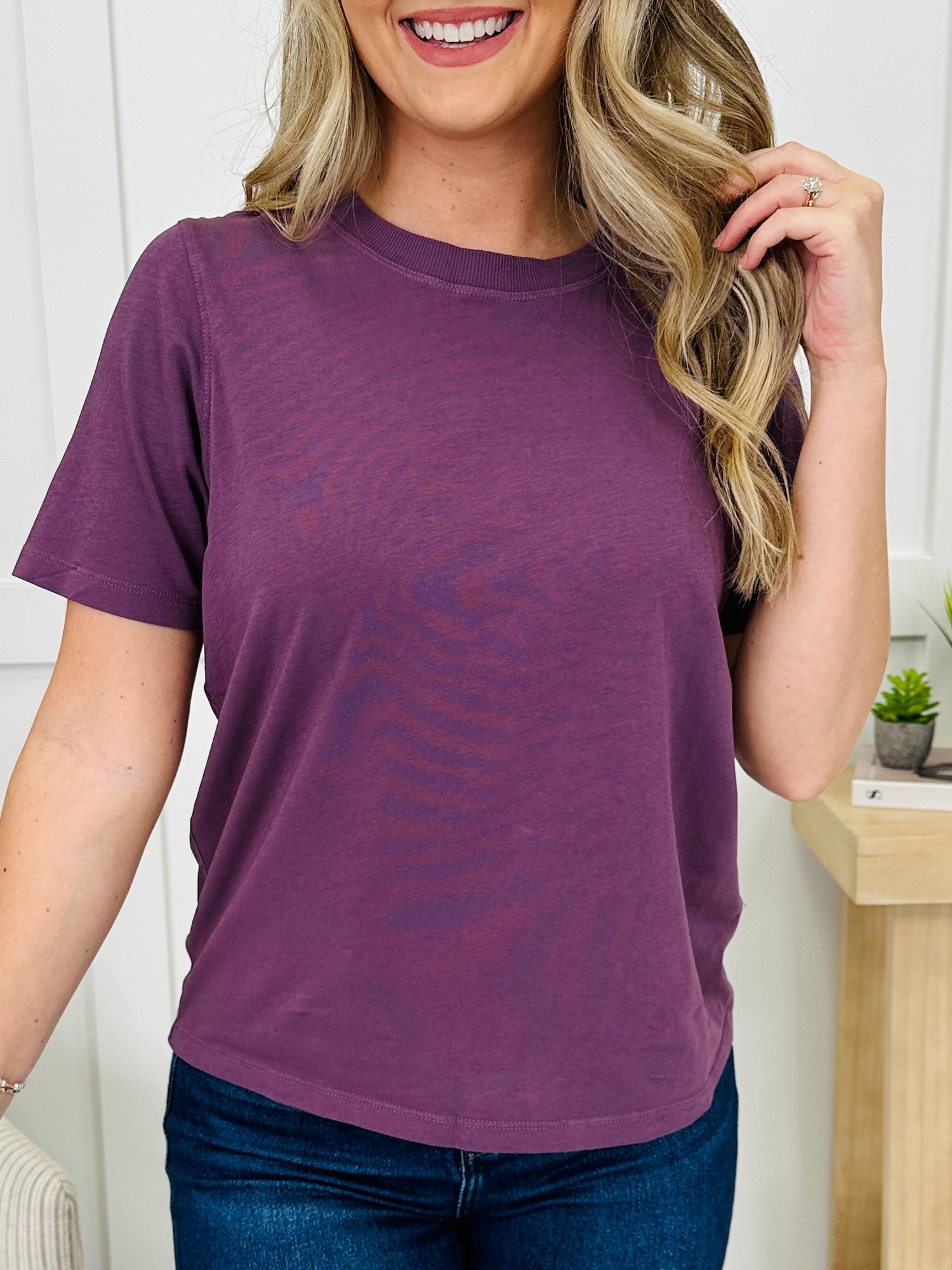 Your new go-to tee—simple, timeless, and easy to style. The solid body keeps things sleek while the crew neckline and short sleeves deliver that classic look you’ll reach for on repeat. Finished with a clean hem and a relaxed, everyday silhouette, it layers or stands alone with zero effort.
