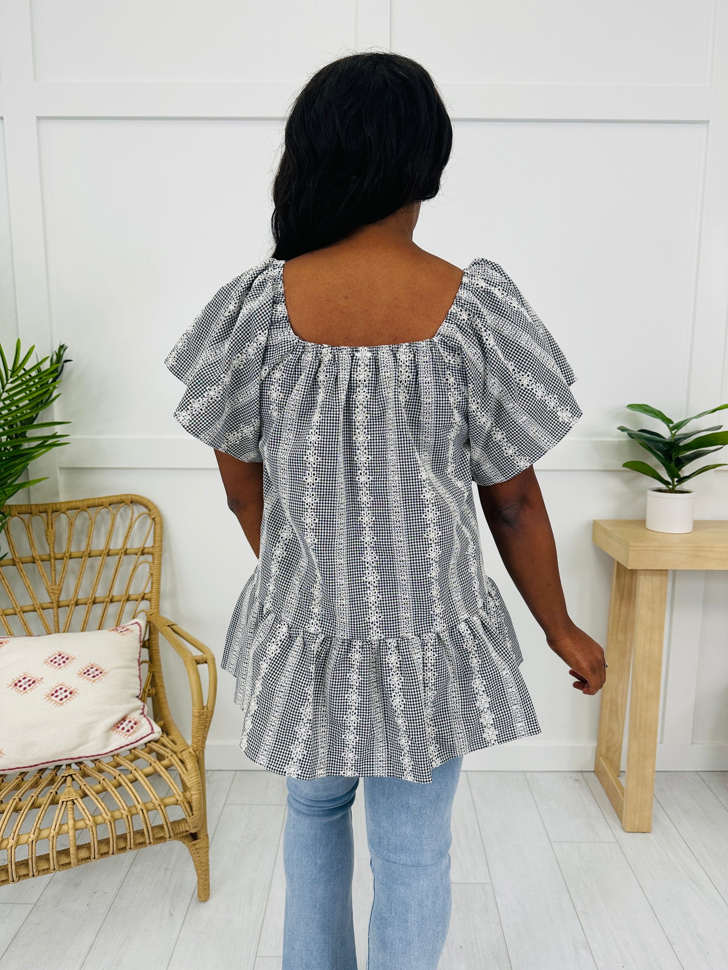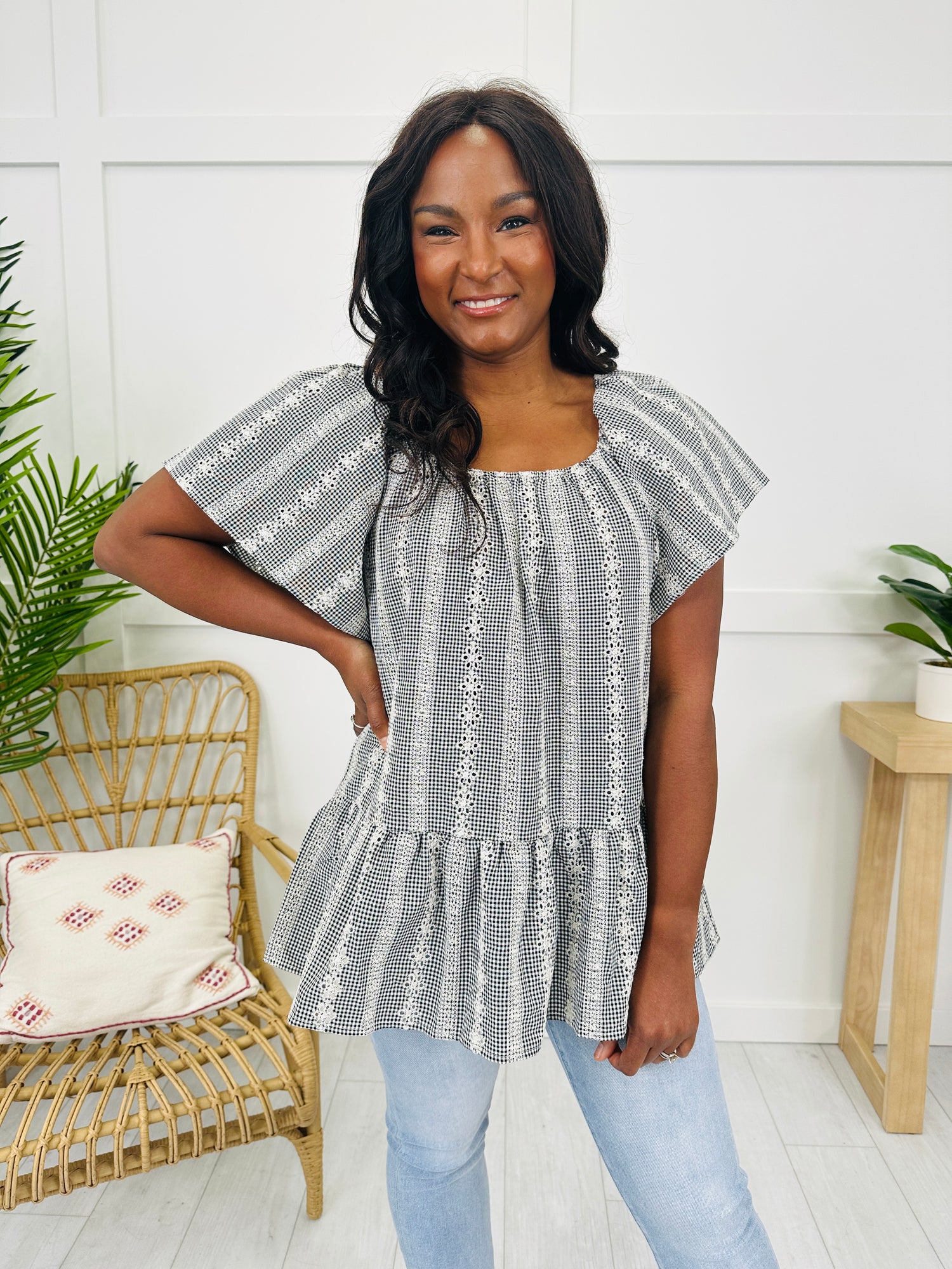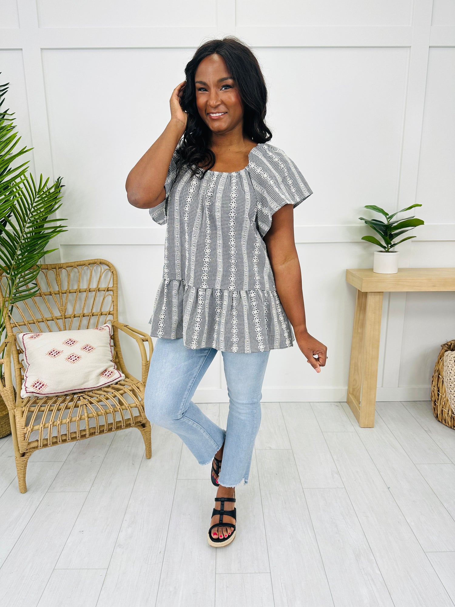 This top offers a relaxed yet elegant fit that’s both comfortable and flattering. Its tiered hem adds a playful touch, while the textured fabric ensures on-trend style. This versatile piece is perfect for any occasion, whether you're dressing it up with accessories or keeping it casual with jeans, effortlessly adding a chic vibe to your look.