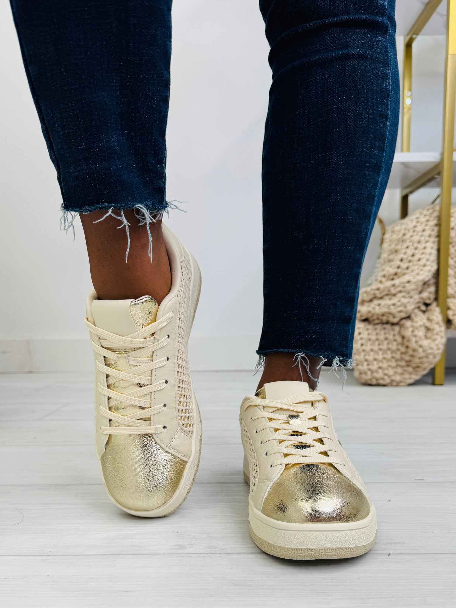 These stylish sneakers feature a striking metallic star detail that adds a pop of shine to any outfit. The textured finish gives them a modern, sophisticated look, while the lace-up design ensures a secure and customizable fit. Perfect for adding a trendy touch to your casual wear, these shoes are both fashionable and comfortable for all-day use.
