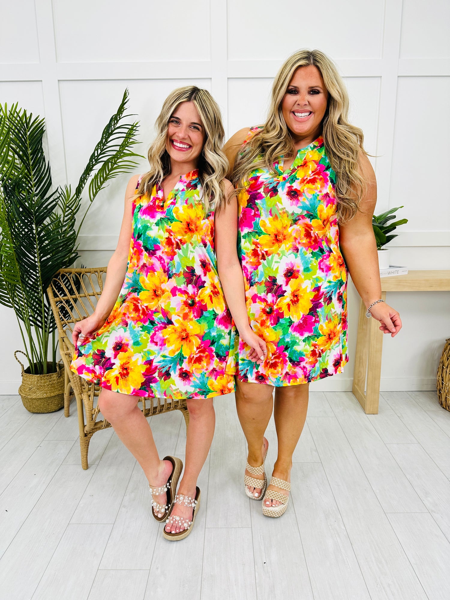 The Palms and Plans dress is officially our best selling dress this season. It's made form our best selling wrinkle material, which is cool to the touch and perfect for warmer weather! Our customers rave about this amazing material! This dress is flowy and flattering on every single body type. Did we mention it has pockets? This dress is so versatile, too! You can dress it up to brunch, church, wedding showers, and other events, and because it is wrinkle free, you can also throw it in bag and use it has a bathing suit cover up.