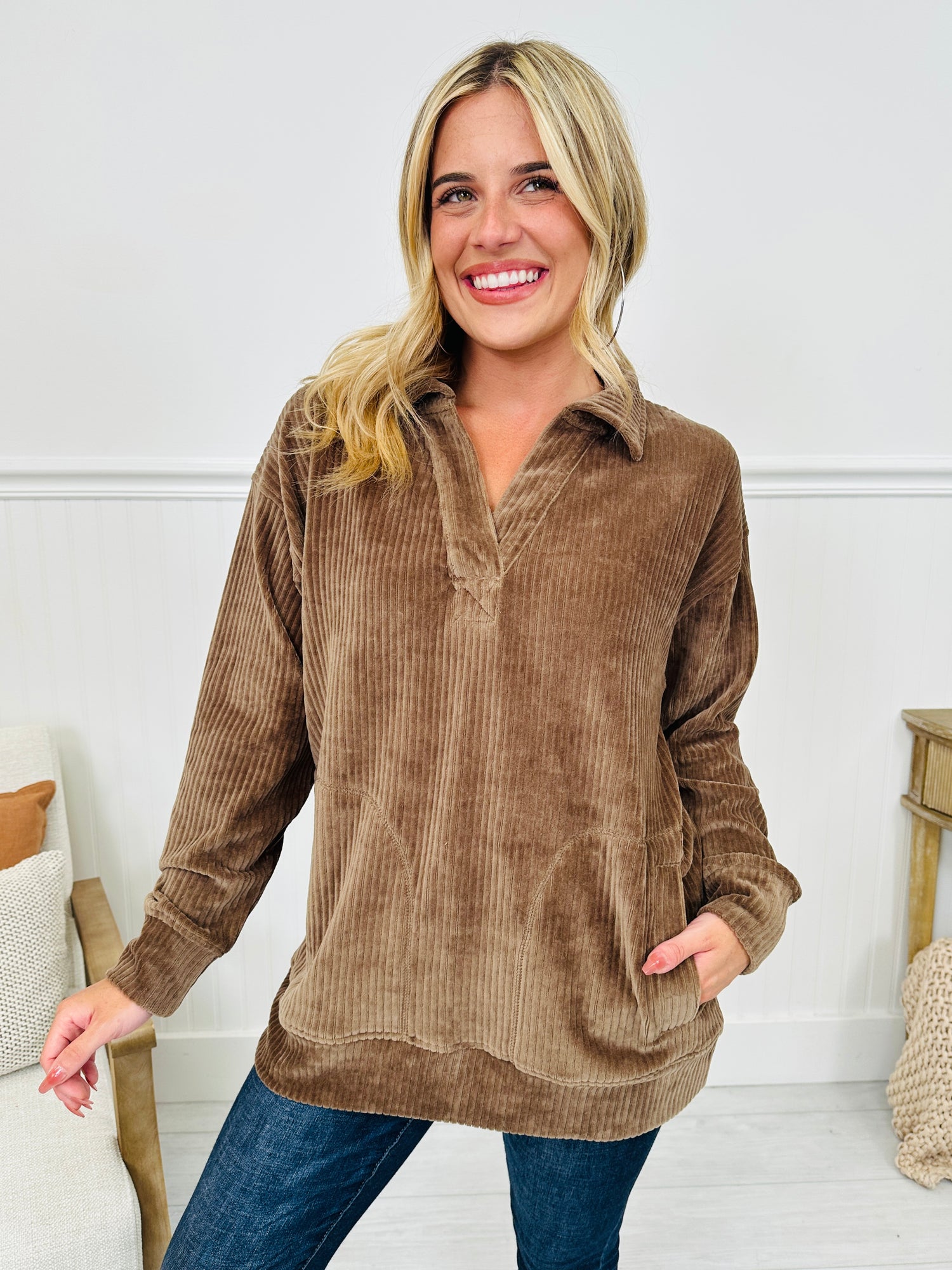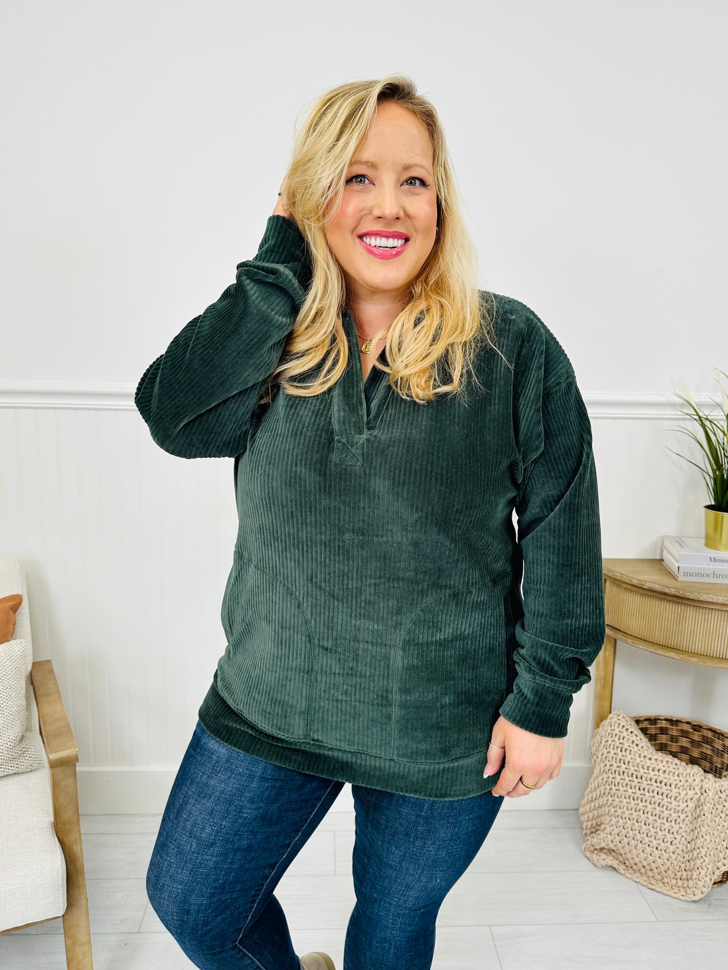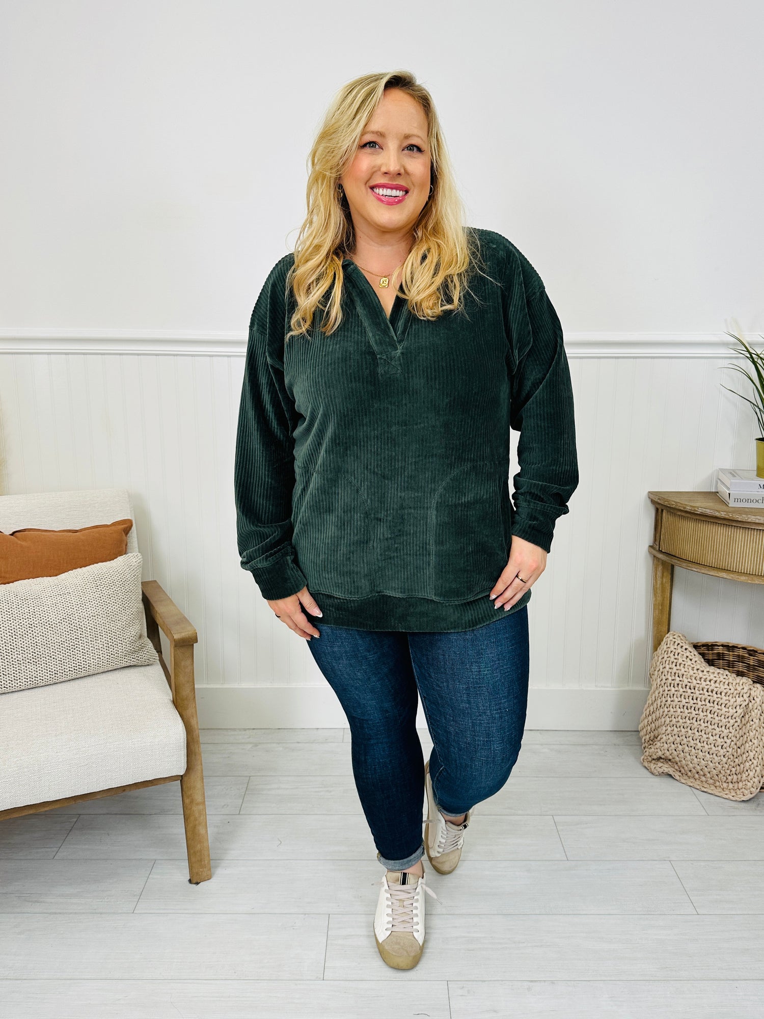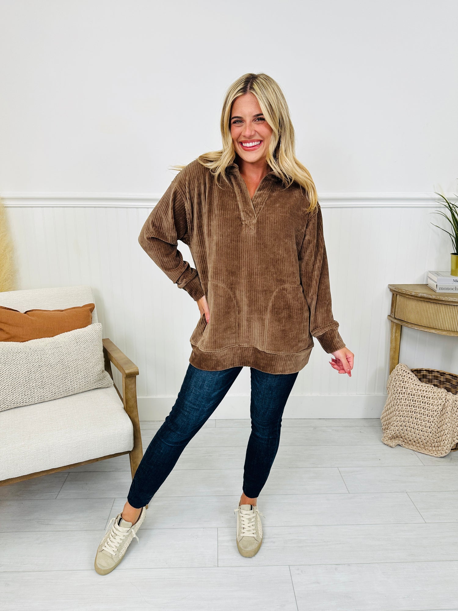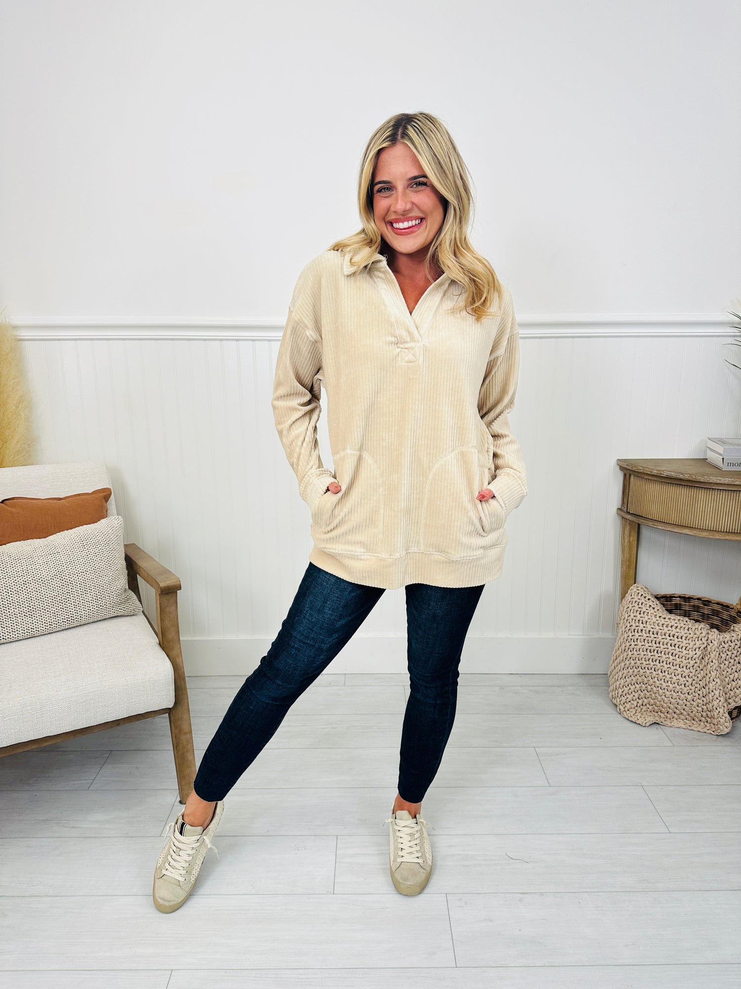 The perfect pullover for fall is here and it's made from the softest plush material you will ever put on your body! The buttery soft material is medium weight and you will not overheat in it. We love the flowy fit that is flattering on every single body type. The length is perfect to pair with both jeans and leggings, making it the perfect top for fall. Pair with sneakers or booties for multiple, versatile looks. At and only $38, you should probably get multiple colors!
