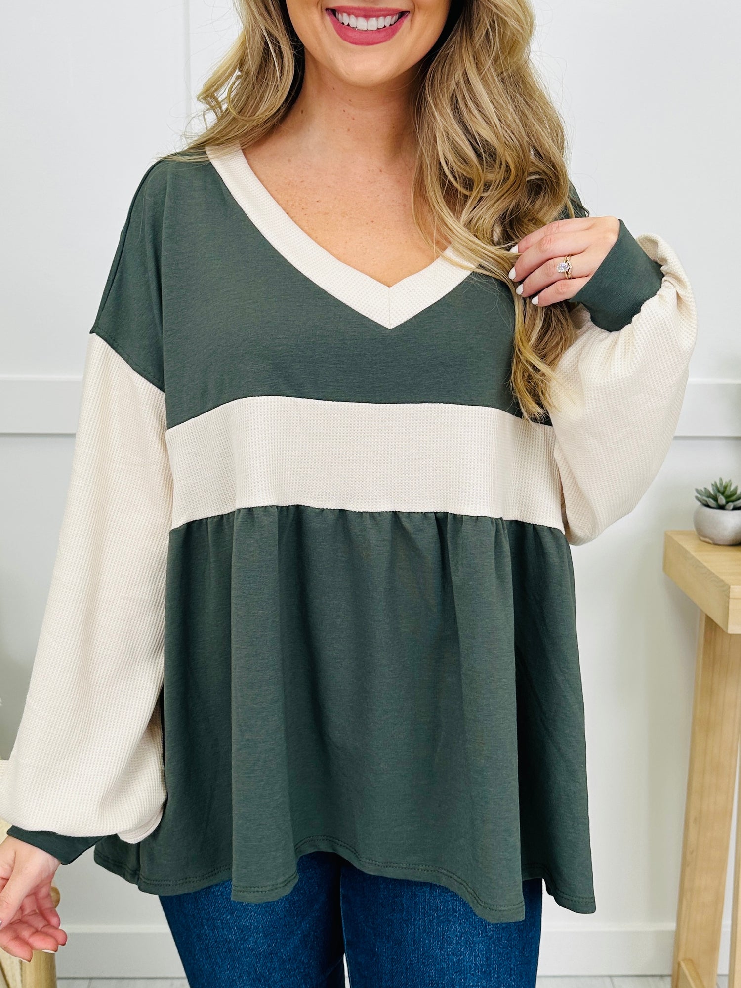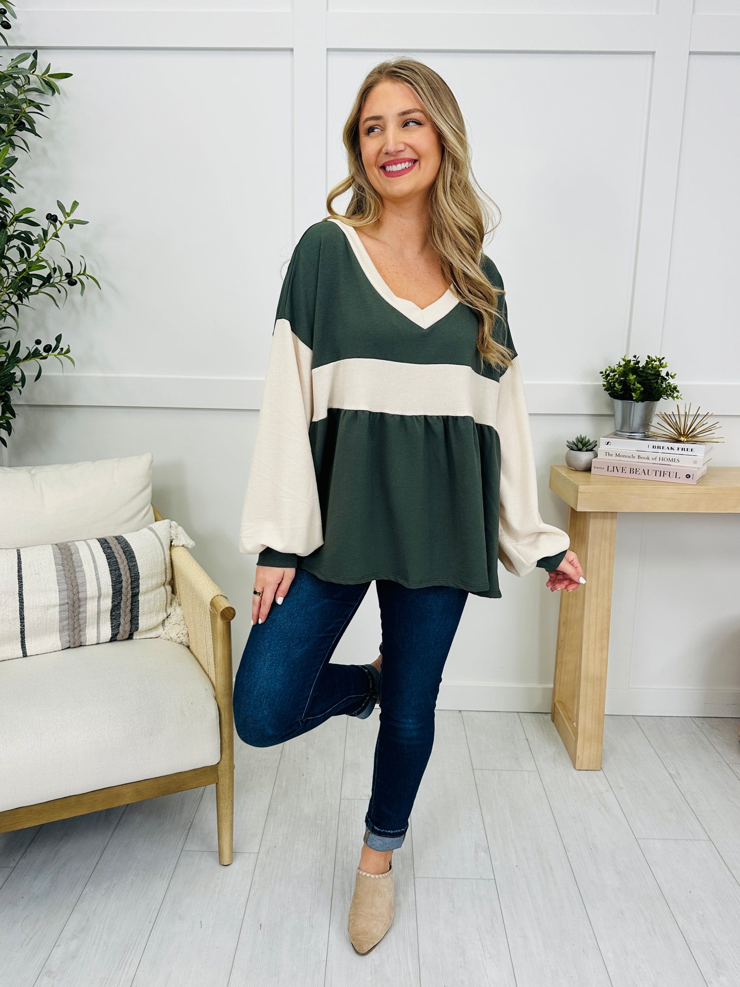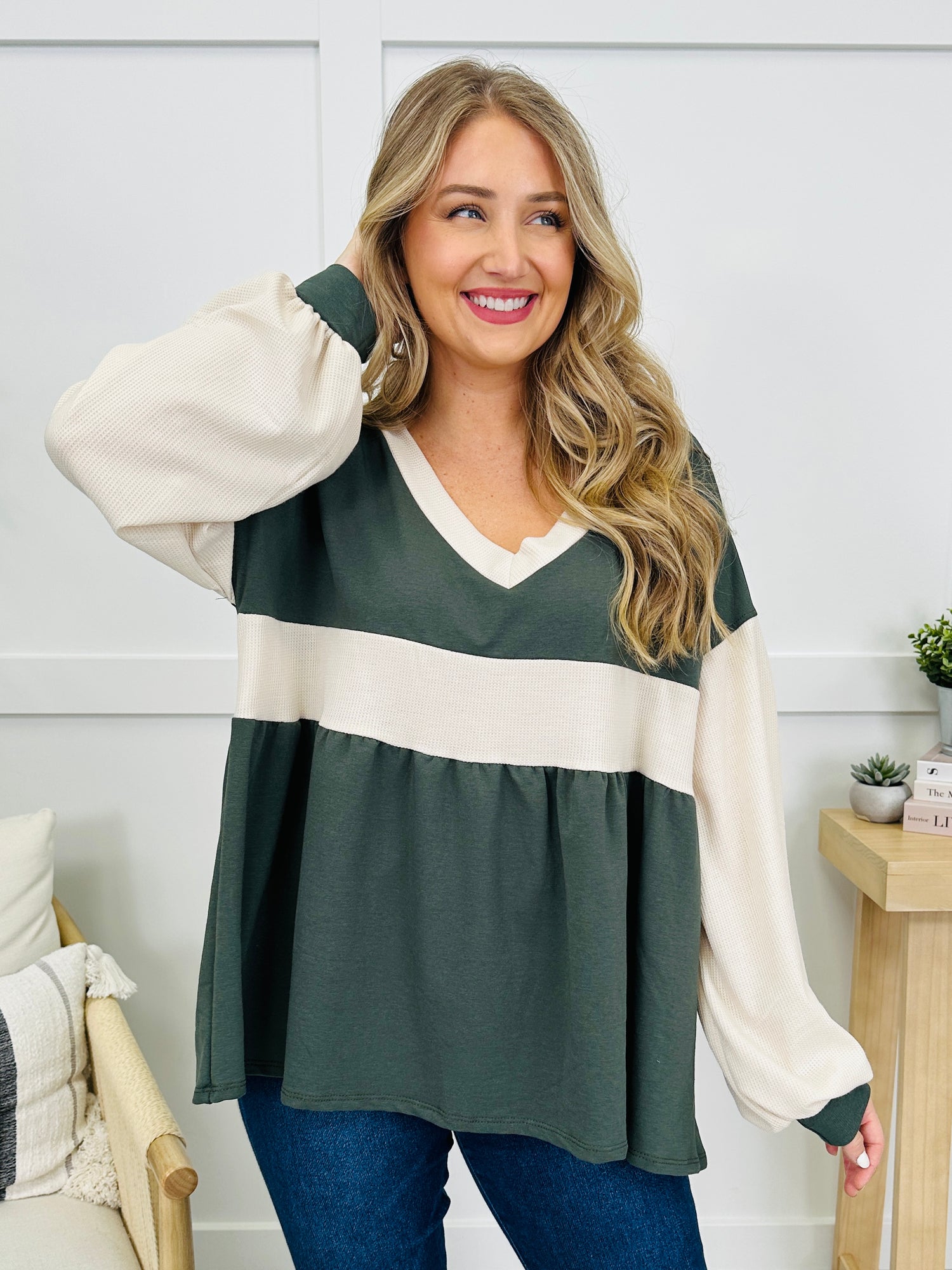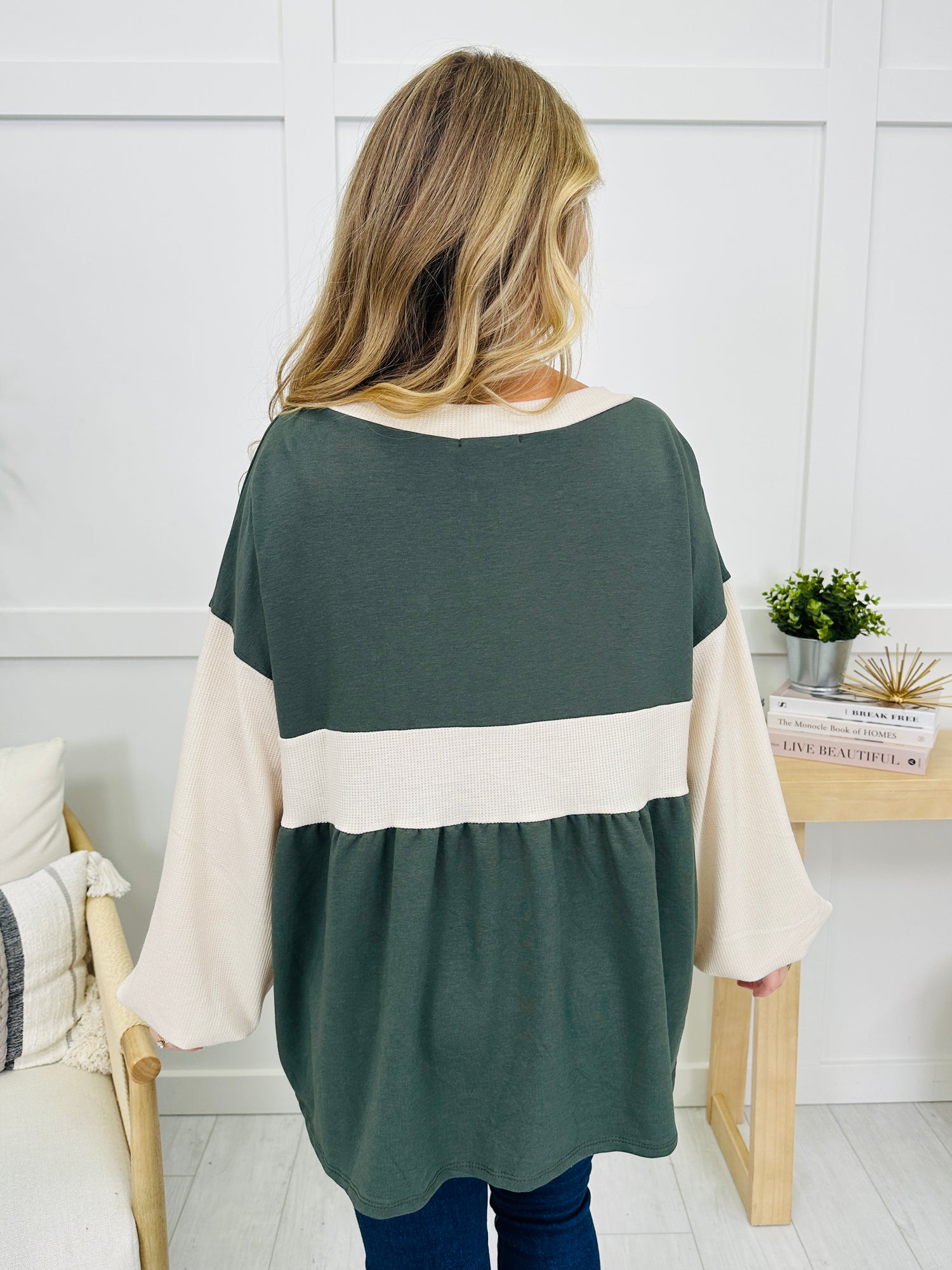 Effortlessly casual yet stylish, this color block top is the perfect mix of comfort and charm. The contrasting panels and textured cream sleeves give it a playful, modern touch, while the flowy relaxed fit keeps it comfy and flattering. Finished with a soft v-neckline and loose sleeves, this piece pairs beautifully with your favorite jeans for a laid-back, polished look.