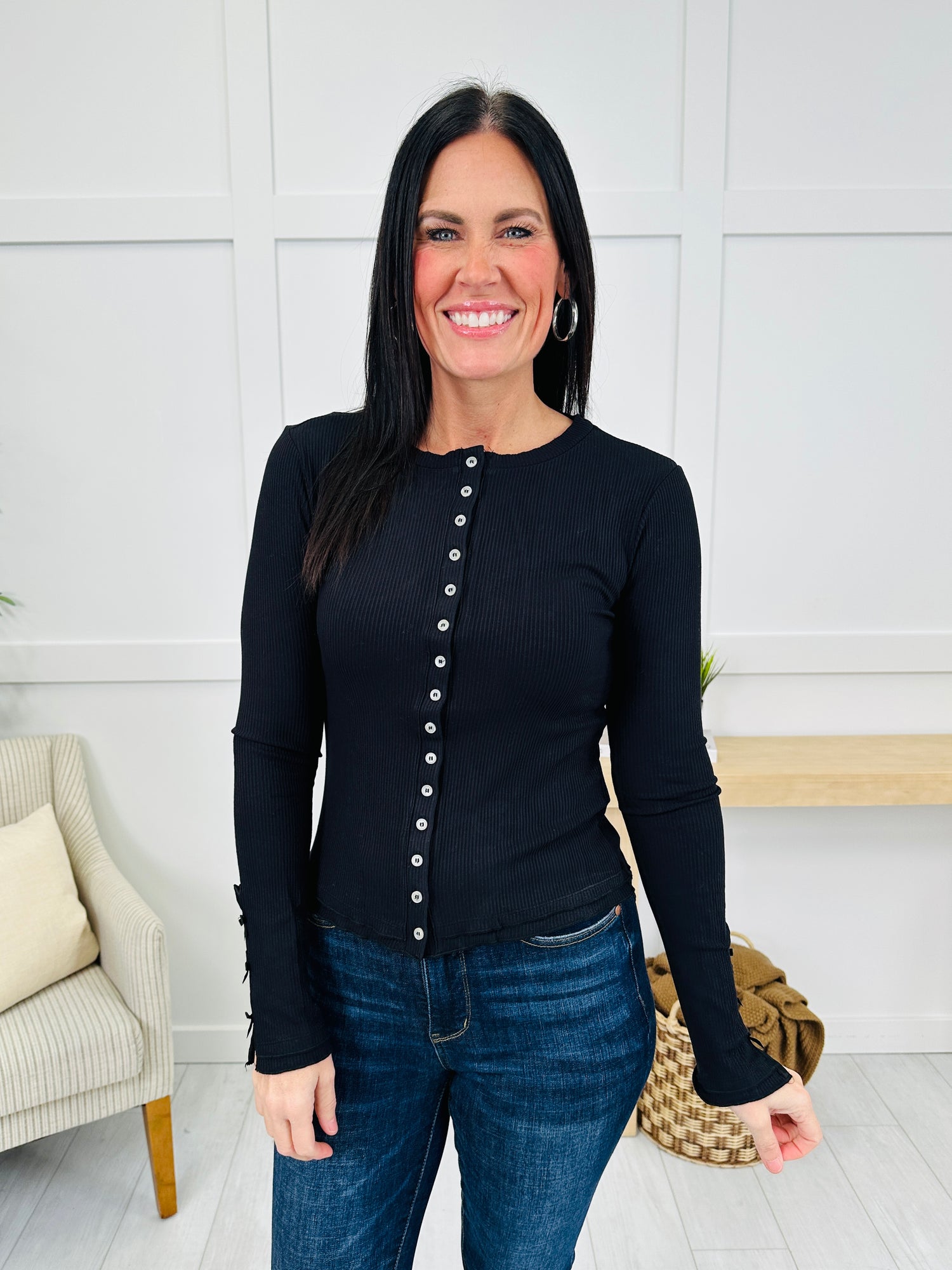 Simple, timeless, and effortlessly chic—this top is the perfect everyday staple. The button front detail adds a touch of charm, while the fitted silhouette flatters your shape and layers beautifully. Finished with a classic crew neckline, it’s a must-have neutral you’ll reach for season after season.