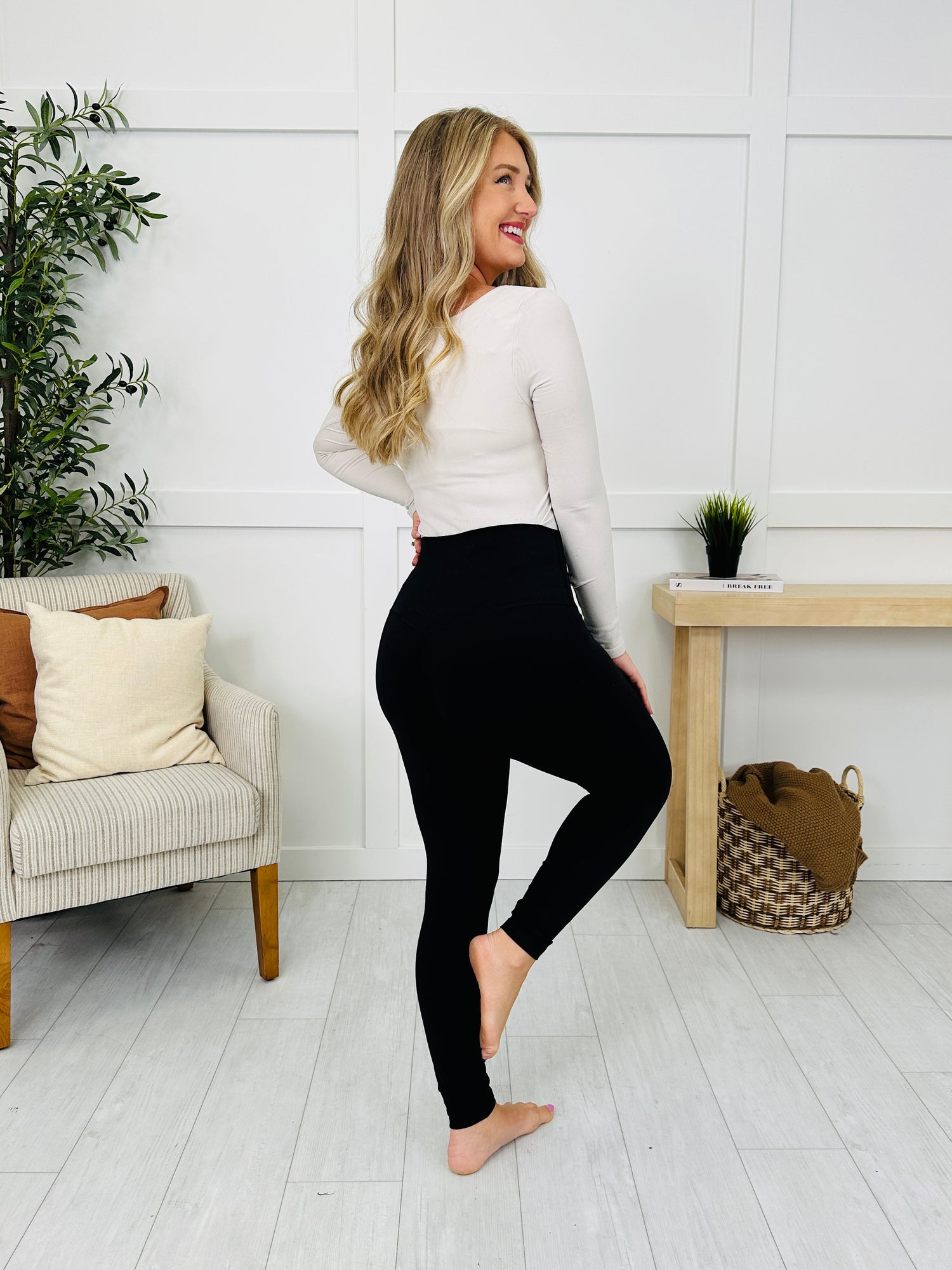 These high-waisted leggings sculpt and smooth your silhouette with a classic black finish that adds a bold color to any look. Crafted from flexible and stretchy fabric, they move with you comfortably whether you’re hitting the gym or running errands. Plus, the supportive wide waistband ensures all-day wearability without losing their shape.