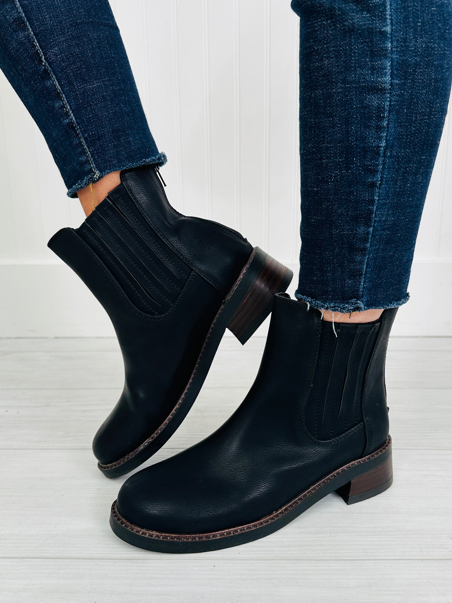 These boots bring timeless style to your wardrobe with their classic black finish, back zipper, and versatile design. The classic ankle height makes them perfect for pairing with jeans or dresses, while the stacked block heel adds just the right amount of lift. Finished with subtle stitched detailing, these boots are an effortless choice for everyday wear.