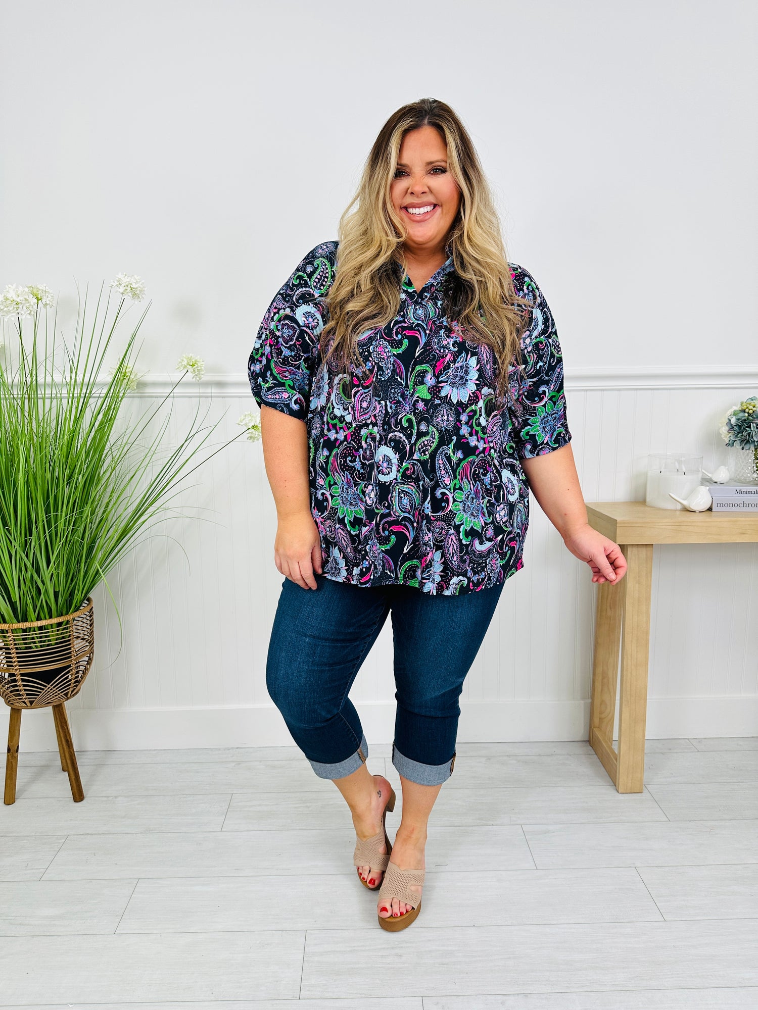 This new spring arrival will have you radiating sunshine everywhere you go. This best selling top is available in brand new spring prints that will bring a pop of bold into your spring wardrobe. This top is wrinkle free, which means it's perfect to pack in a suitcase or bag. It's easy to throw on and pair with all of your favorite bottoms-- shorts, jeans, white denim, and even leggings. Dress it up or down for multiple, versatile looks this season.