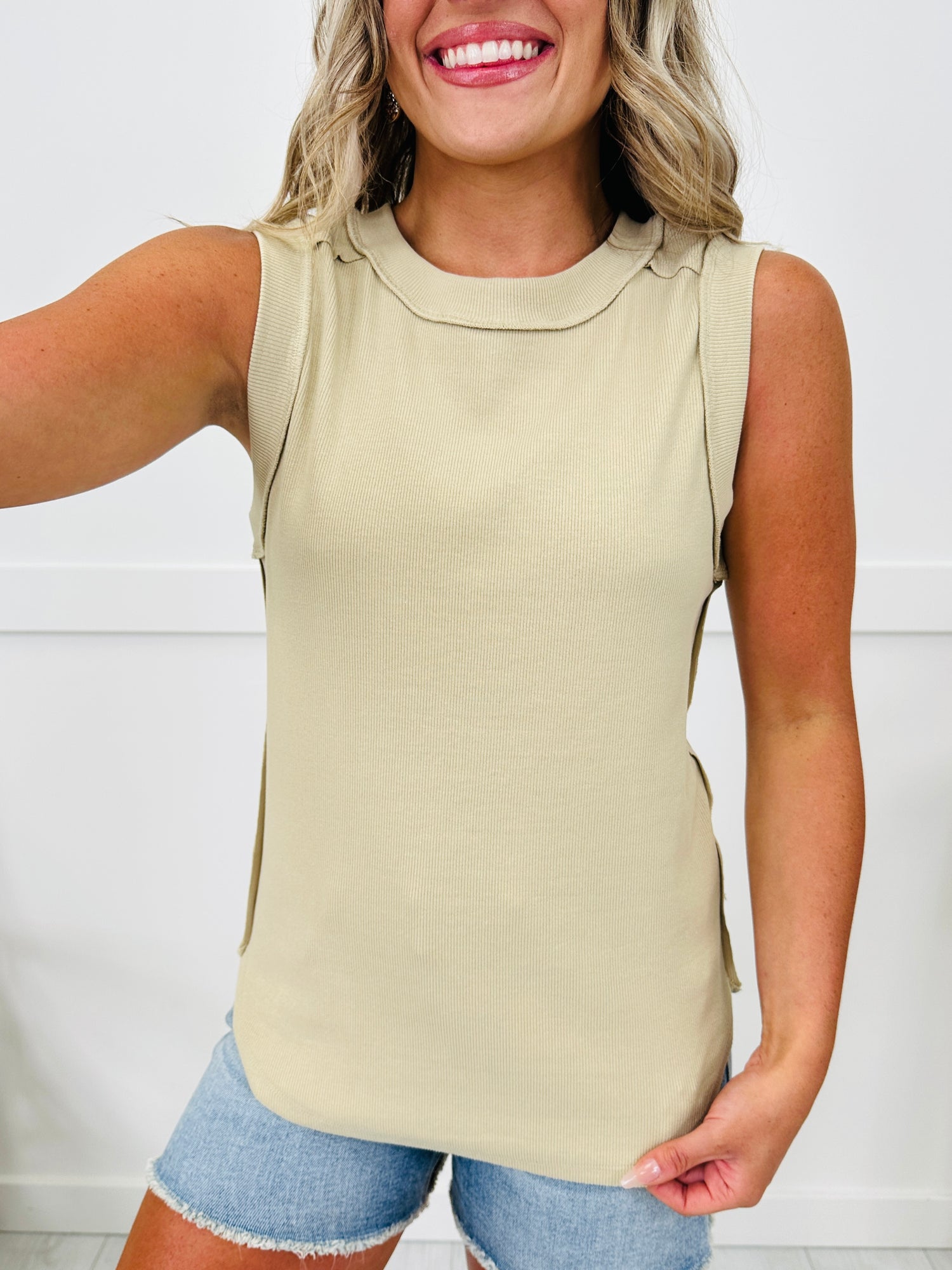 The material is super soft and stretchy. The tank top is slightly oversized and flattering on every single body type. We love the wide straps that are bra strap friendly! The reverse hem stitching gives this top a high end design. Grab the last restock of our best selling Basic Babe Tank Top while you still can!