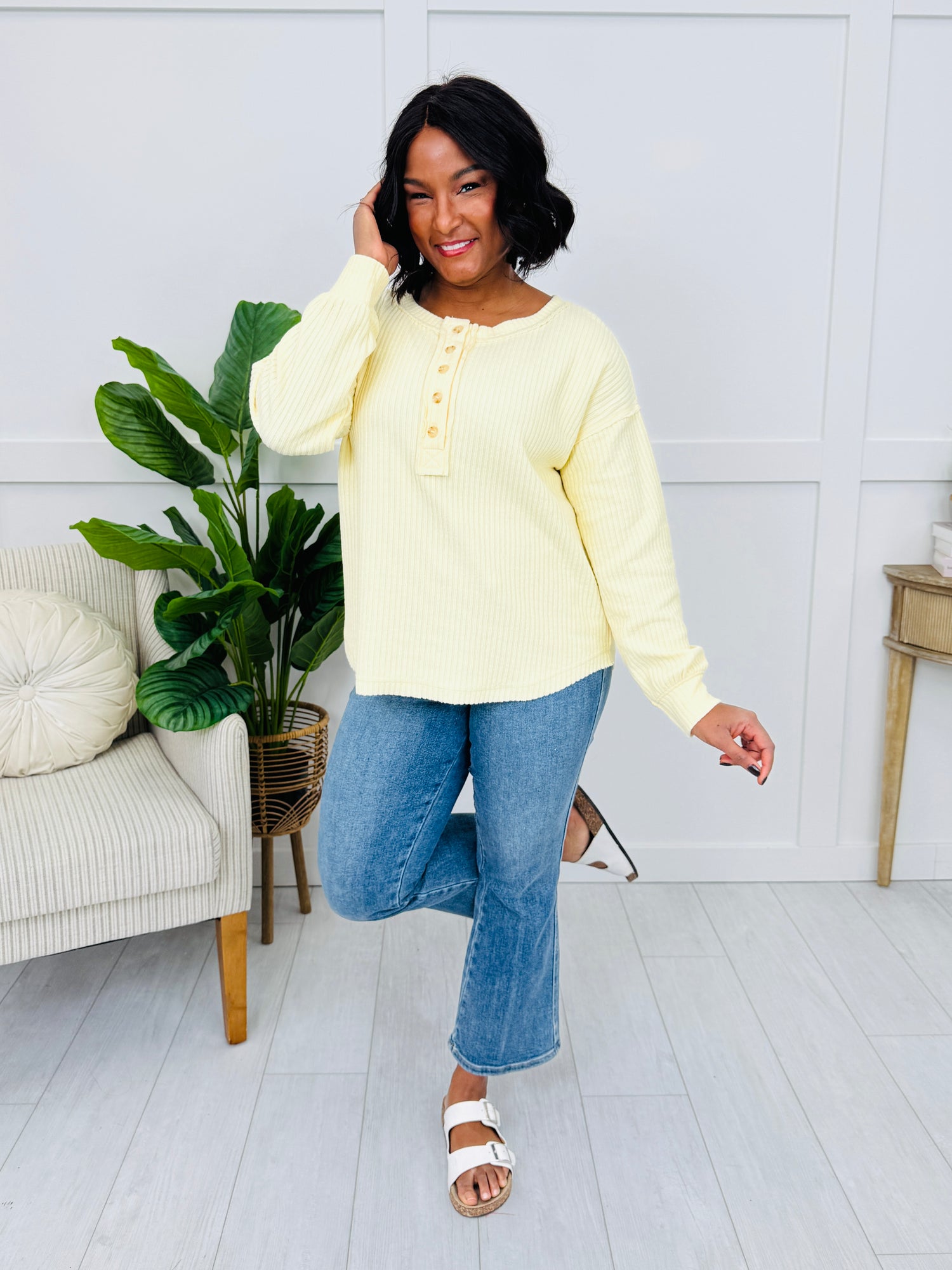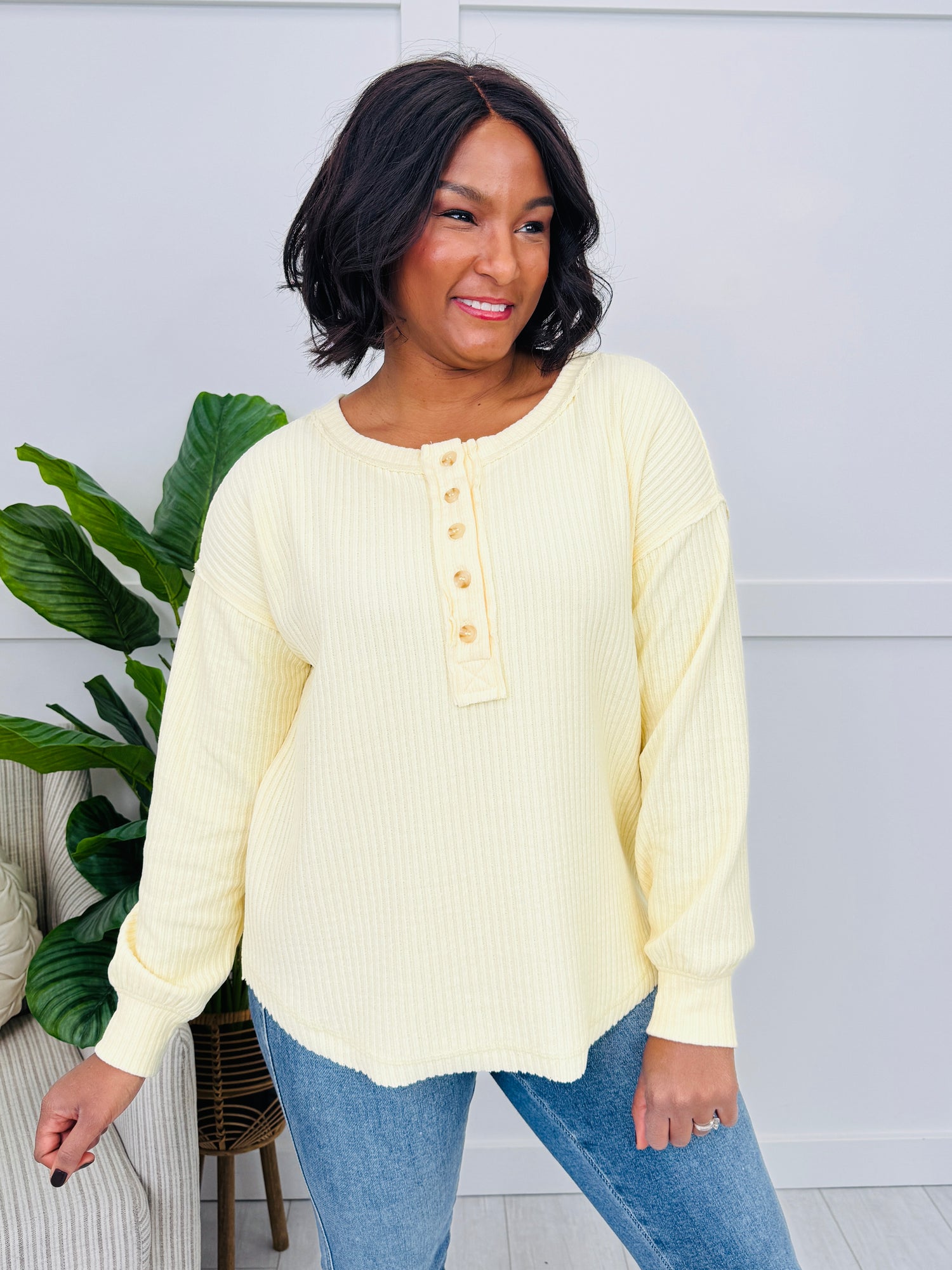 This top is one of those throw-on-and-feel-put-together favorites, thanks to its textured knit and classic henley button placket. The relaxed shape keeps it comfy for all-day wear, while the simple details make it easy to dress up or down with your go-to denim.