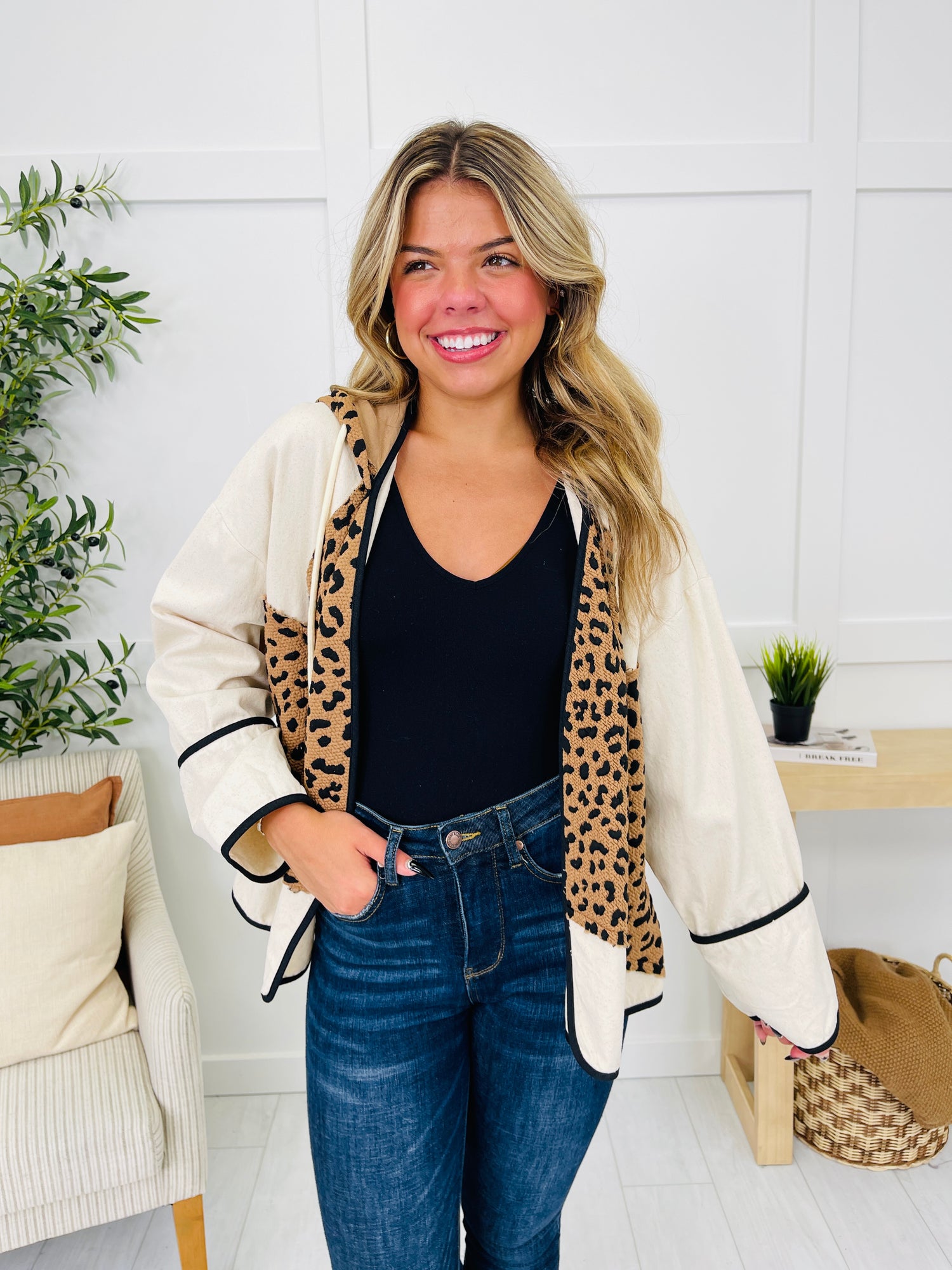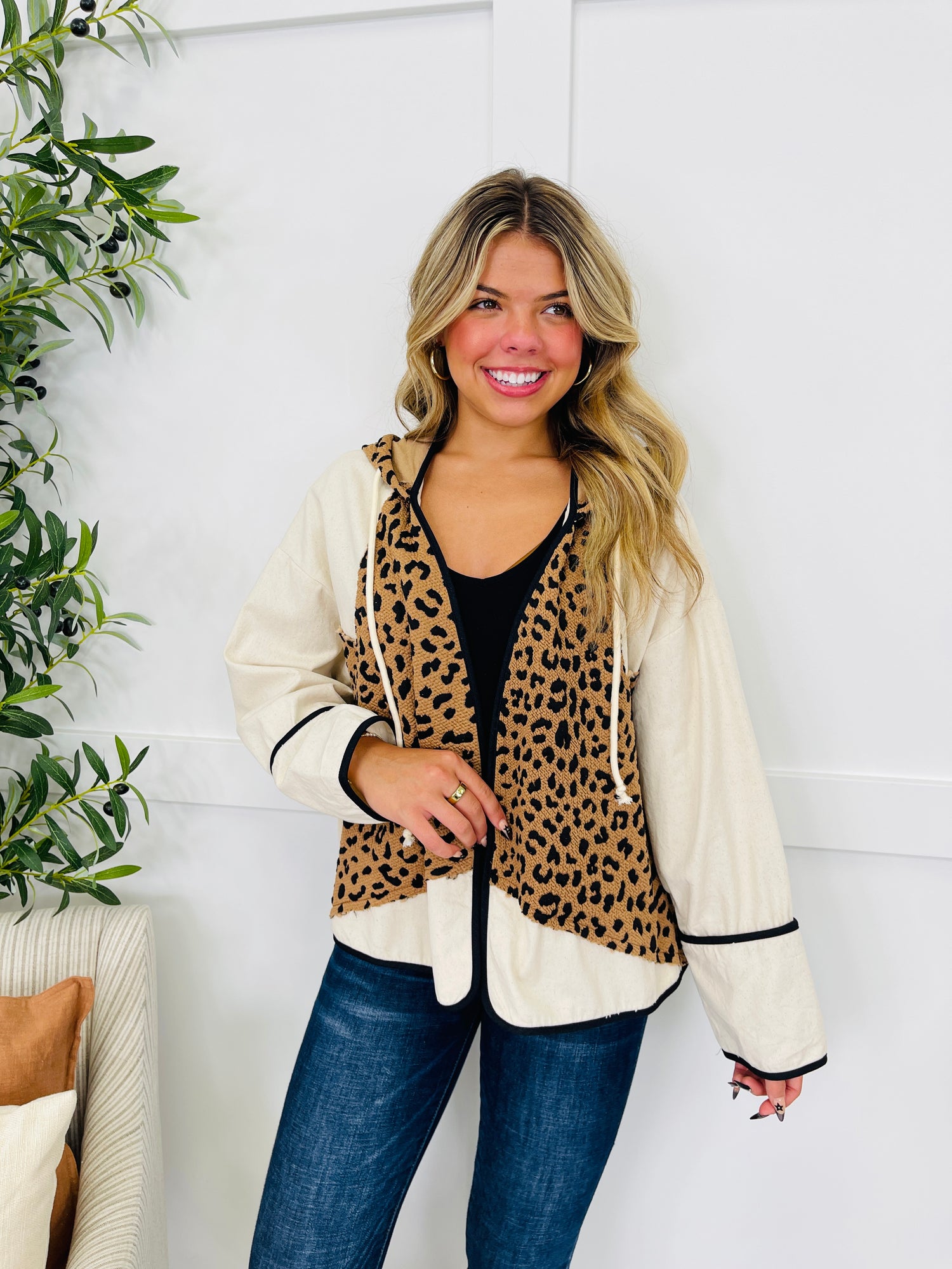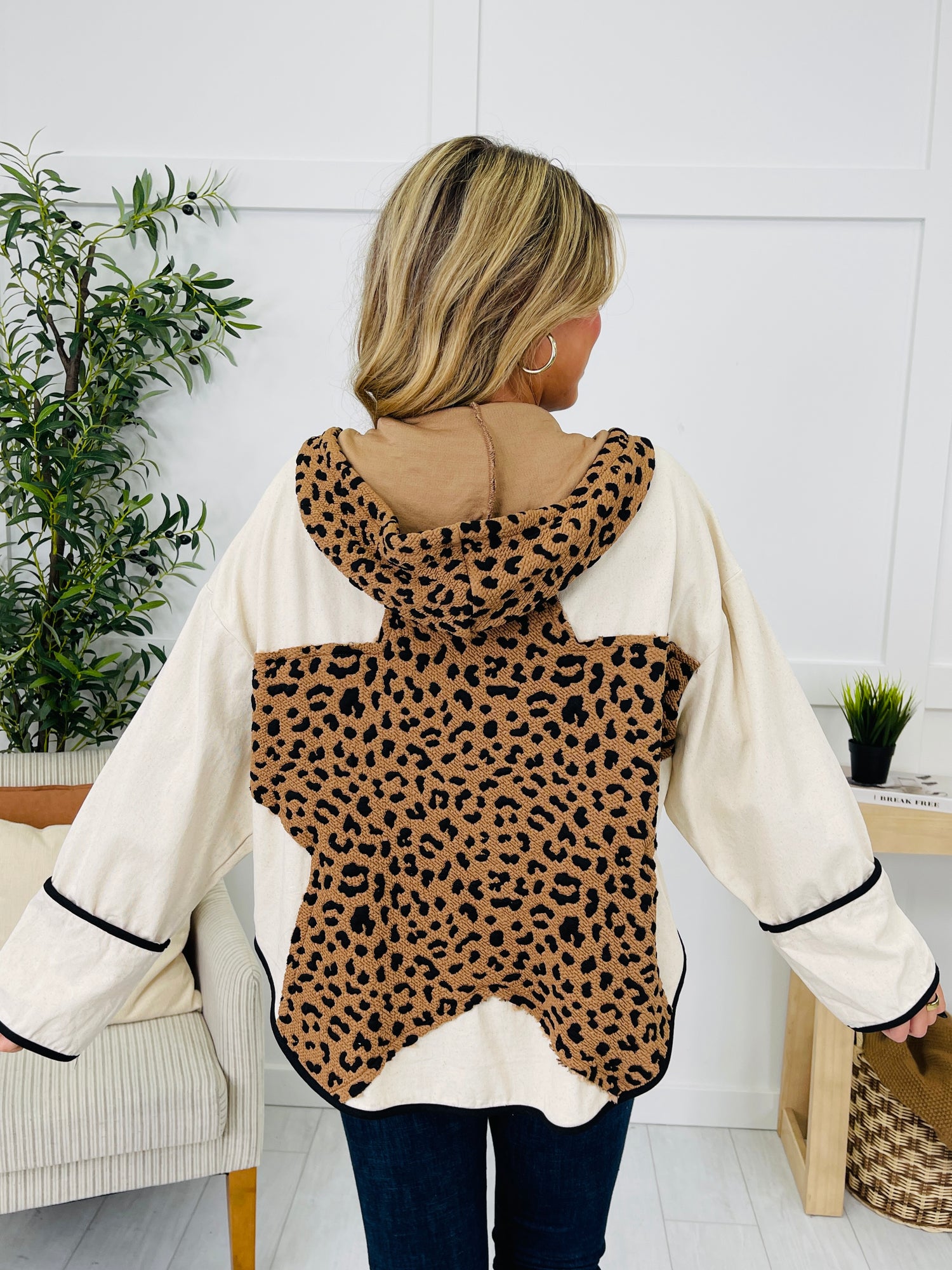 Make your layers pop with this open-front hoodie jacket. A bold star patch at the back pairs with coordinating animal-print panels on the front and inside the hood for a playful, pulled-together look. Finished with a drawstring hood, curved hem, and contrast black piping along the edges and sleeves, it’s an effortless throw-on over tees and denim.