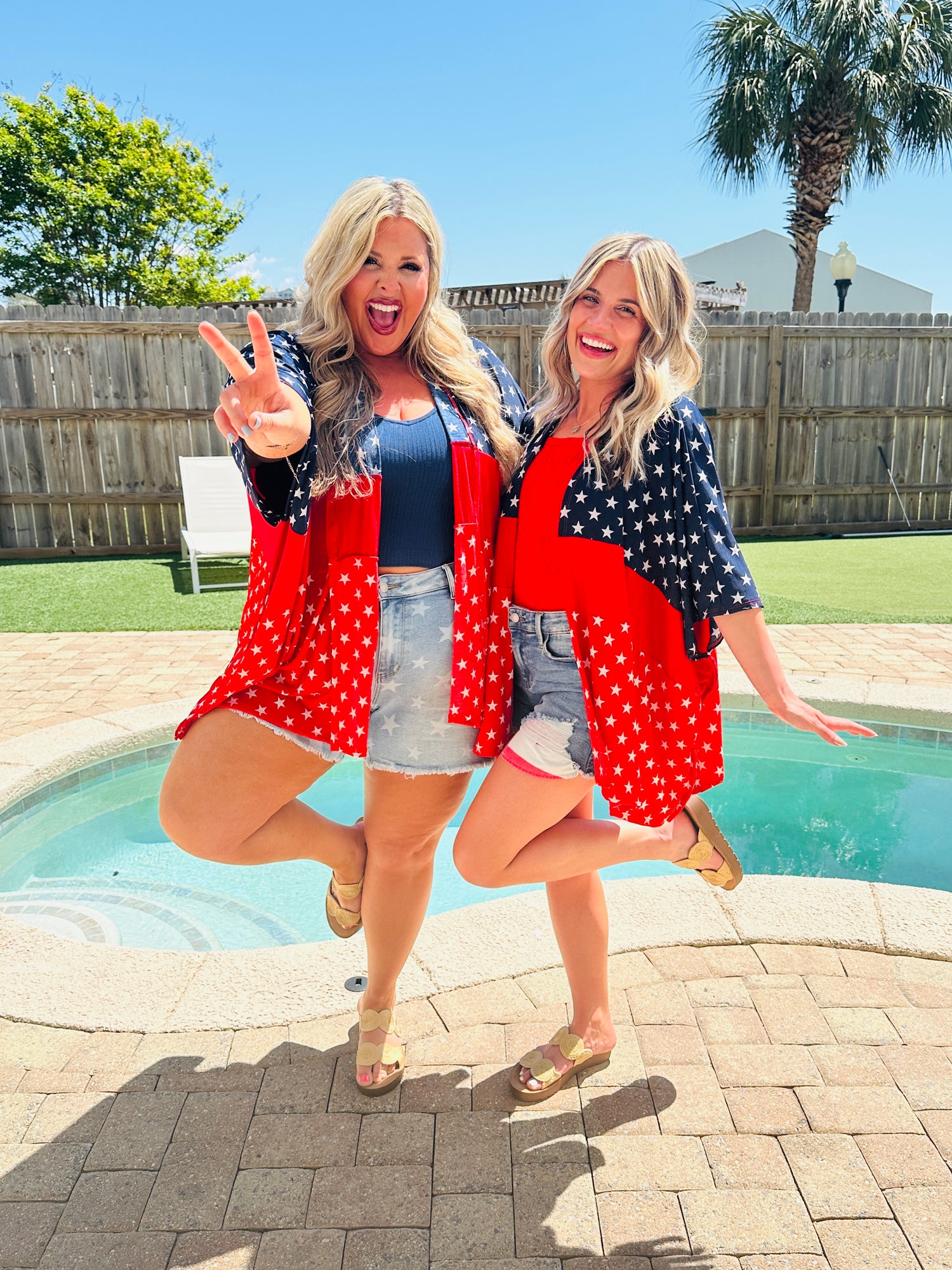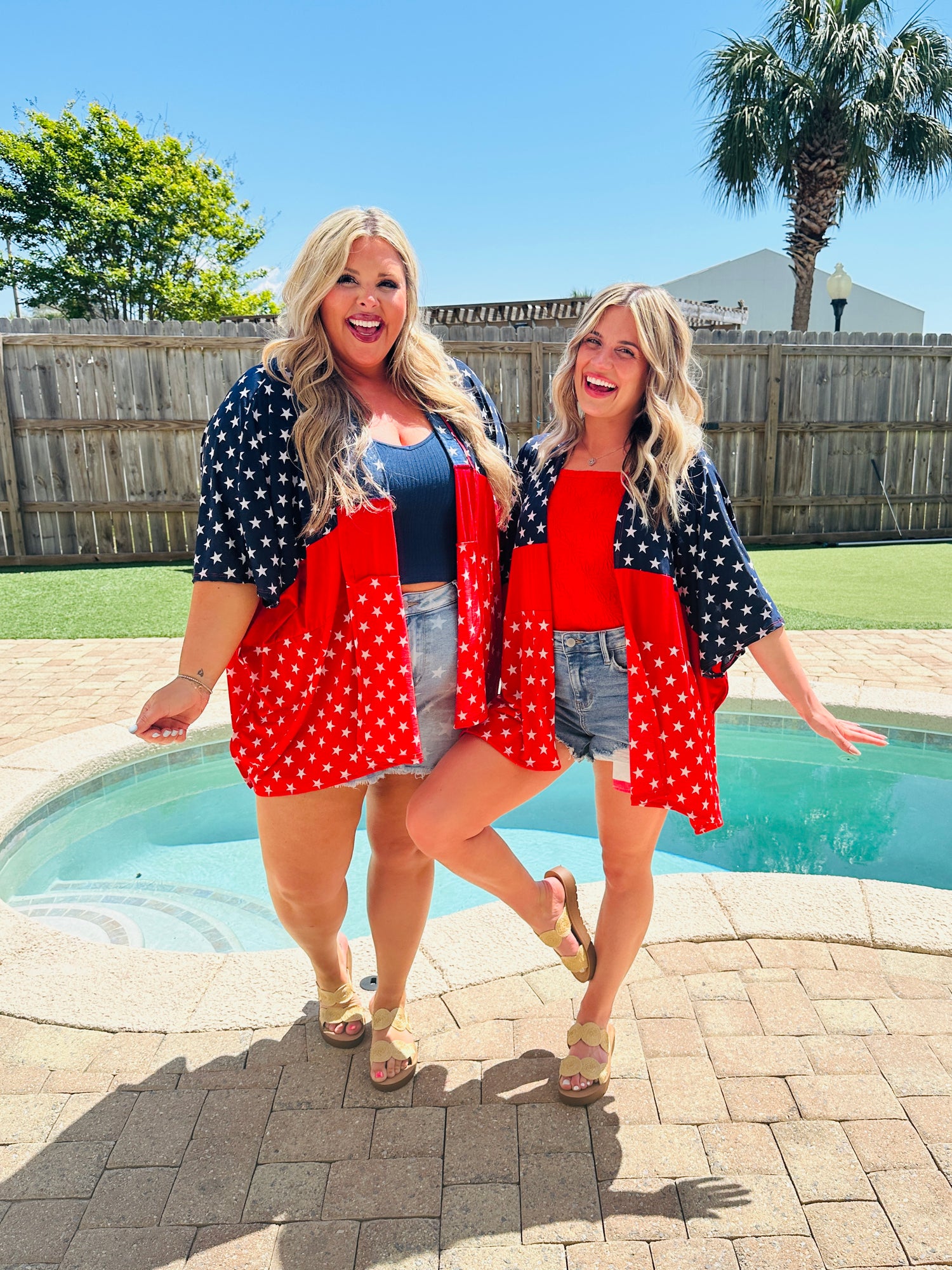 This cardigan is summer staple and at this price, you don't even have to think twice about grabbing it. You are going to wear this all summer long paired with your favorite red, white, and blue tops, shorts, jeans, and even as a bathing suit cover up! It is lightweight and the perfect layering piece for warmer weather. Wear this from sea to shining sea, all summer long!