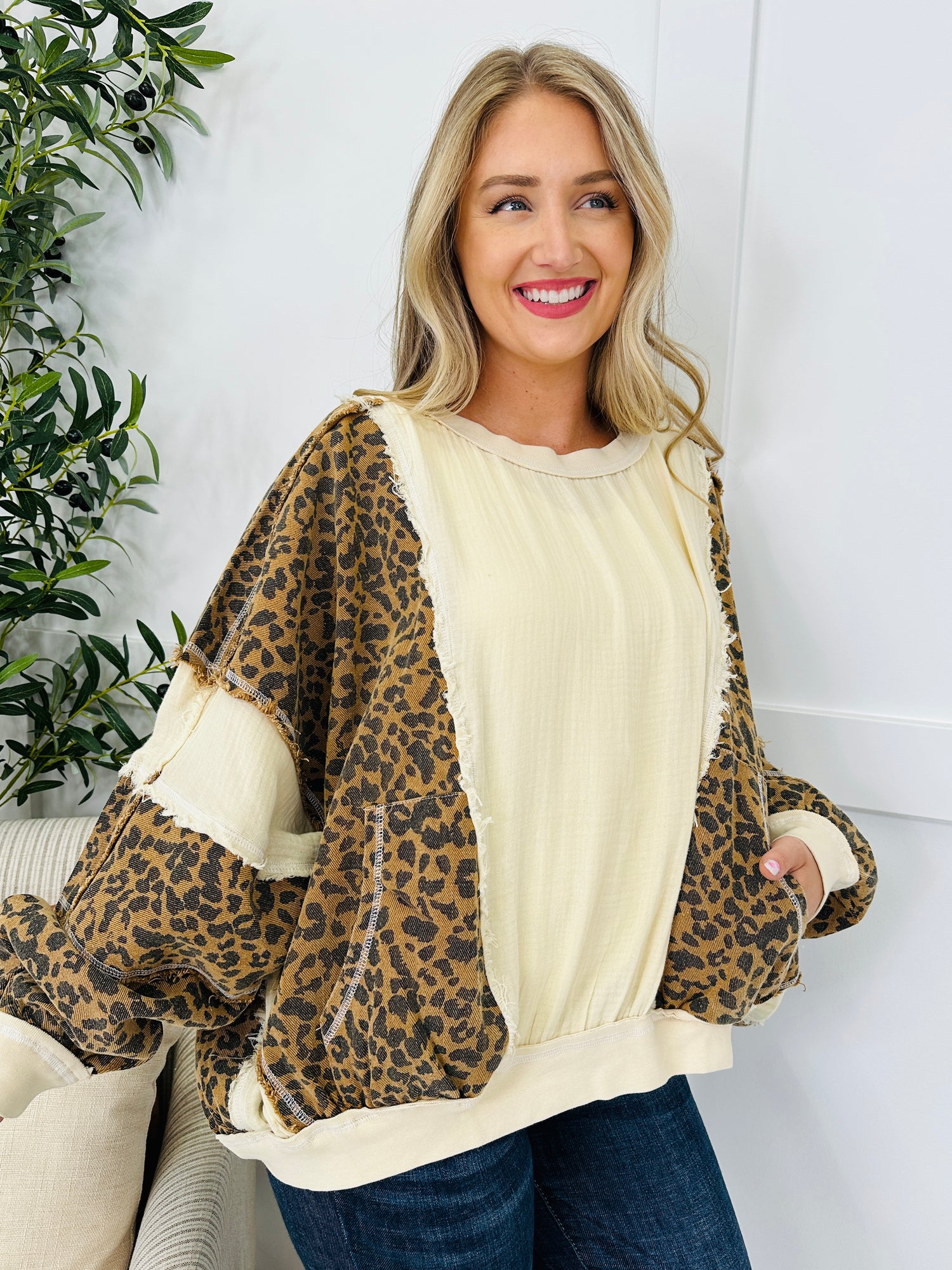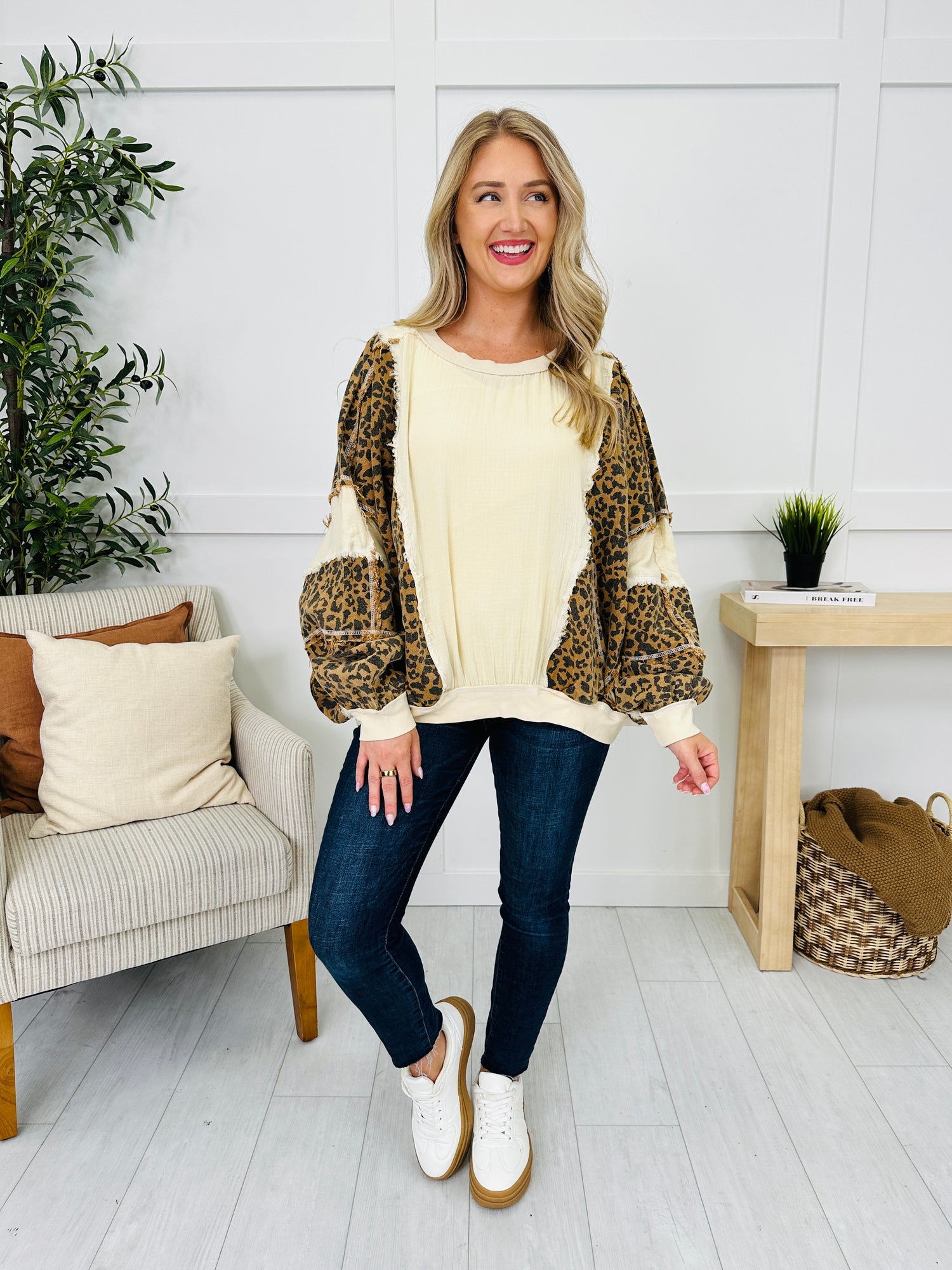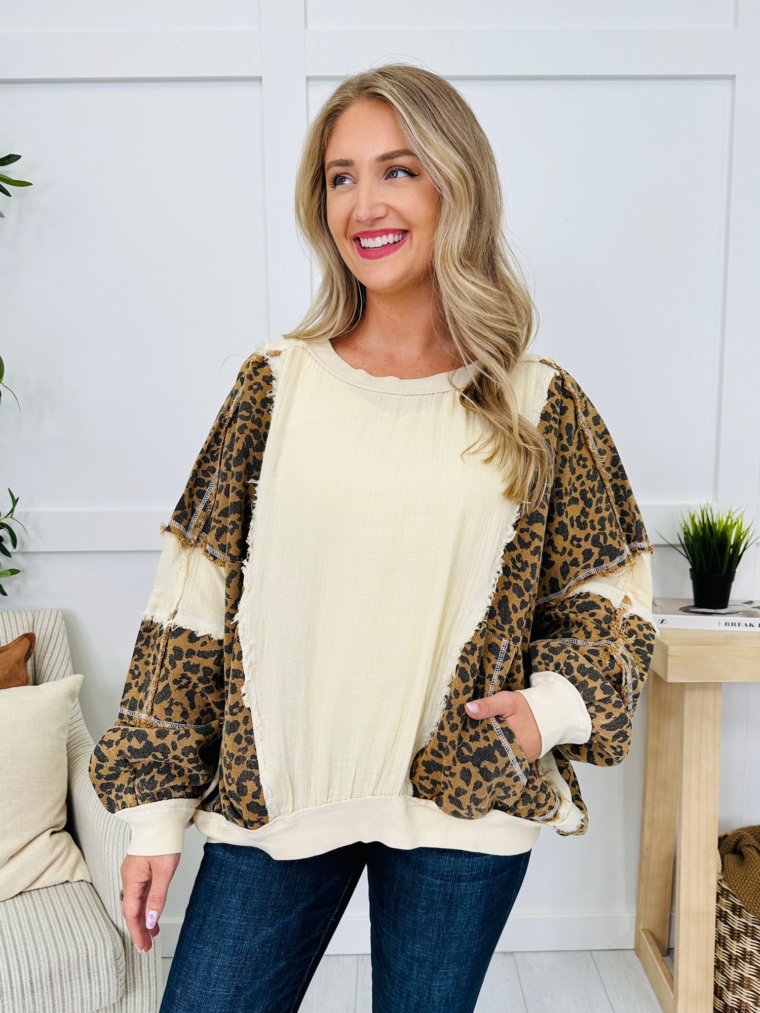 This fun pullover adds a pop of print to your everyday lineup. The relaxed silhouette features textured trim at the crew neckline and cuffs, while the banded hem creates a soft and trendy fit. Fun lantern sleeves finish the look with an easy, cozy vibe—perfect with denim and sneakers.