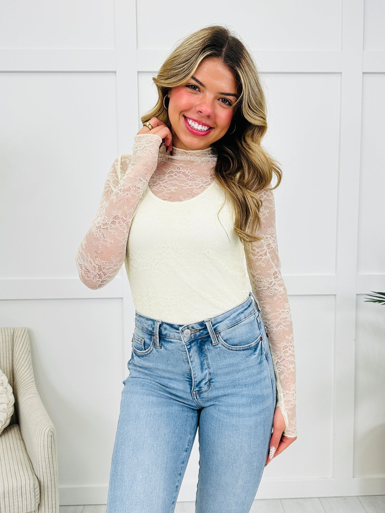 This dreamy lace overlay adds an elegant touch to any outfit, whether it's layered under a jacket or styled on its own. Featuring a sheer floral design with long sleeves and a high neckline, it brings that perfect mix of flirty and chic. Dress it up or keep it casual—it’s the piece that instantly elevates your look!
