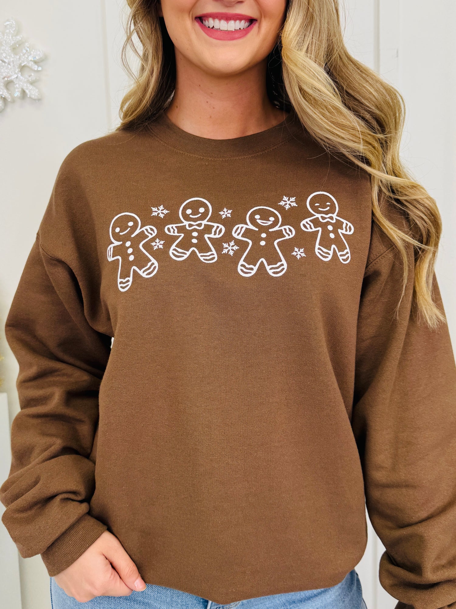 Sweeten up your holiday style with the Snowy Gingerbread Crewneck — the perfect mix of cozy comfort and festive fun! Featuring a playful lineup of snowy gingerbread friends across the front, this adorable design brings a nostalgic touch of Christmas cheer to your winter wardrobe.