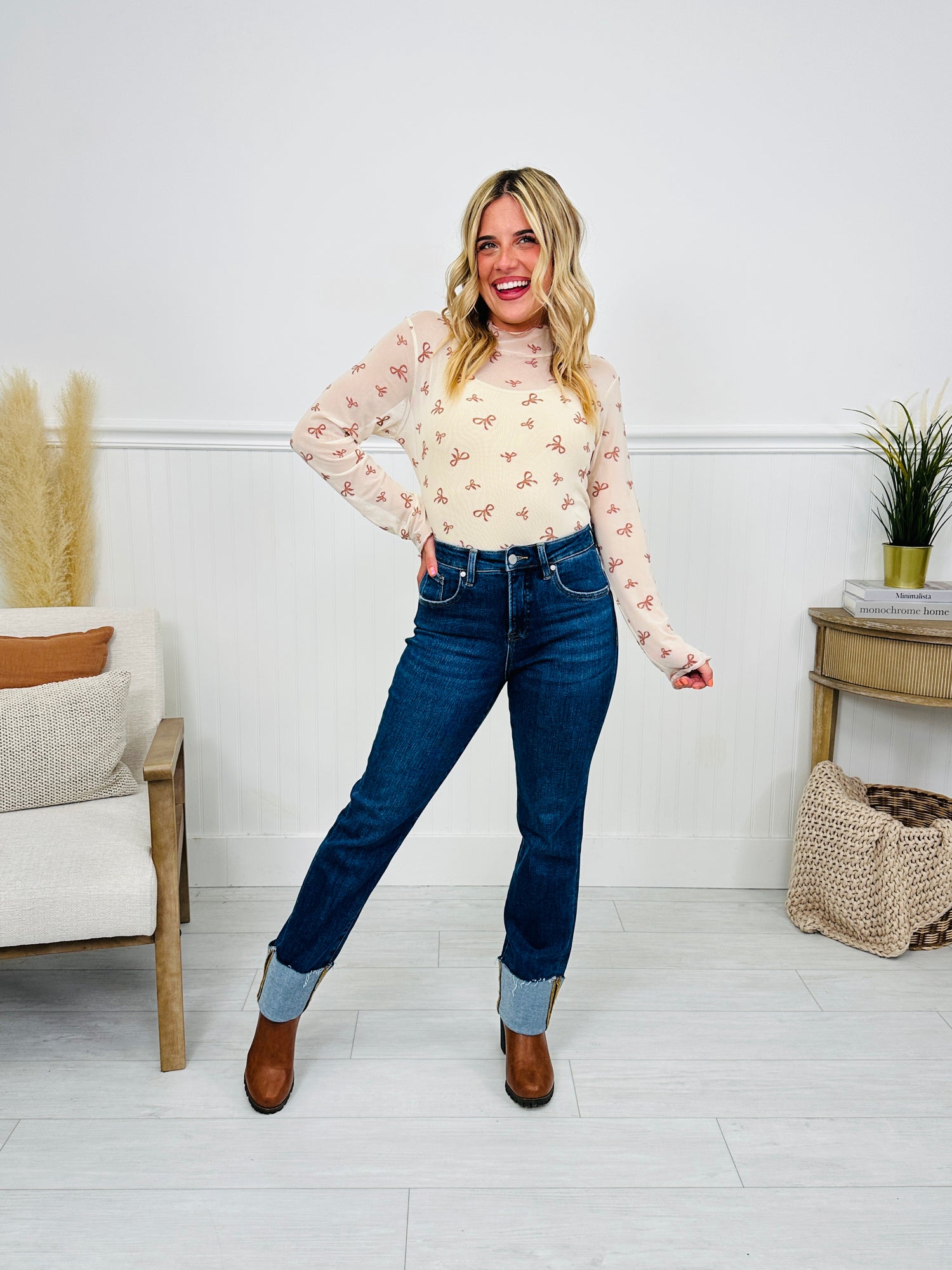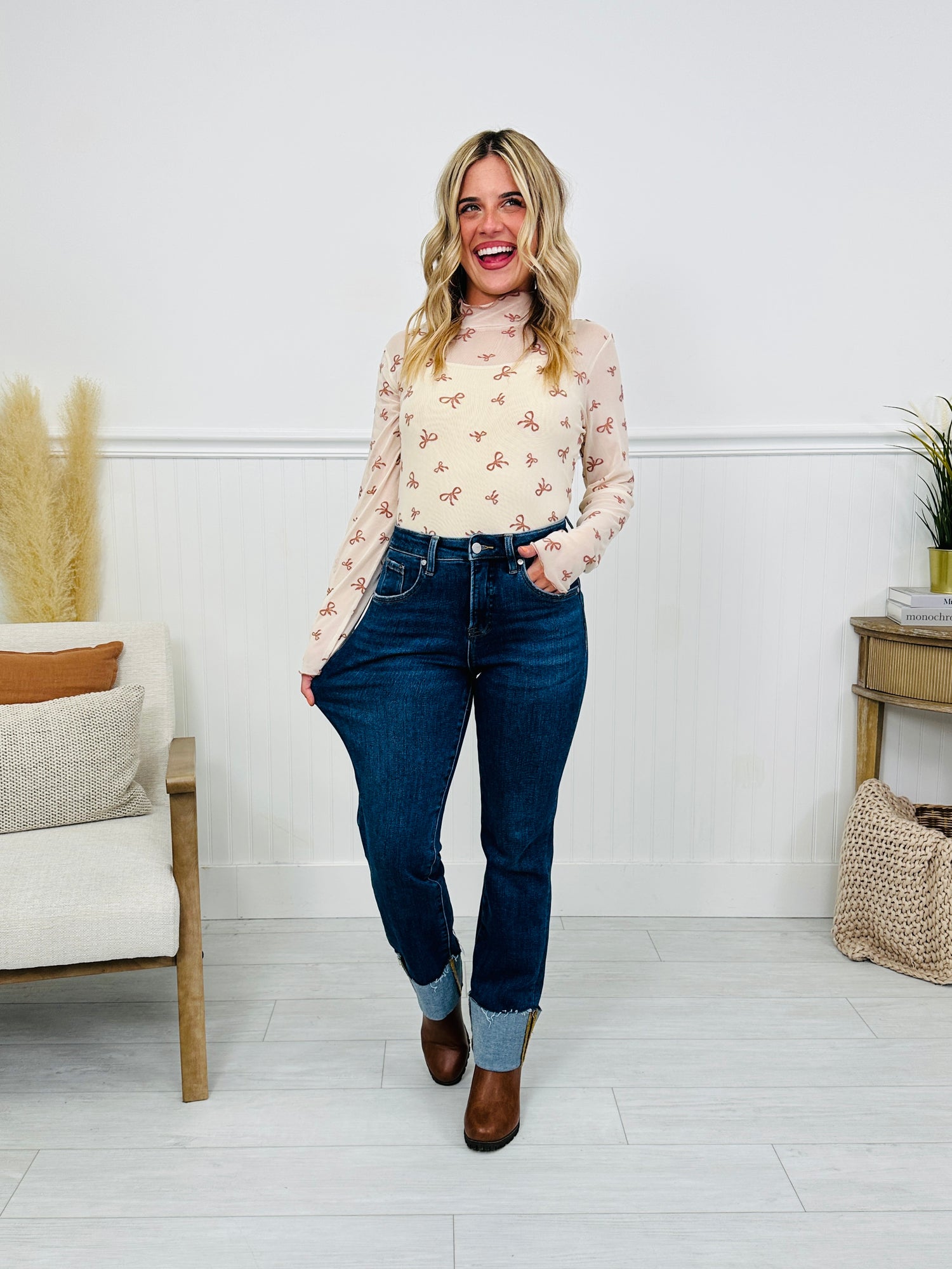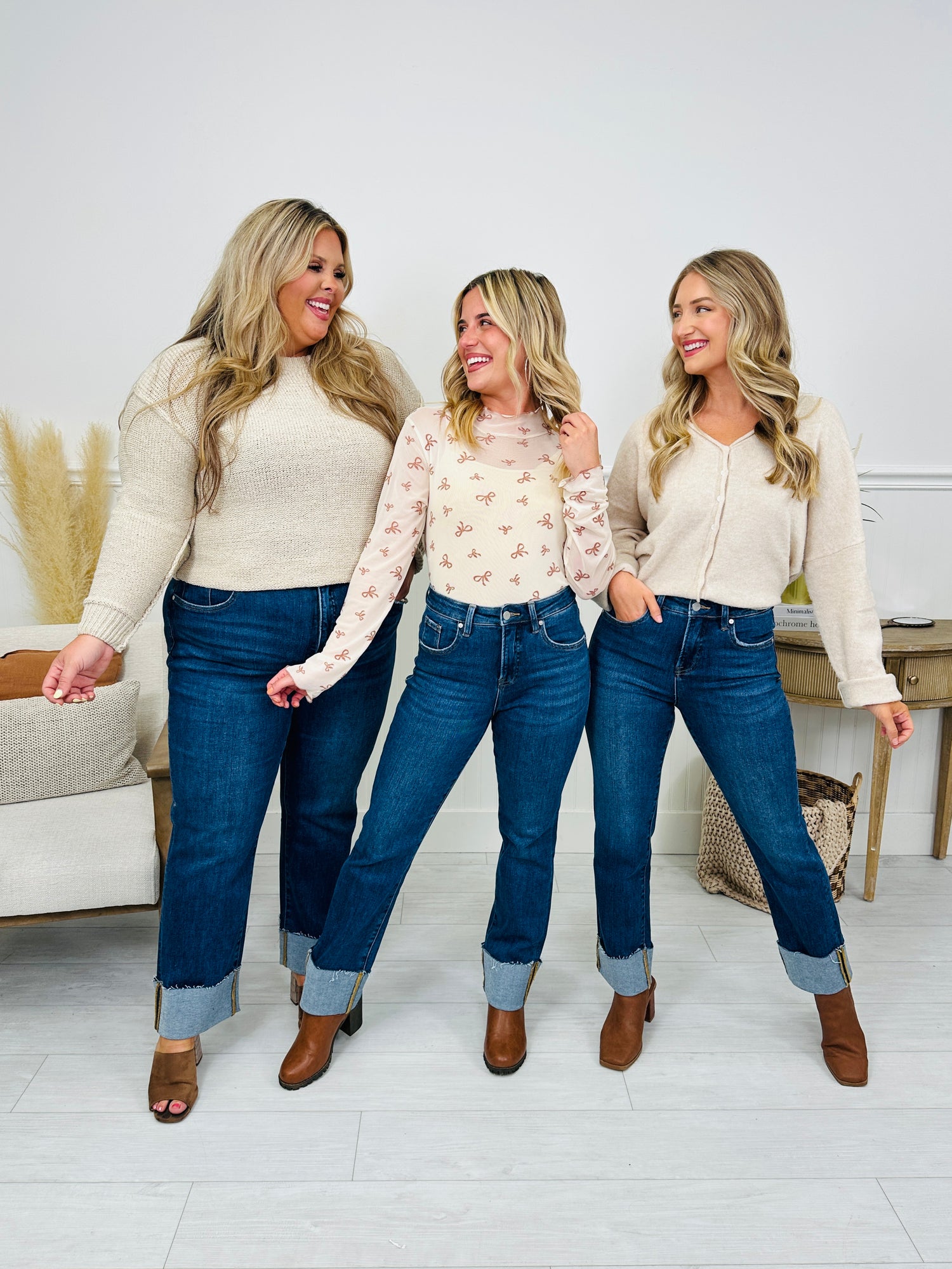 Cuffed jeans are trending everywhere right now and we promise these will be the most comfortable pair of cuffed jeans you have ever put on your body. Featuring 2% spandex, these buttery soft jeans will move and stretch with you. They hold their shape and do not sag as the day goes on. The mom style jean is a best selling style that offers a relaxed, yet feminine look.