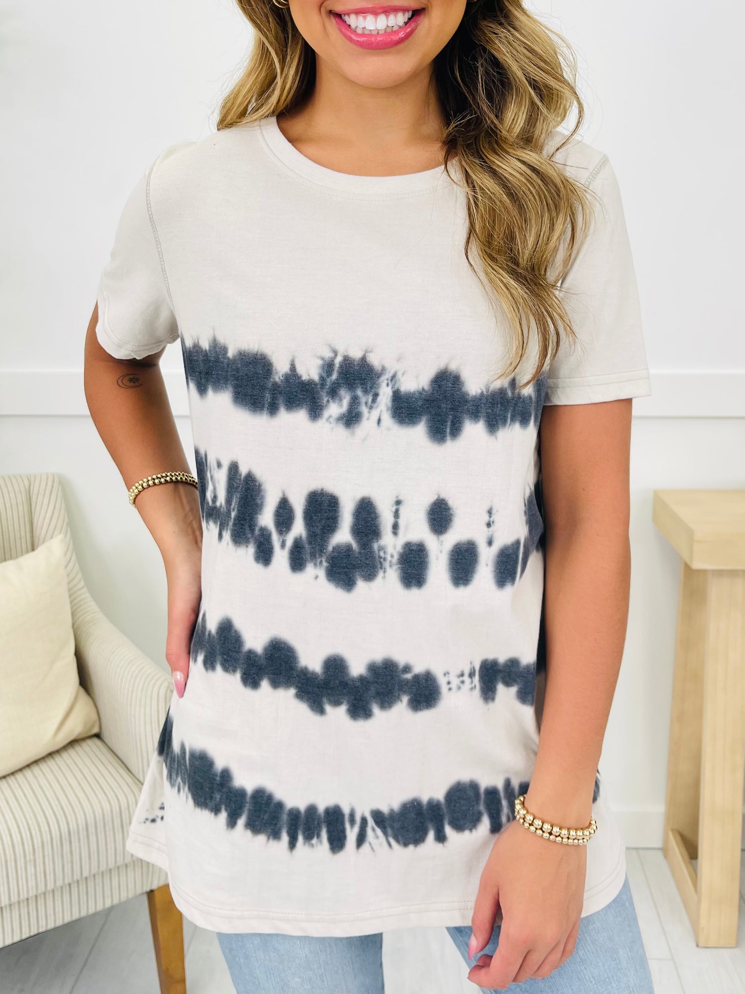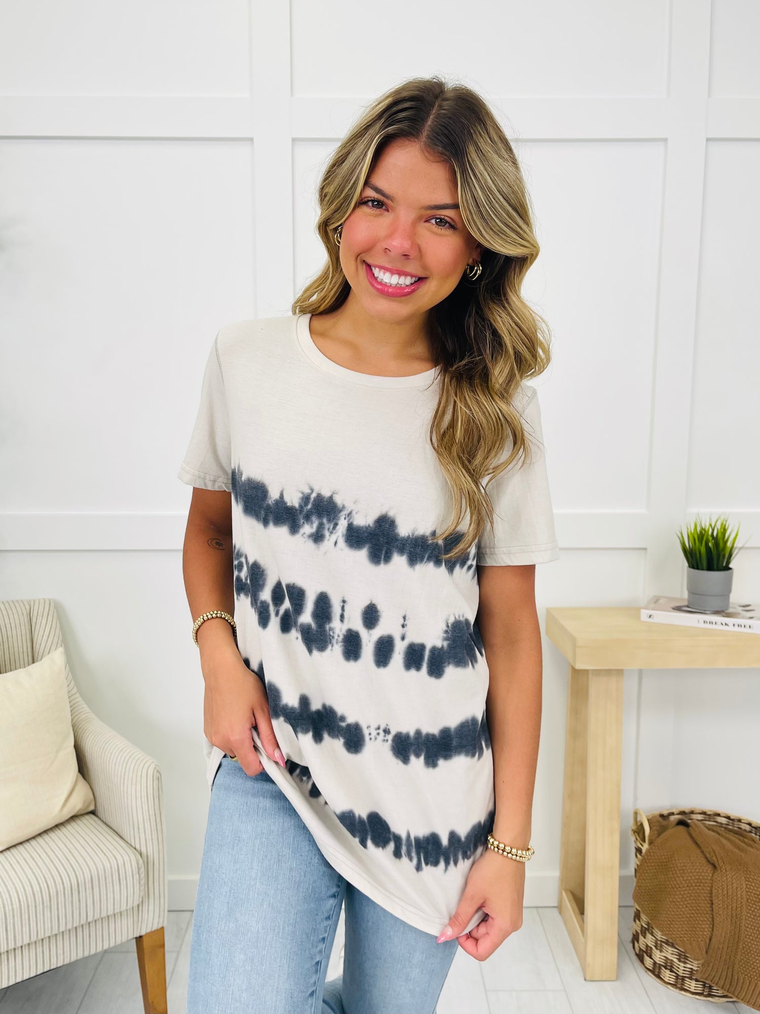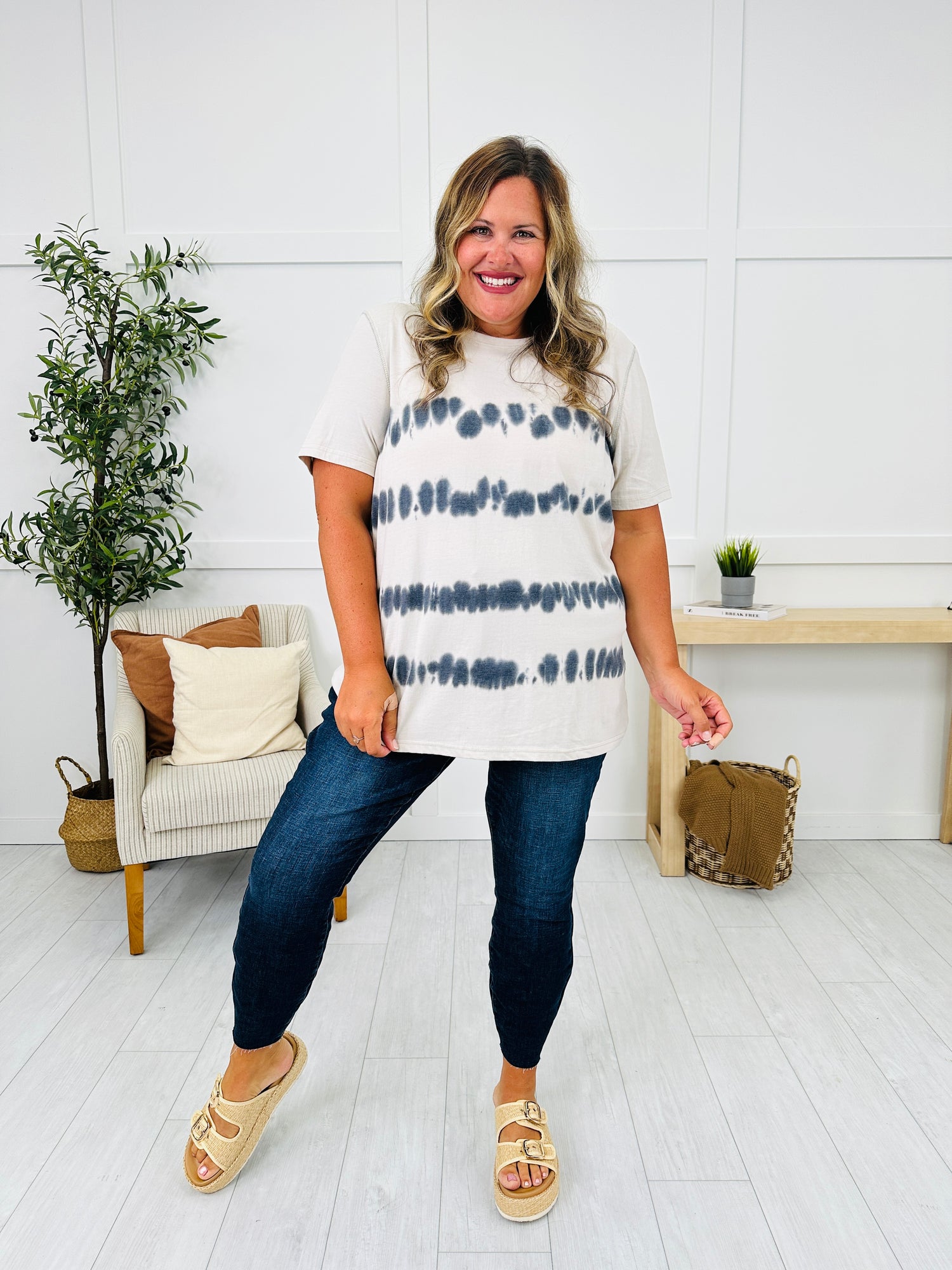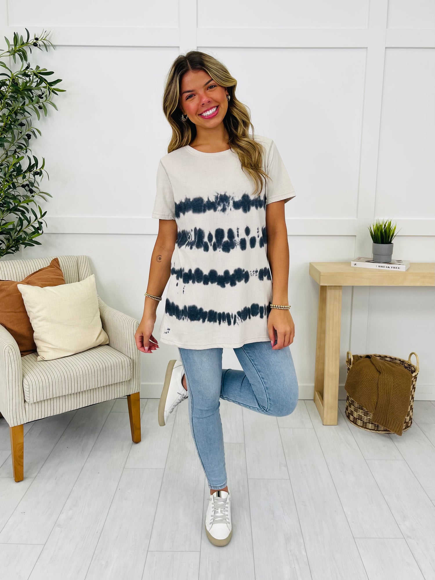 This striped tie-dye top adds a fun twist to a classic tee, giving it a laid-back yet trendy vibe. Its soft, relaxed fit makes it perfect for all-day wear, while the easy everyday style pairs effortlessly with your favorite jeans or shorts. A must-have piece for casual days when comfort and style go hand in hand!