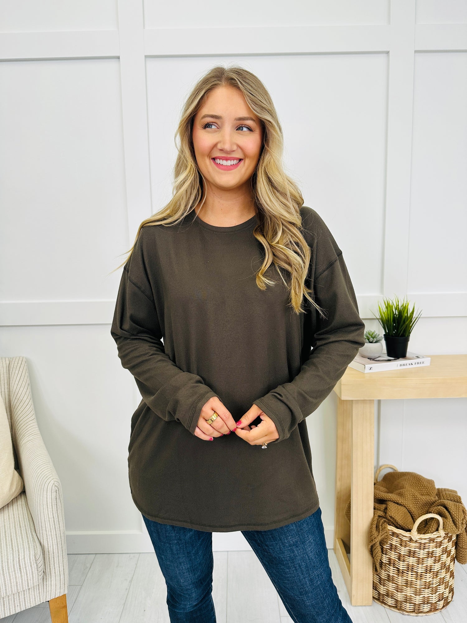 This long-sleeve top offers a relaxed fit with a trendy drop shoulder design, adding an effortlessly chic touch to your wardrobe. Its versatile styling makes it perfect for layering or wearing solo, and the soft, comfortable fabric ensures all-day ease. Whether you're dressing it up or keeping it casual, this piece will quickly become a go-to in your collection.