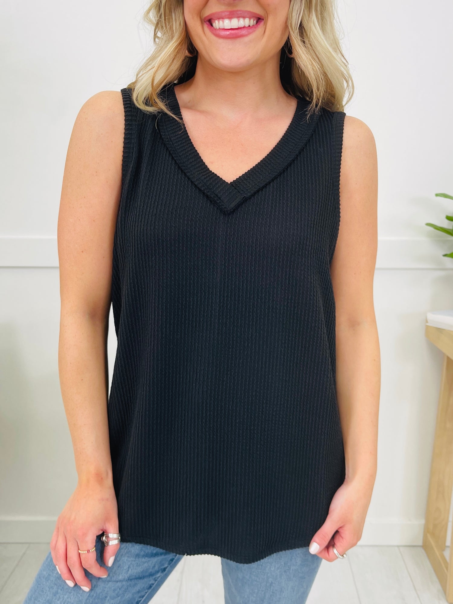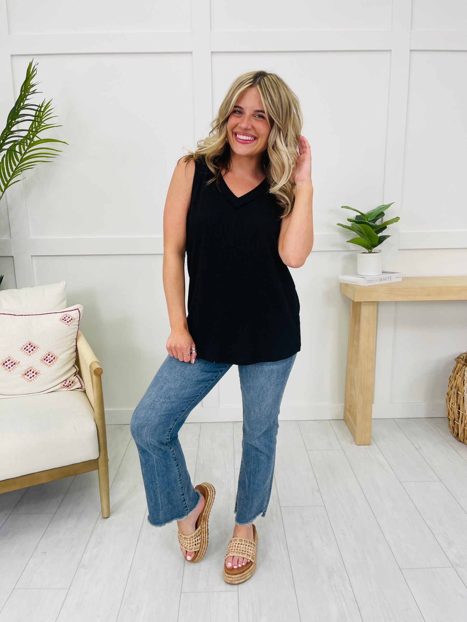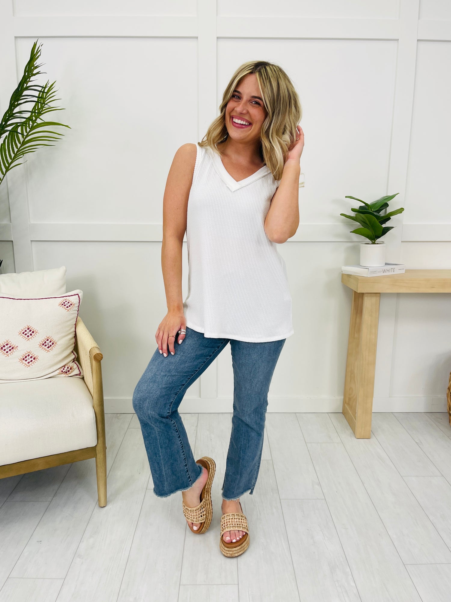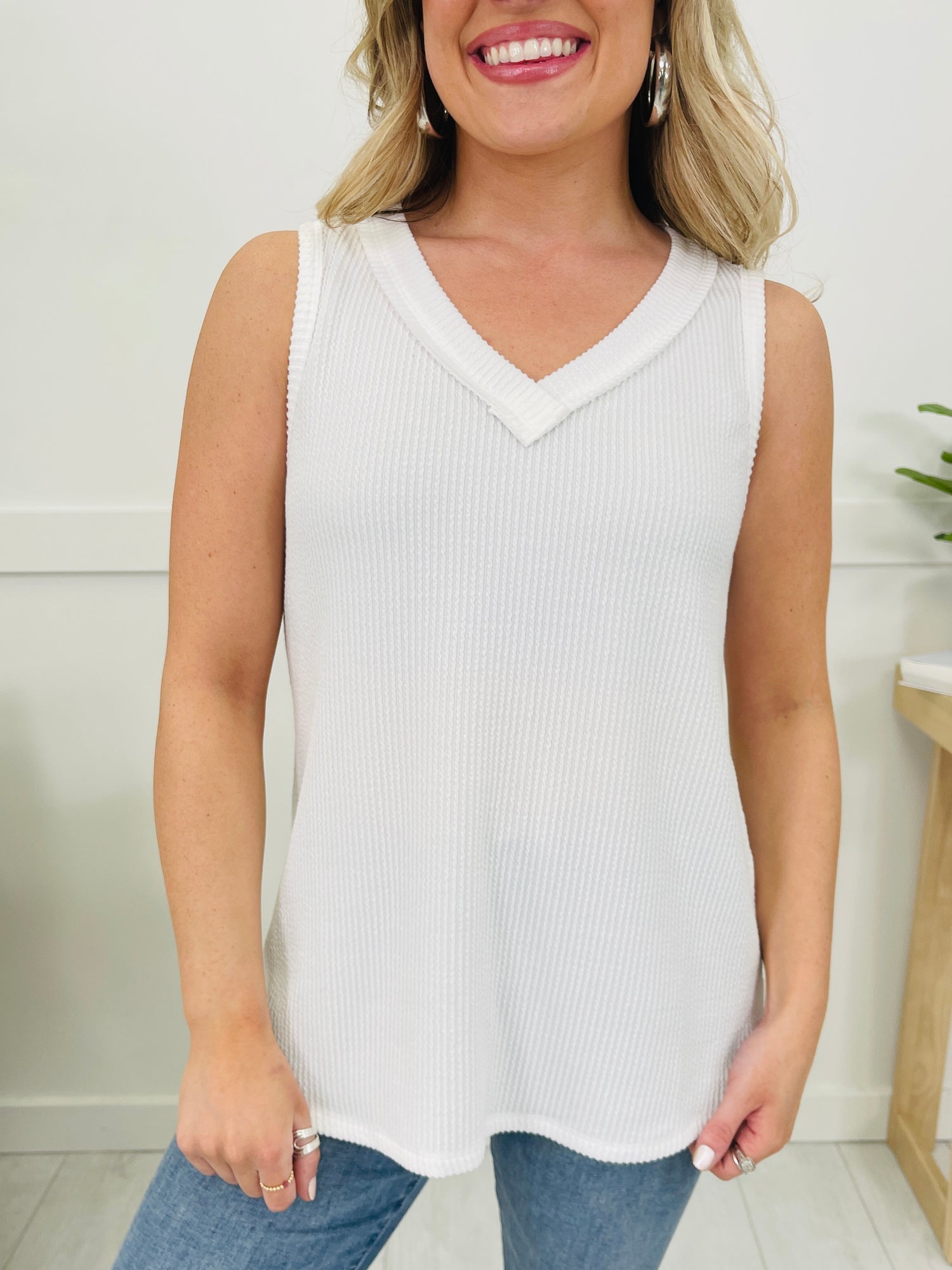 We can't wait to be in our summer era this year and this tank top will be worn on repeat all summer long! Our customers rave about this best selling fabric! It is brushed soft, stretchy, and so comfortable! This tank top is flowy and flattering on every single body type and we love the v-neck line for warmer weather. Pair this with shorts or jeans and dress it up or down for multiple versatile looks. We love the bright and bold colors and at this price point, you can get as many colors as your heart desires!