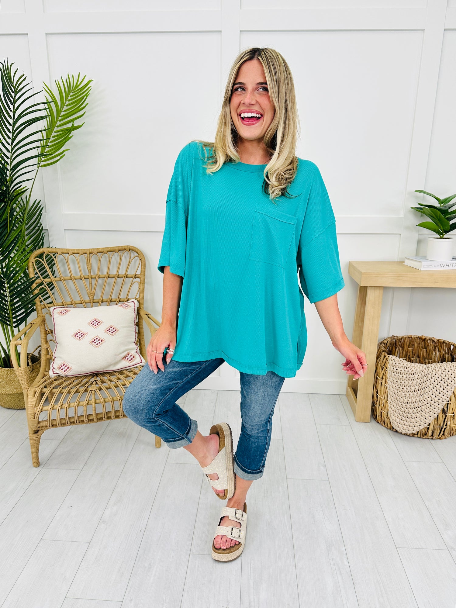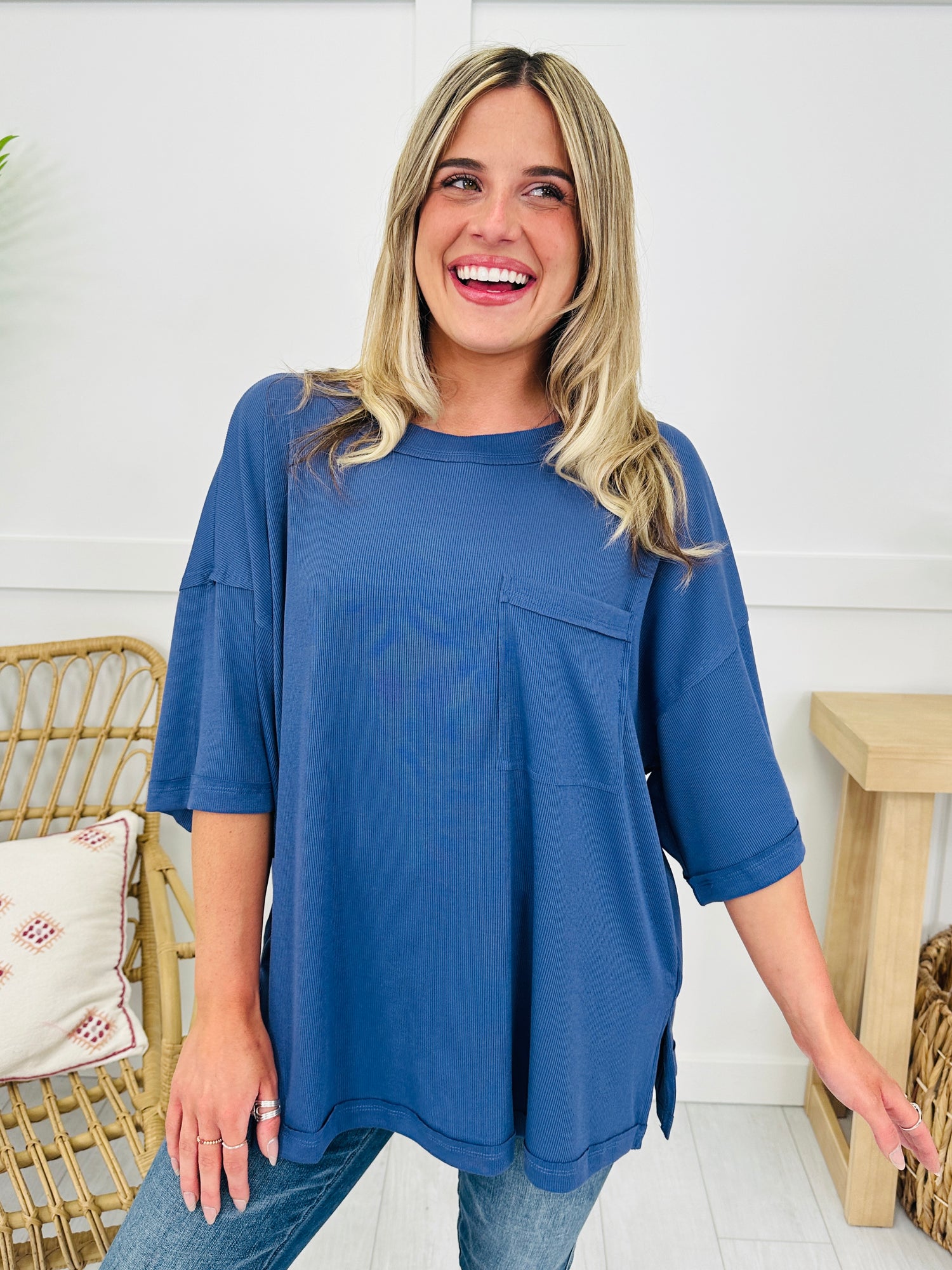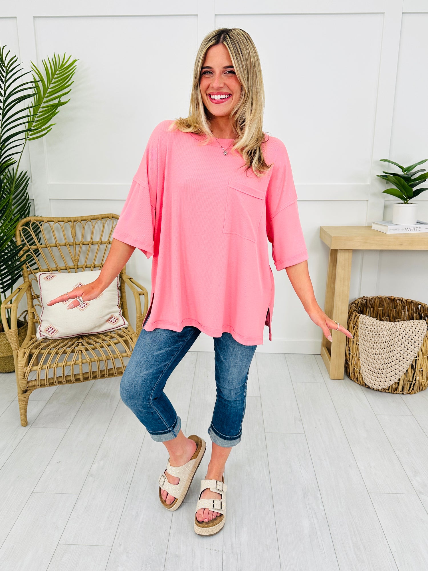 We love everything about this new top. It's perfect for summer and it is going to be a staple in your summer wardrobe. This material is brushed soft and so stretchy. We love the relaxed pocket detail on this top. This relaxed fit top is oversized and flattering on every single body type and features a slit on the side to make it extra flowy! We love every single color of this top and at this price, get as many of these beautiful colors as your heart desires!