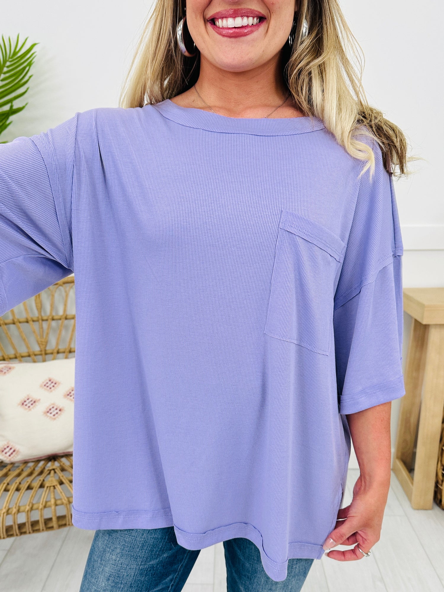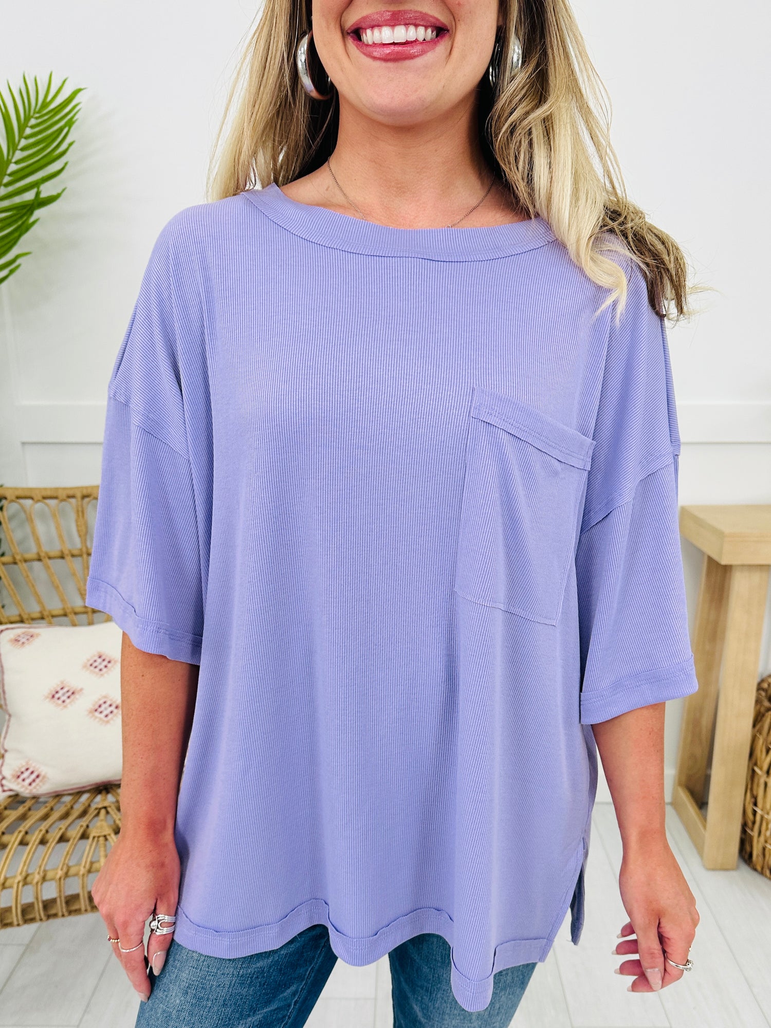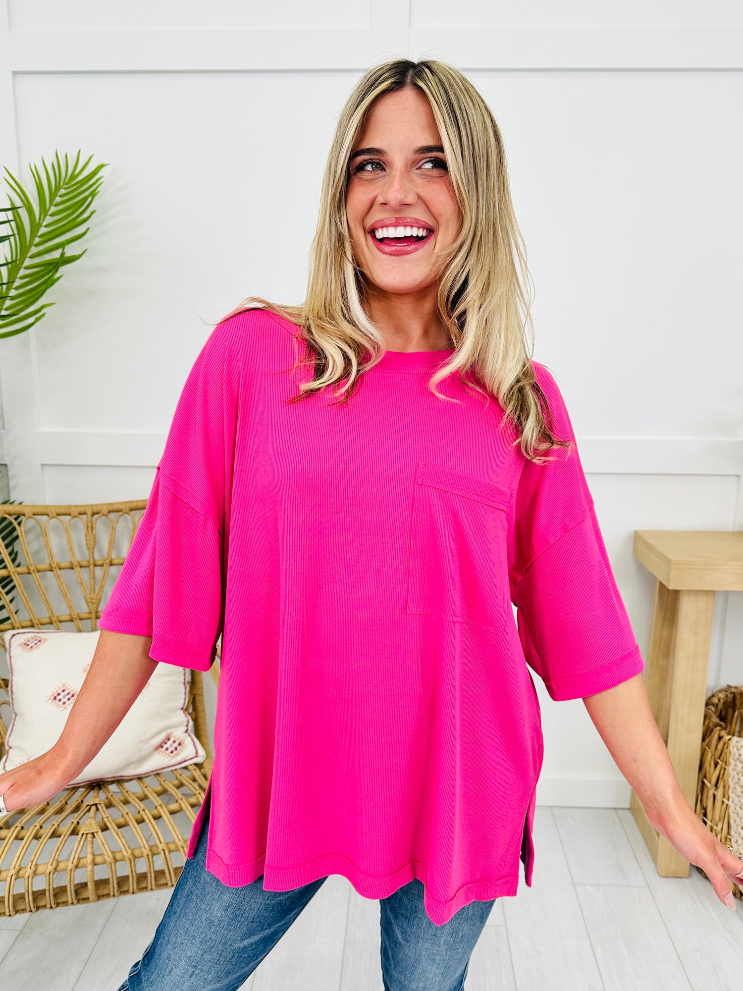 We love everything about this new top. It's perfect for summer and it is going to be a staple in your summer wardrobe. This material is brushed soft and so stretchy. We love the relaxed pocket detail on this top. This relaxed fit top is oversized and flattering on every single body type and features a slit on the side to make it extra flowy! We love every single color of this top and at this price, get as many of these beautiful colors as your heart desires!