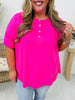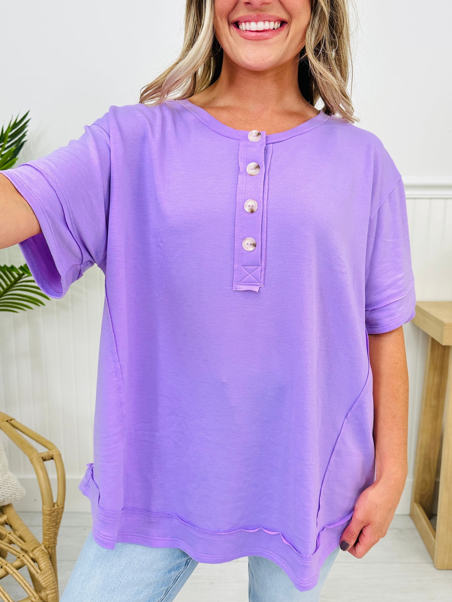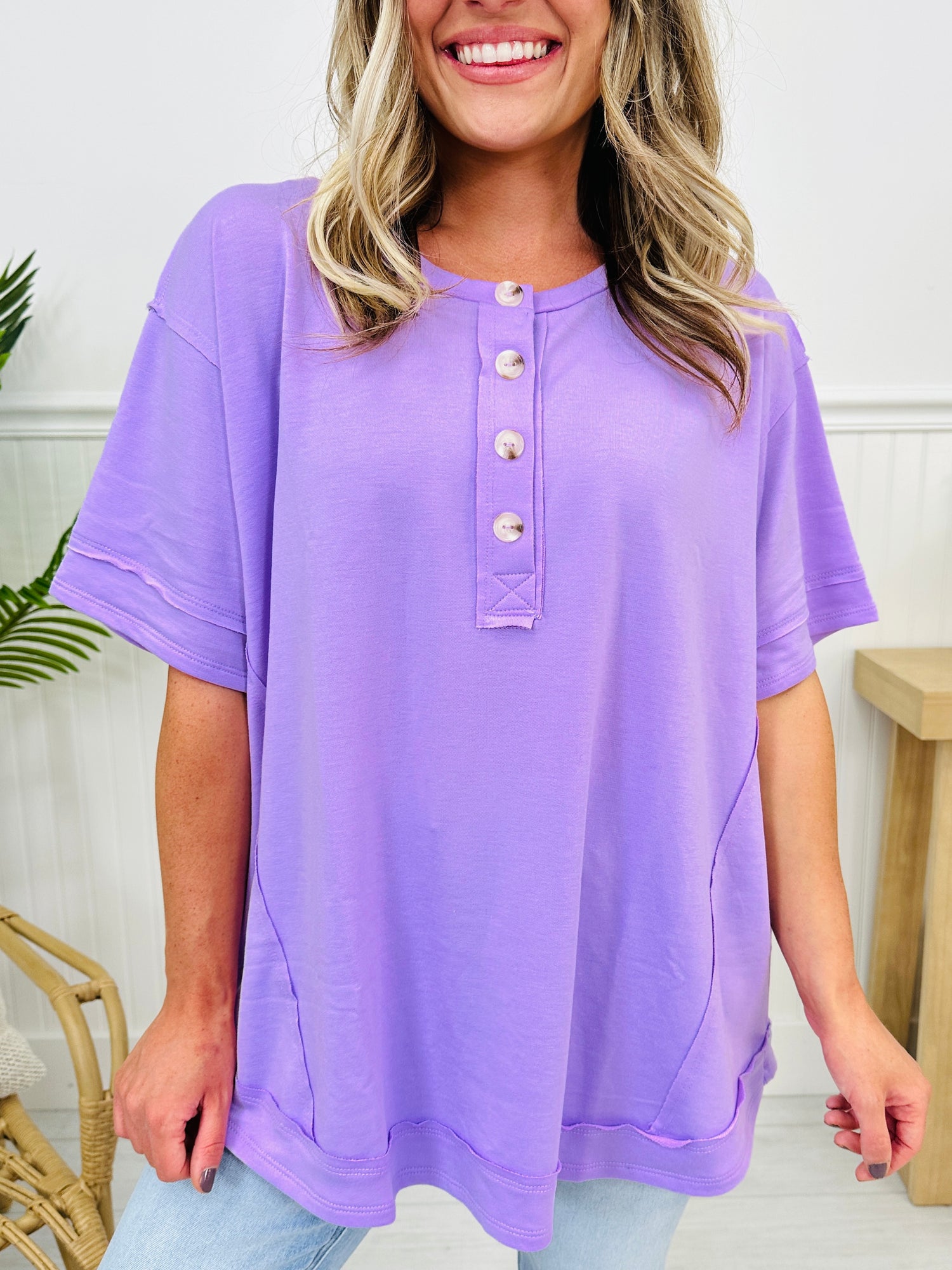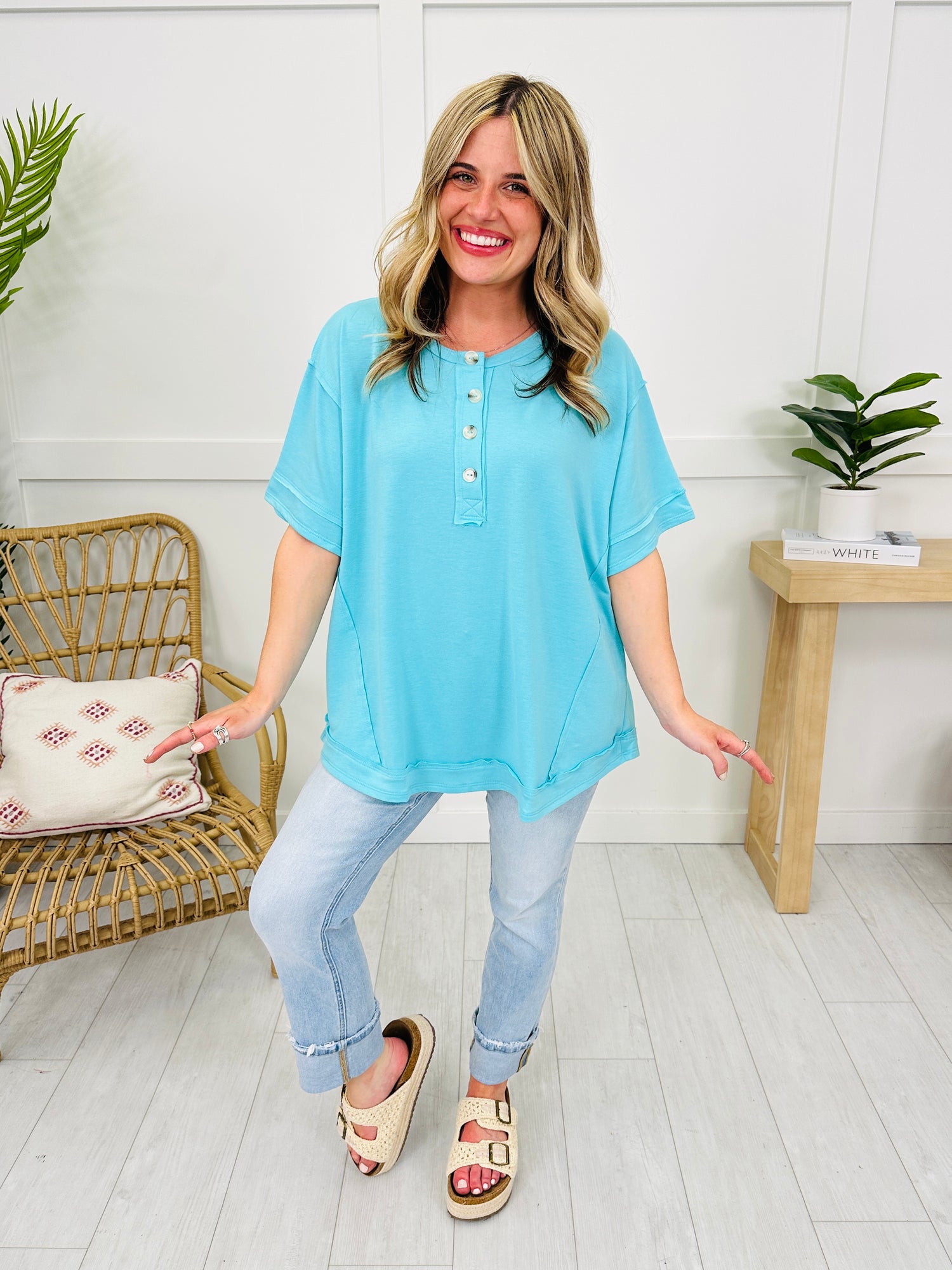 This new arrival is going to give you that summer glow you've been dreaming about! This oversized top is flowy and flattering on every single body type! We love the length of the sleeves and the body. This versatile top can be paired with jeans, shorts, and even leggings! The faux buttons give you an elevated look without you having to worry about the buttons coming undone. We love the bright bold colors, too, and at this amazing price, you can get as many your heart desires!