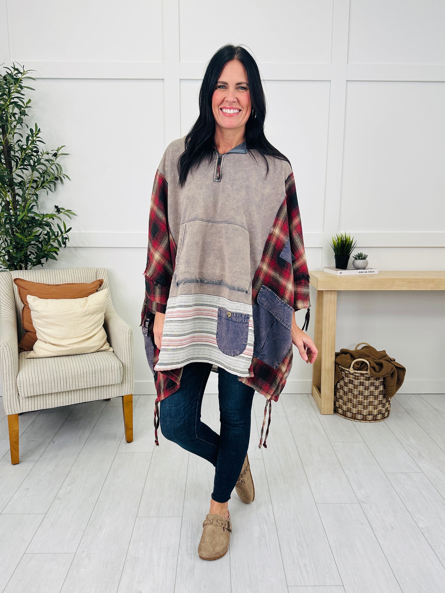 This cozy top combines a relaxed fit with a stylish contrast of flannel sleeves and a fun striped hem. Featuring a buttoned pocket for added functionality, it's perfect for a casual day out or a cozy afternoon at home. The mineral-washed fabric provides a soft, lived-in feel that makes it an instant favorite for your wardrobe.