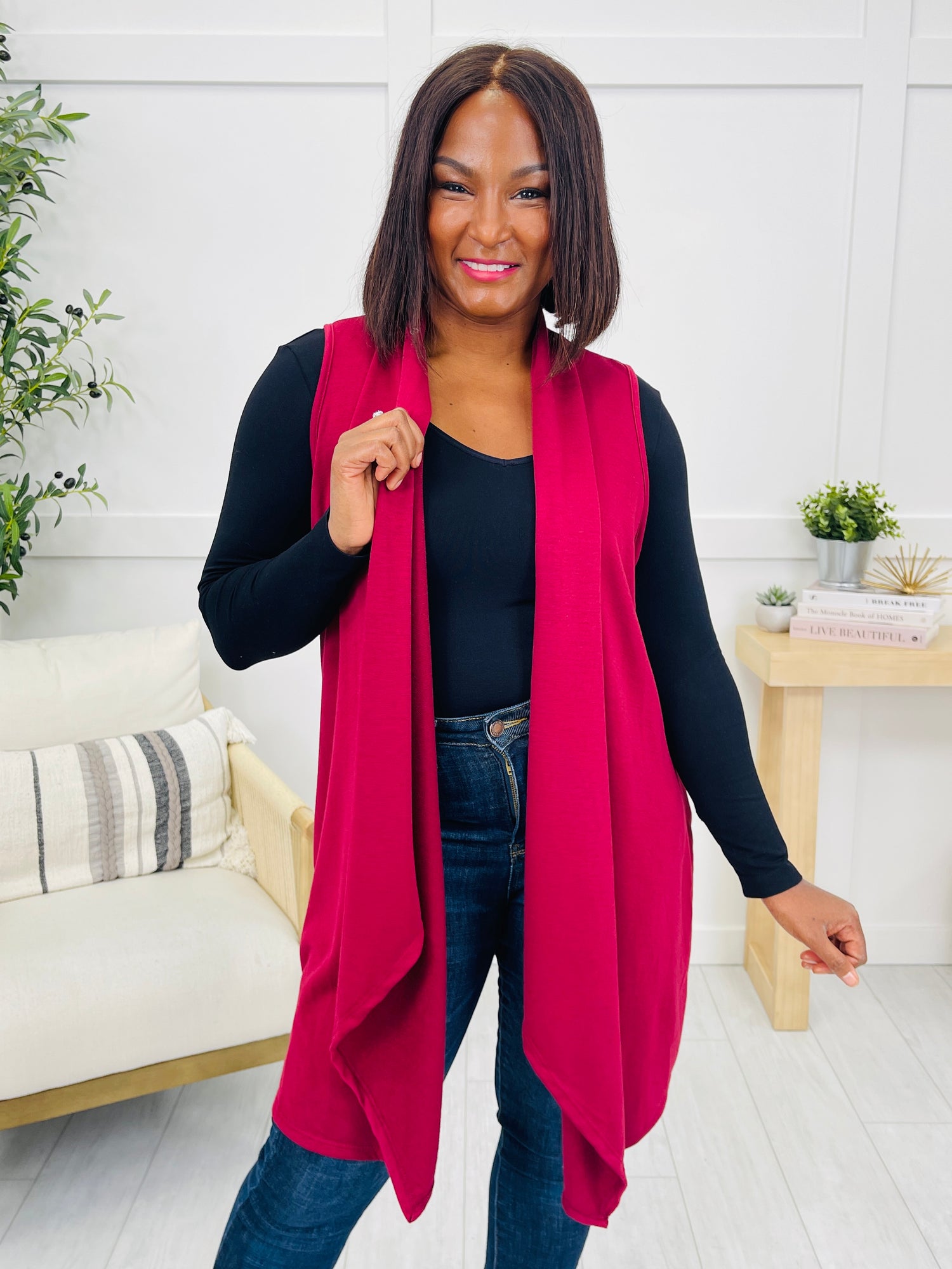 This long sleeveless cardigan is the definition of effortless layering — featuring a flowing drape that falls beautifully and creates an easy, elongated silhouette. The open front and asymmetrical hemline make it a go-to piece for pairing over basics, allowing the color and length to elevate even the most simple outfit. Add it over tees and tops any season you want an extra lightweight layer, and enjoy how polished and put-together it makes every look feel.
