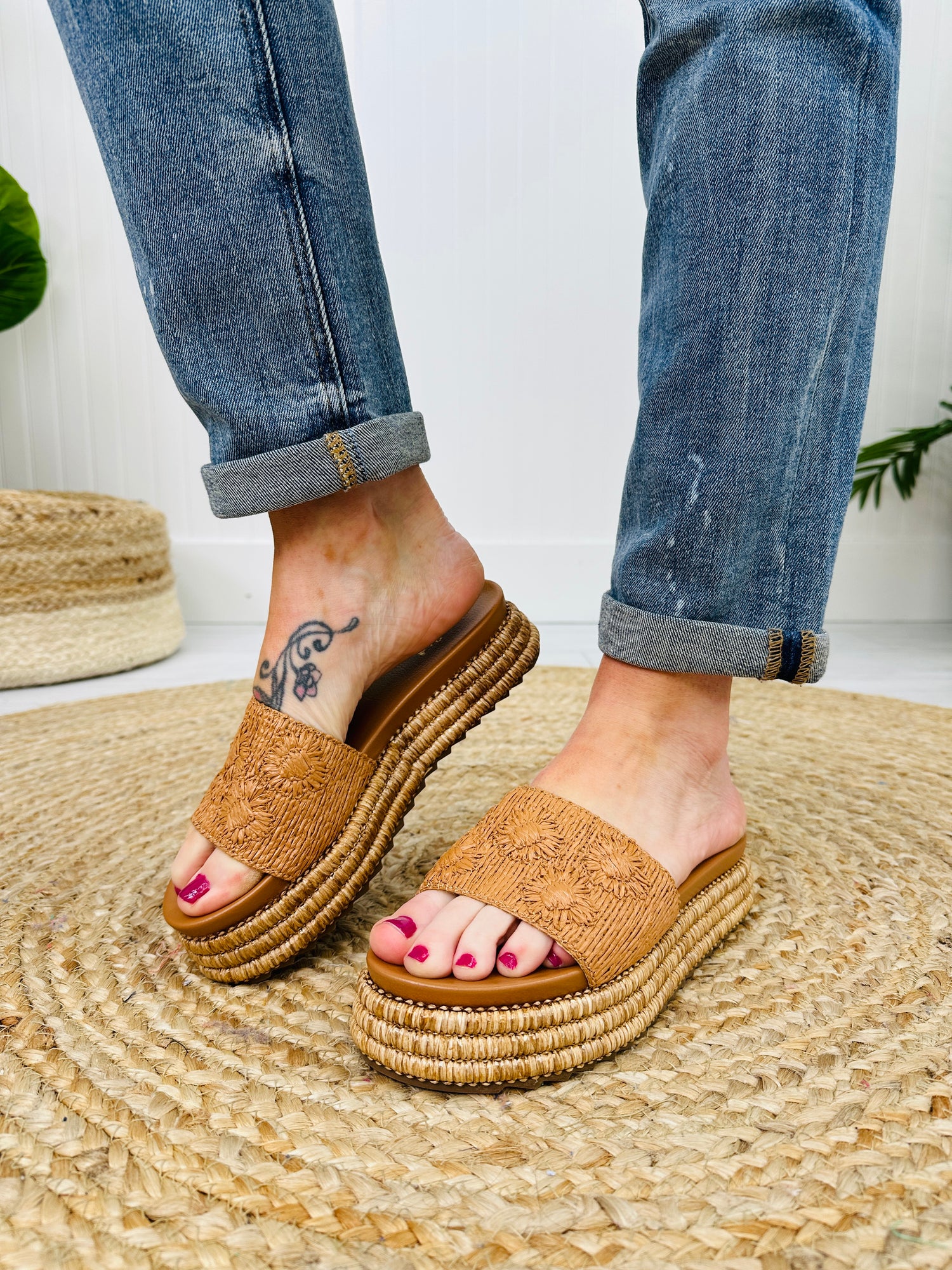 Designed with a beautifully textured raffia strap and a chic jute-wrapped platform sole, these slides bring a breezy, laid-back feel to any look. The cushioned footbed ensures all-day comfort, making them perfect for strolls along the boardwalk or lounging poolside.
