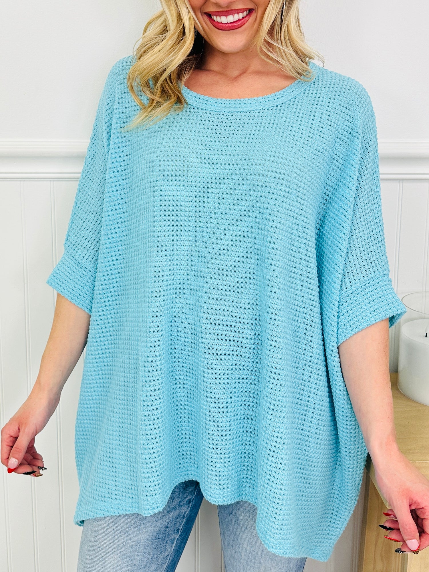 Sunny days are ahead and this new top will be your go-to for spring weather. This top is the perfect lightweight layer for the season in between. Designed in a soft knit with an easy, relaxed fit, this top drapes beautifully for a flattering, effortless look. It’s light enough for warmer days but still cozy enough for cooler mornings, making it a versatile pre-spring staple.