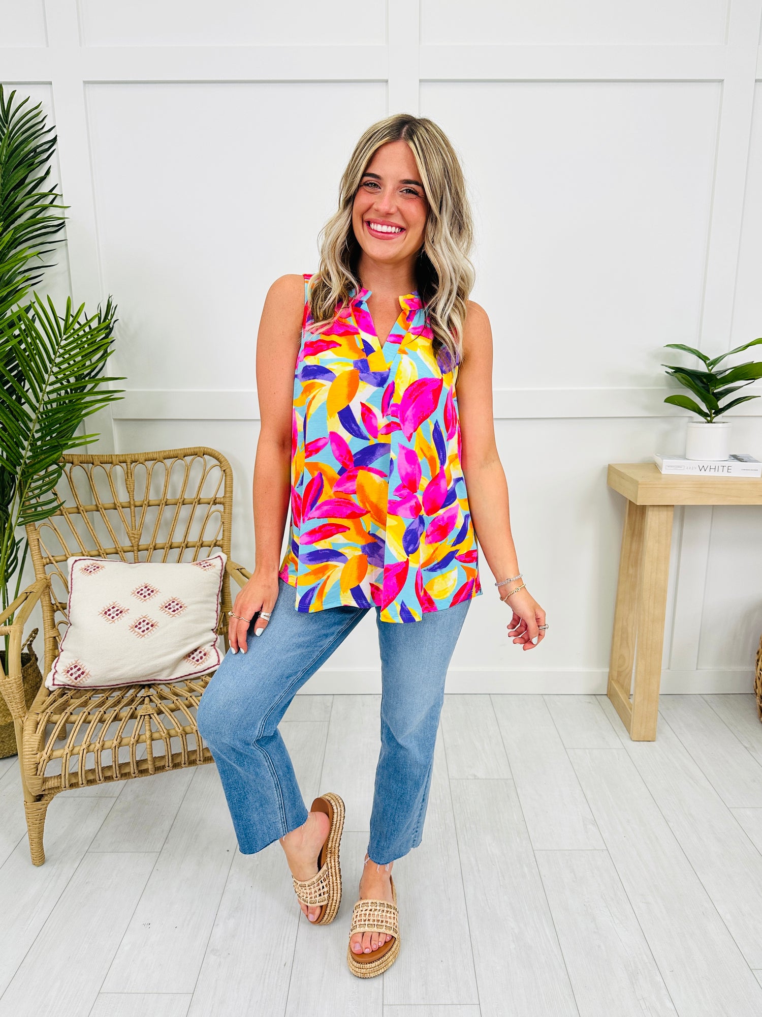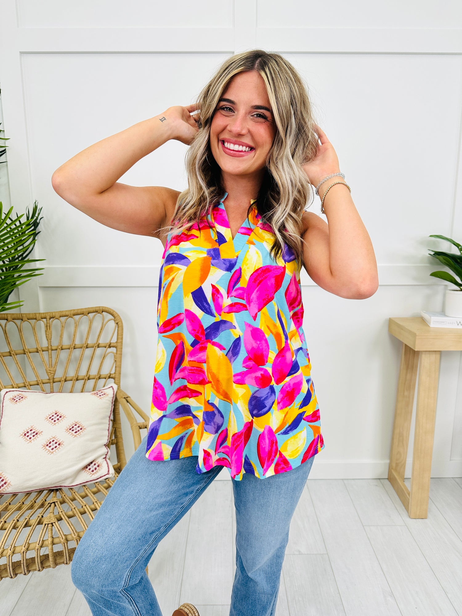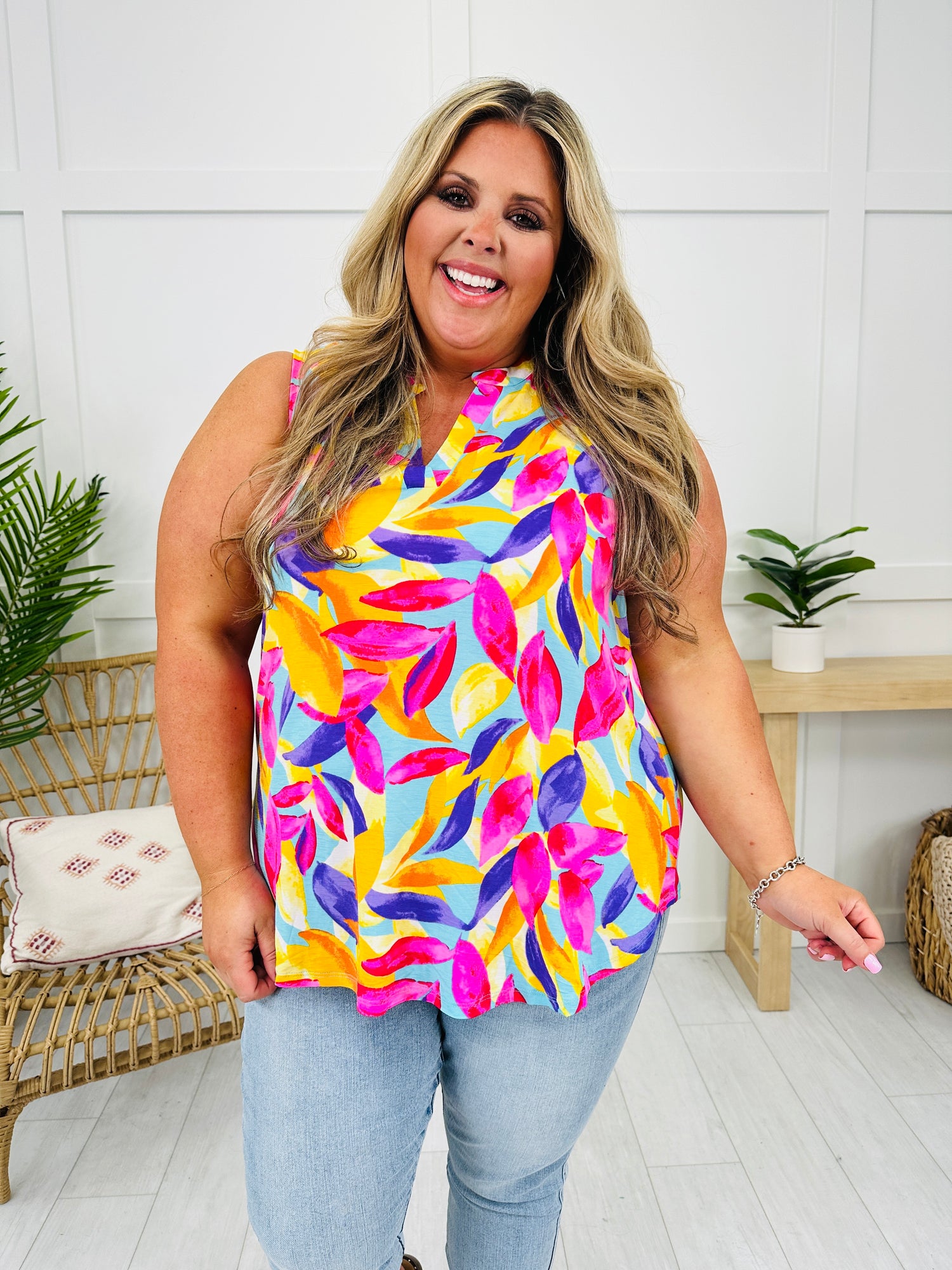 This best selling tank top is perfect for sunny days and is now available in a brand new, bold print that we can't get enough of! This tank top is 100% wrinkle free, which makes it easy to get up and go this summer or to throw it in a beach bag or suitcase when needed.