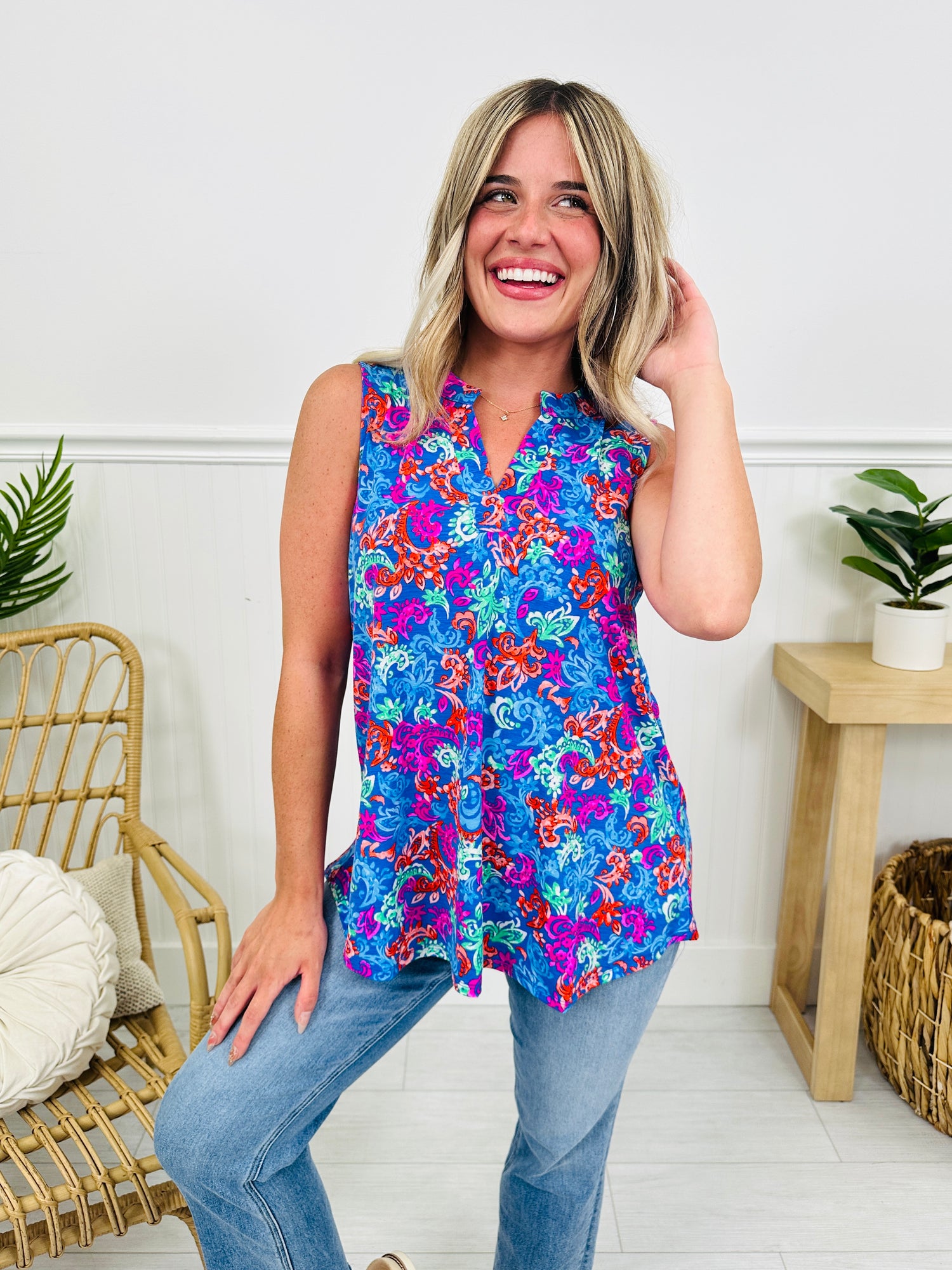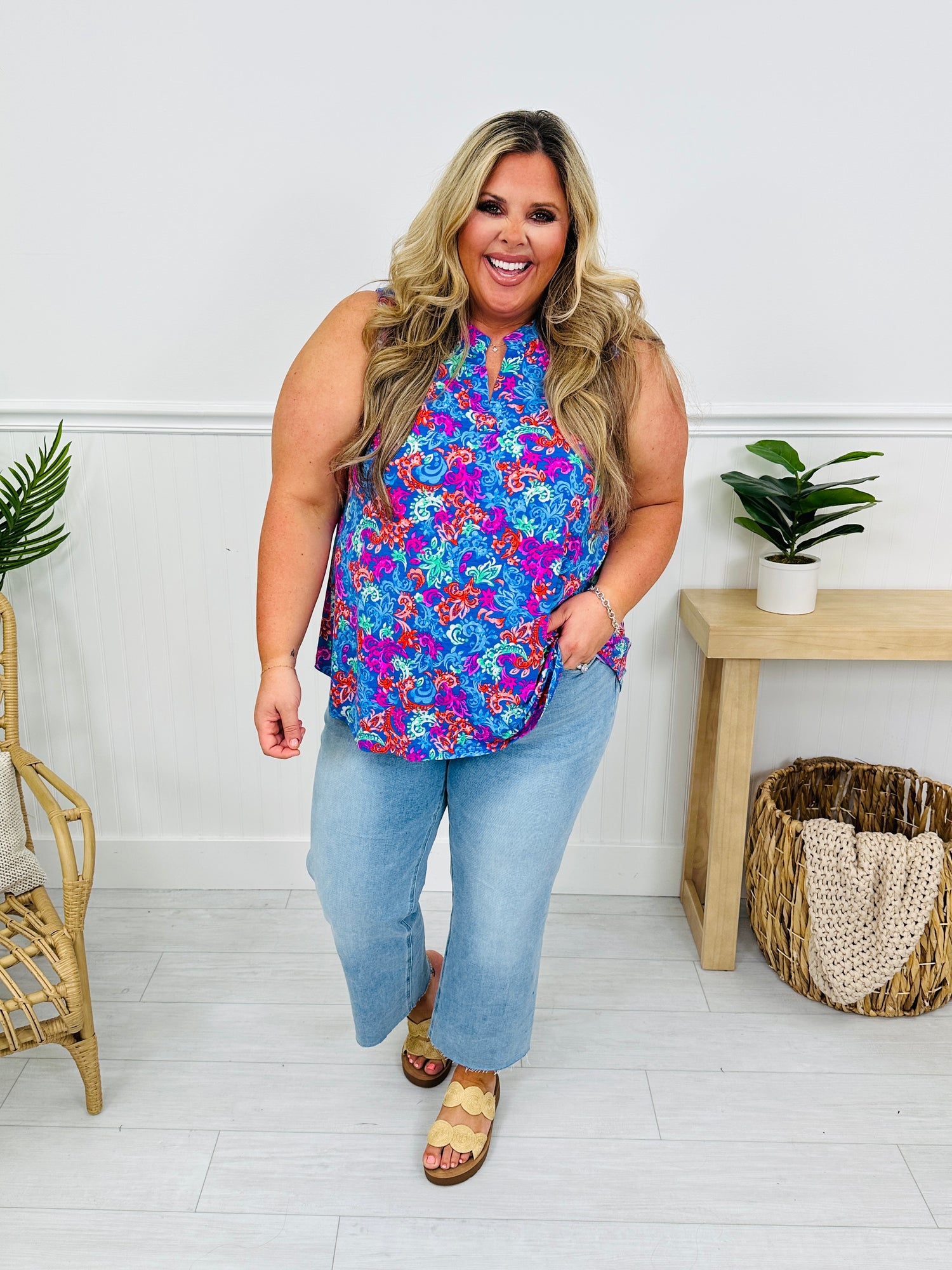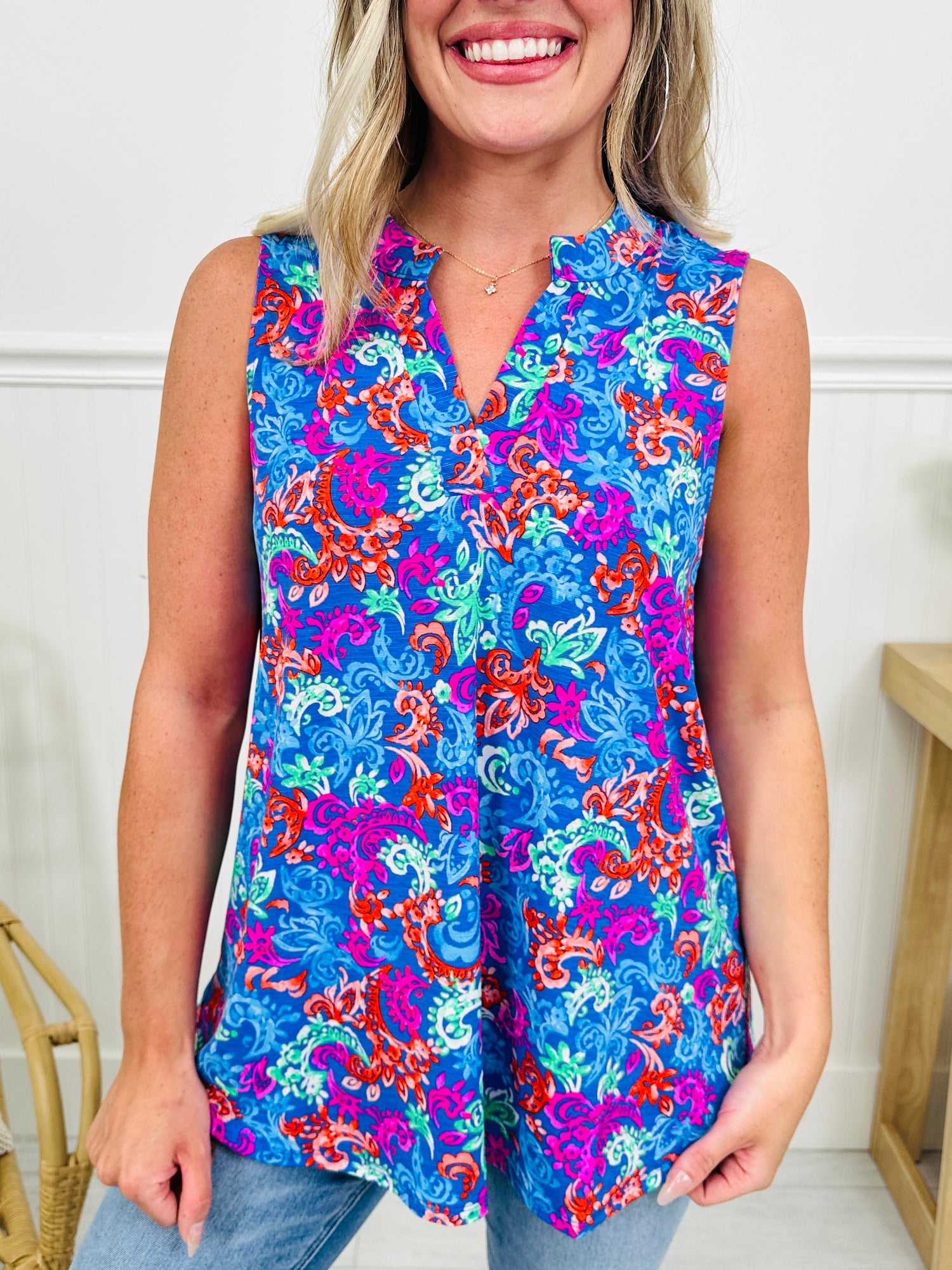 This best selling tank top is perfect for sunny days and is now available in a brand new, bold print that we can't get enough of! This tank top is 100% wrinkle free, which makes it easy to get up and go this summer or to throw it in a beach bag or suitcase when needed.