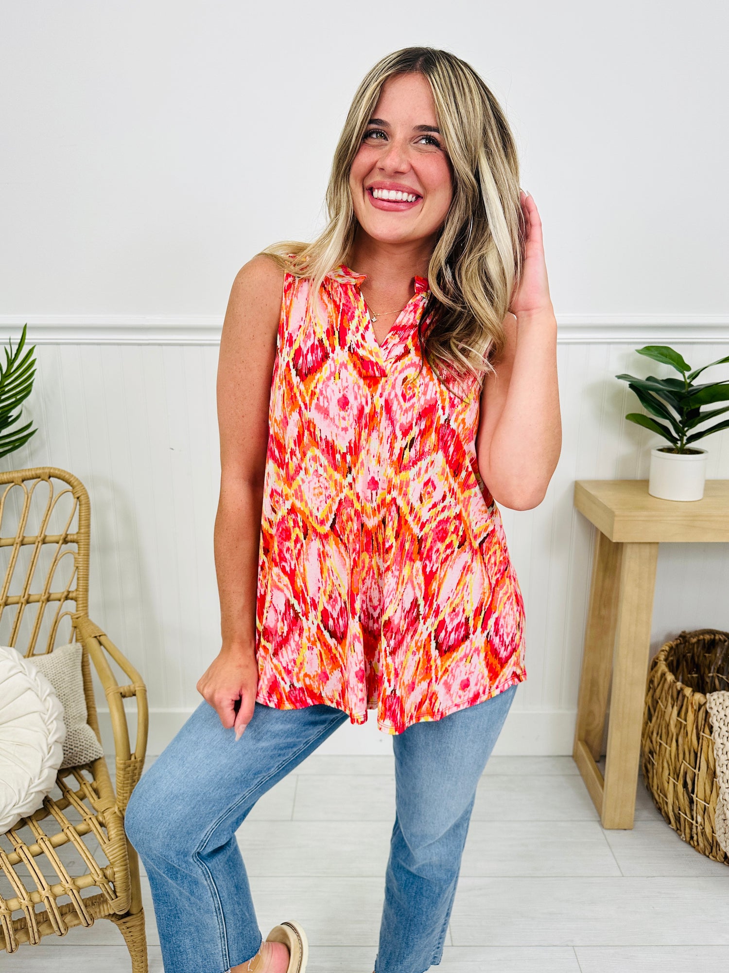 This best selling tank top is perfect for sunny days and is now available in a brand new, bold print that we can't get enough of! This tank top is 100% wrinkle free, which makes it easy to get up and go this summer or to throw it in a beach bag or suitcase when needed.