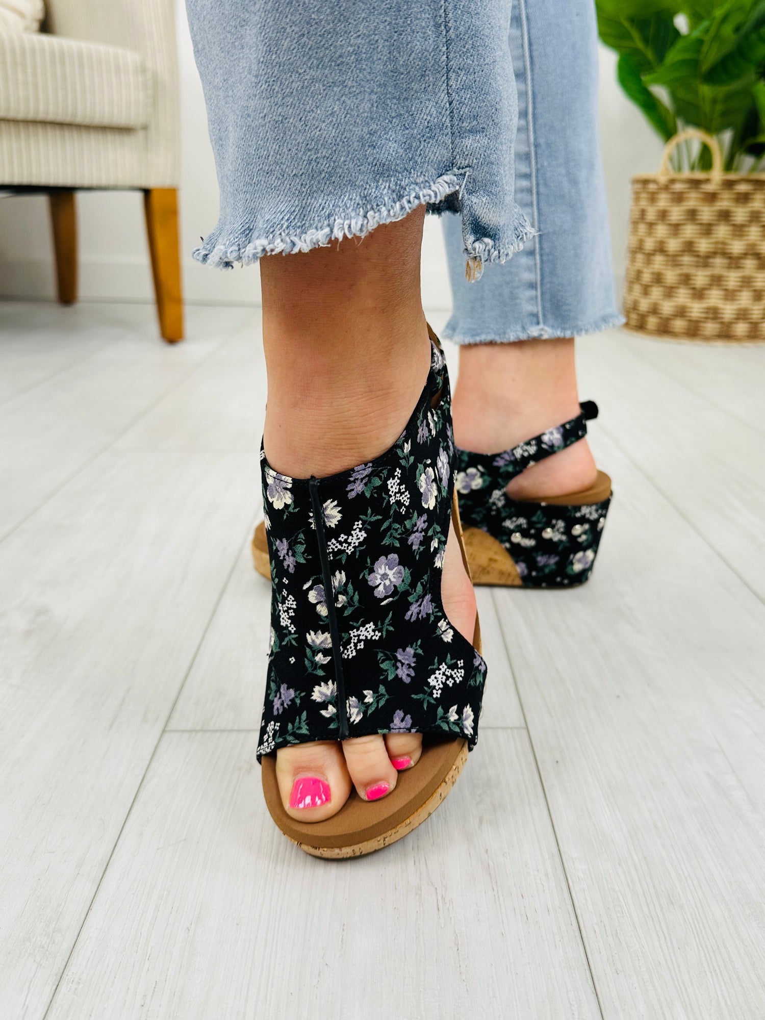 Sunshine Strut Wedges in Black Floral