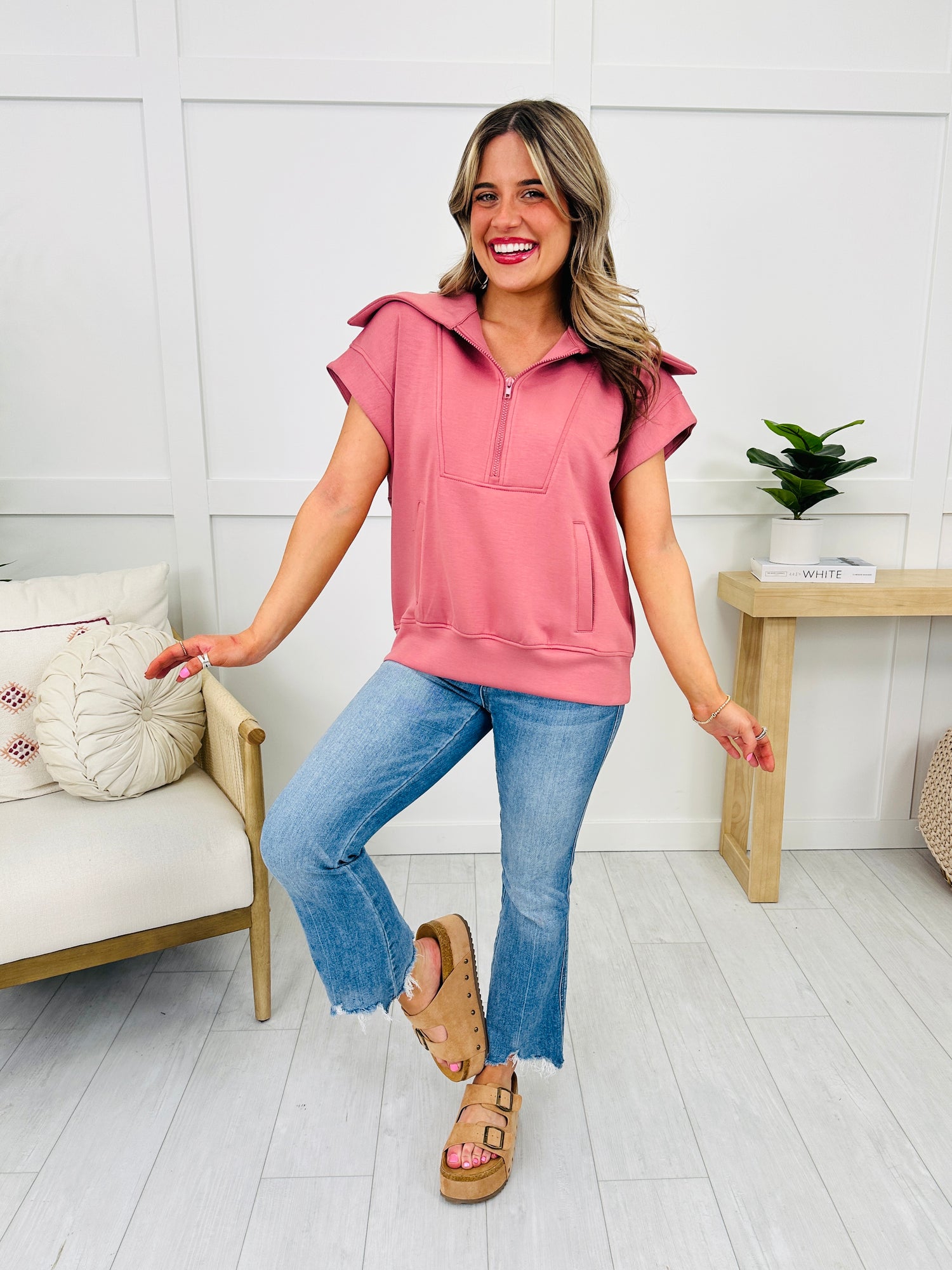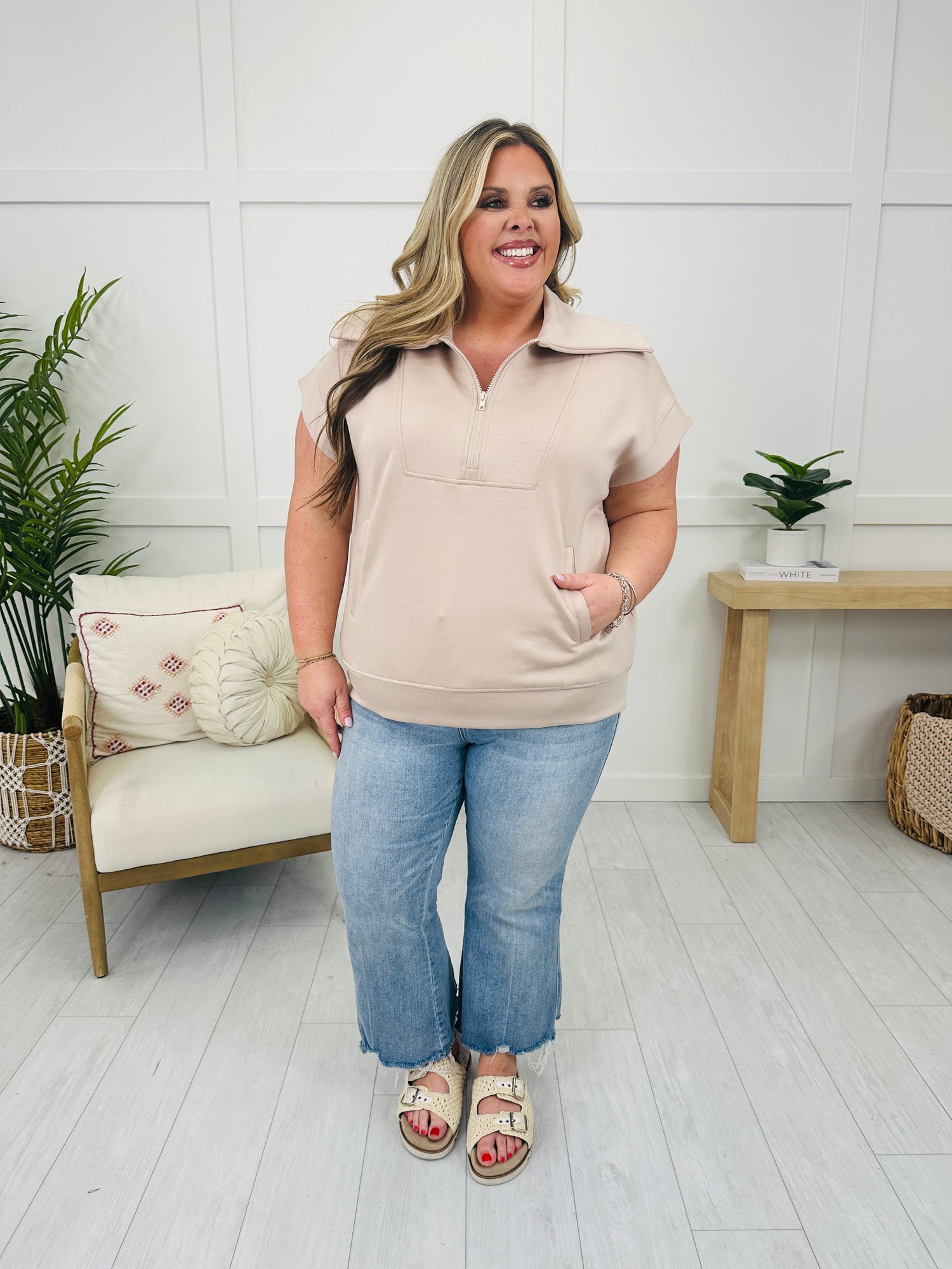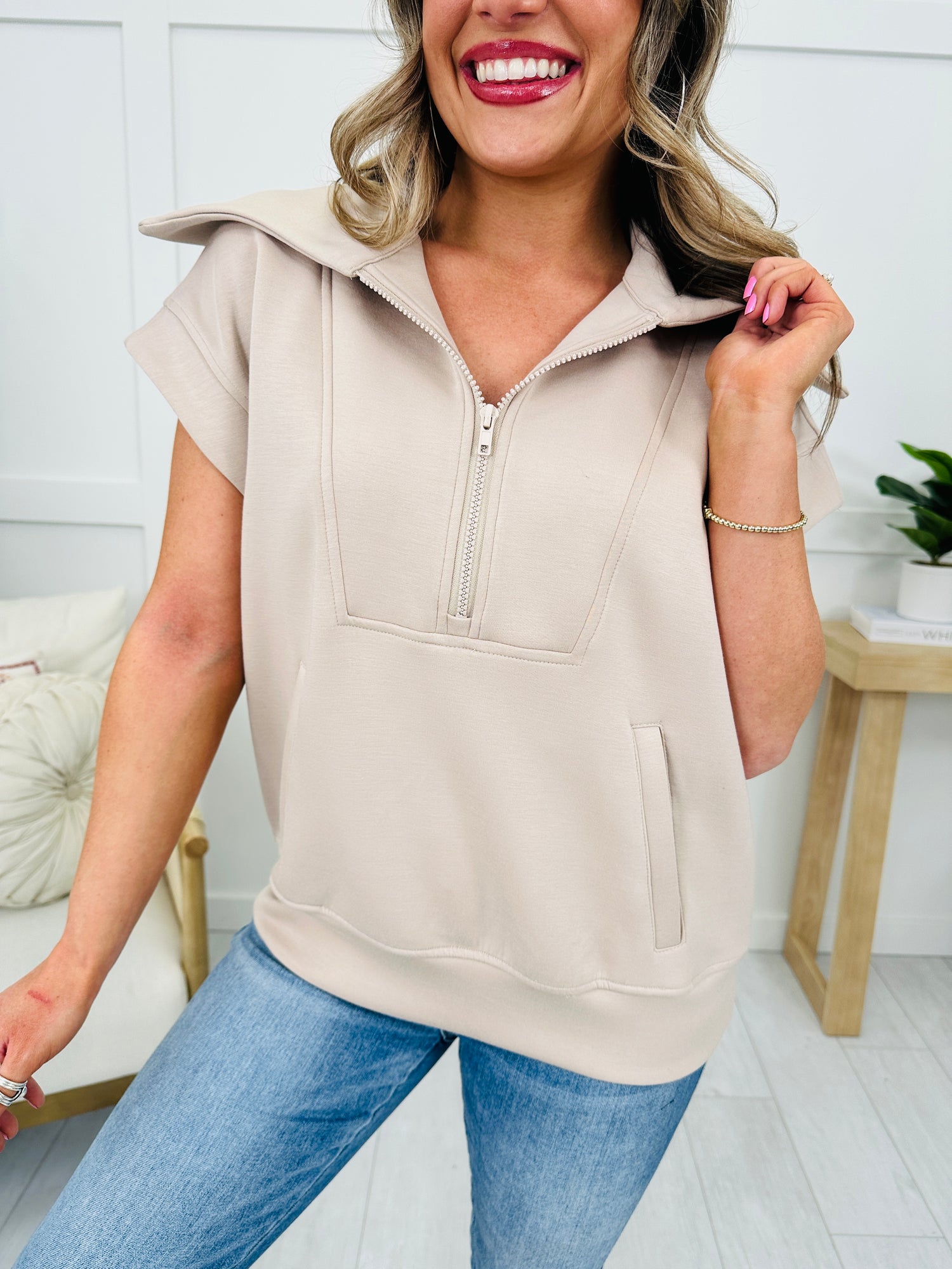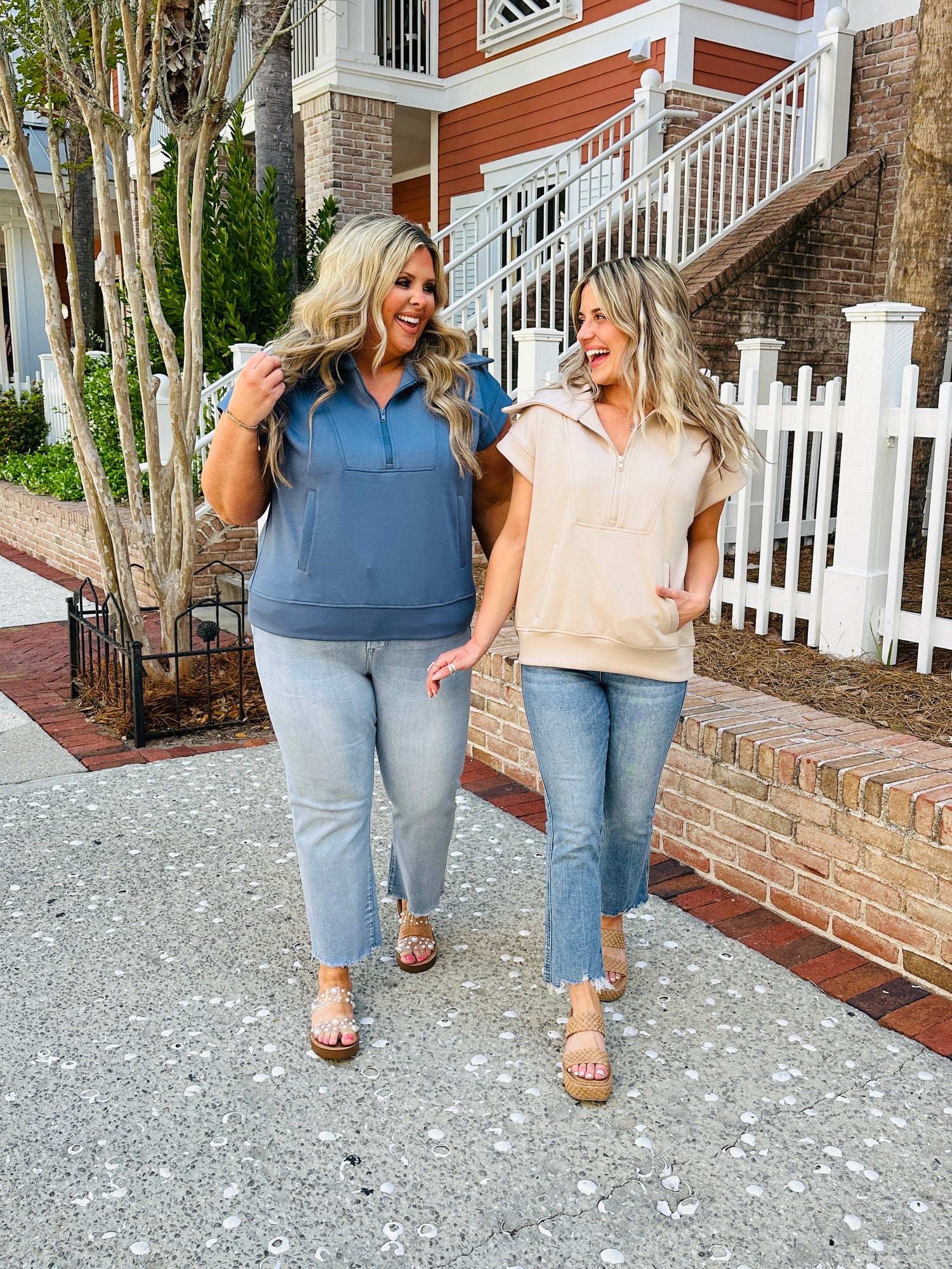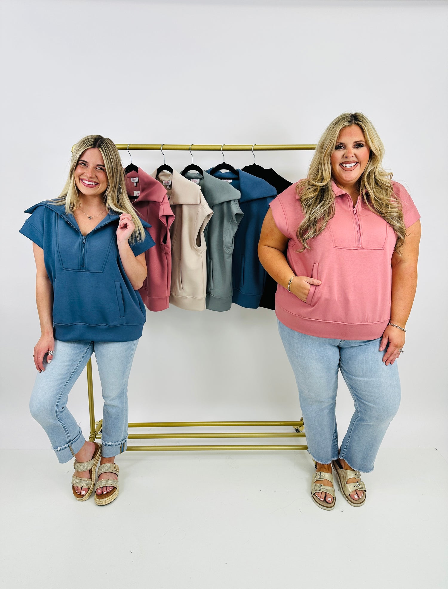 Our best selling super scuba pullover is now available in a short sleeve version, just in time for spring! It comes in sizes S-3XL and you need multiple colors. Our exclusive super scuba fabric is the most luxe, buttery soft fabric that is somehow even more soft on the inside than it is on the outside. We have sold tens of thousands of pieces from this fabric and our customers rave about it! Our best selling quarter zip pullover is now available in a short sleeve version for spring!