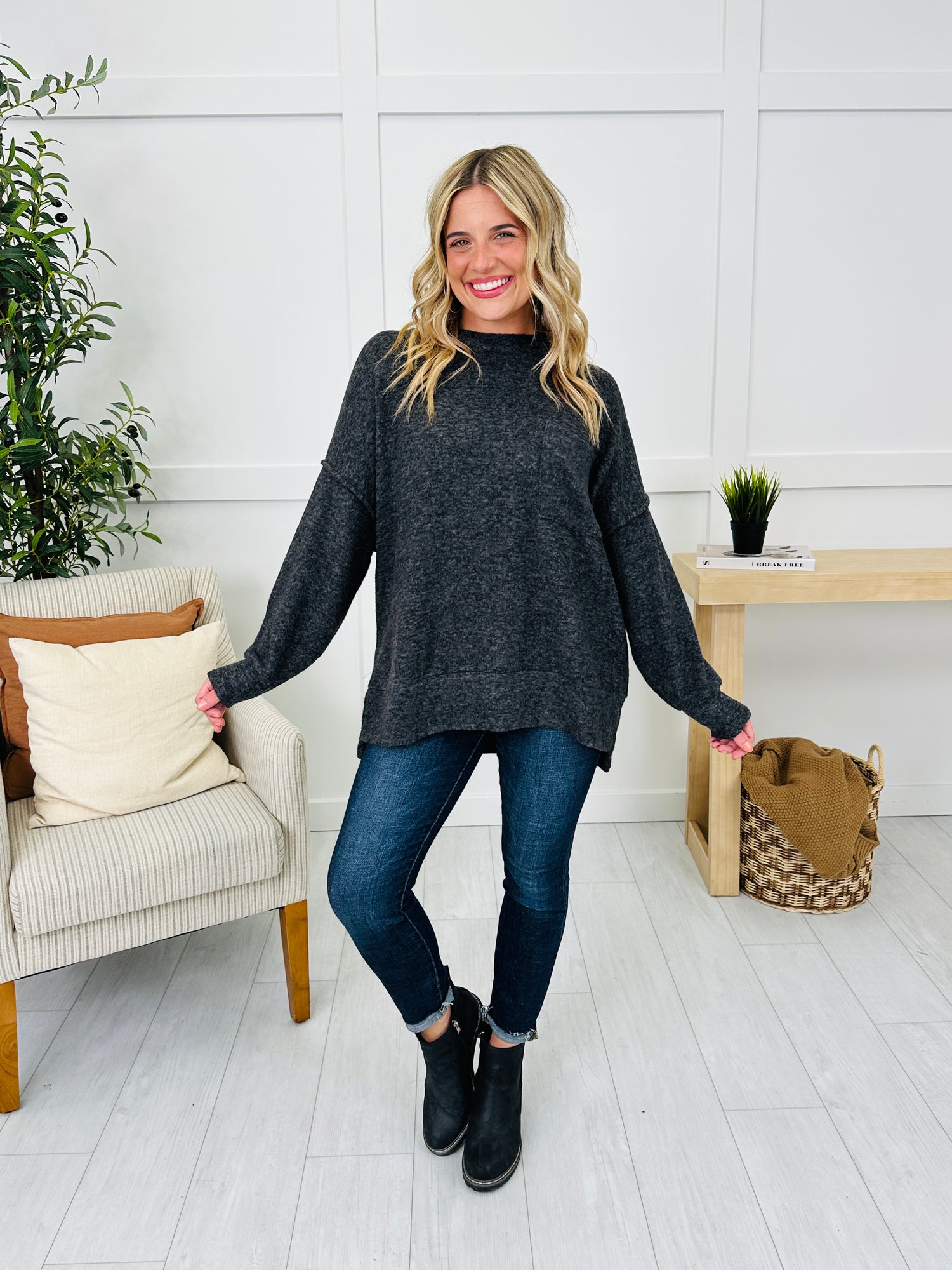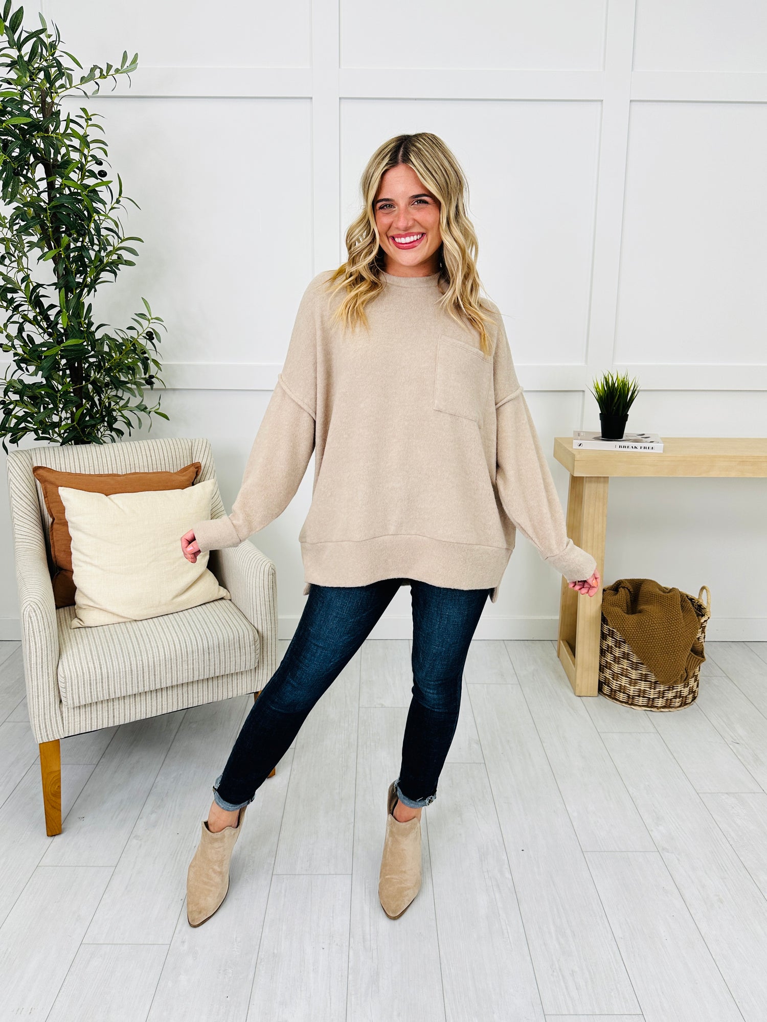 Sweater weather is almost here and this will be your new go-to sweater this fall. This best selling material feels like your favorite blanket on your body. It is medium weight, stretchy, soft, and cozy with zero itch. It is so comfortable and you will never want to take it off. It is the perfect length to pair with both jeans and leggings! Dress it up with booties or down with sneakers for multiple, versatile looks. The fit is flowy and flattering on every single body type and we love the trendy, relaxed pocket. Grab this new arrival in multiple colors so you can be prepared for sweater weather this season!