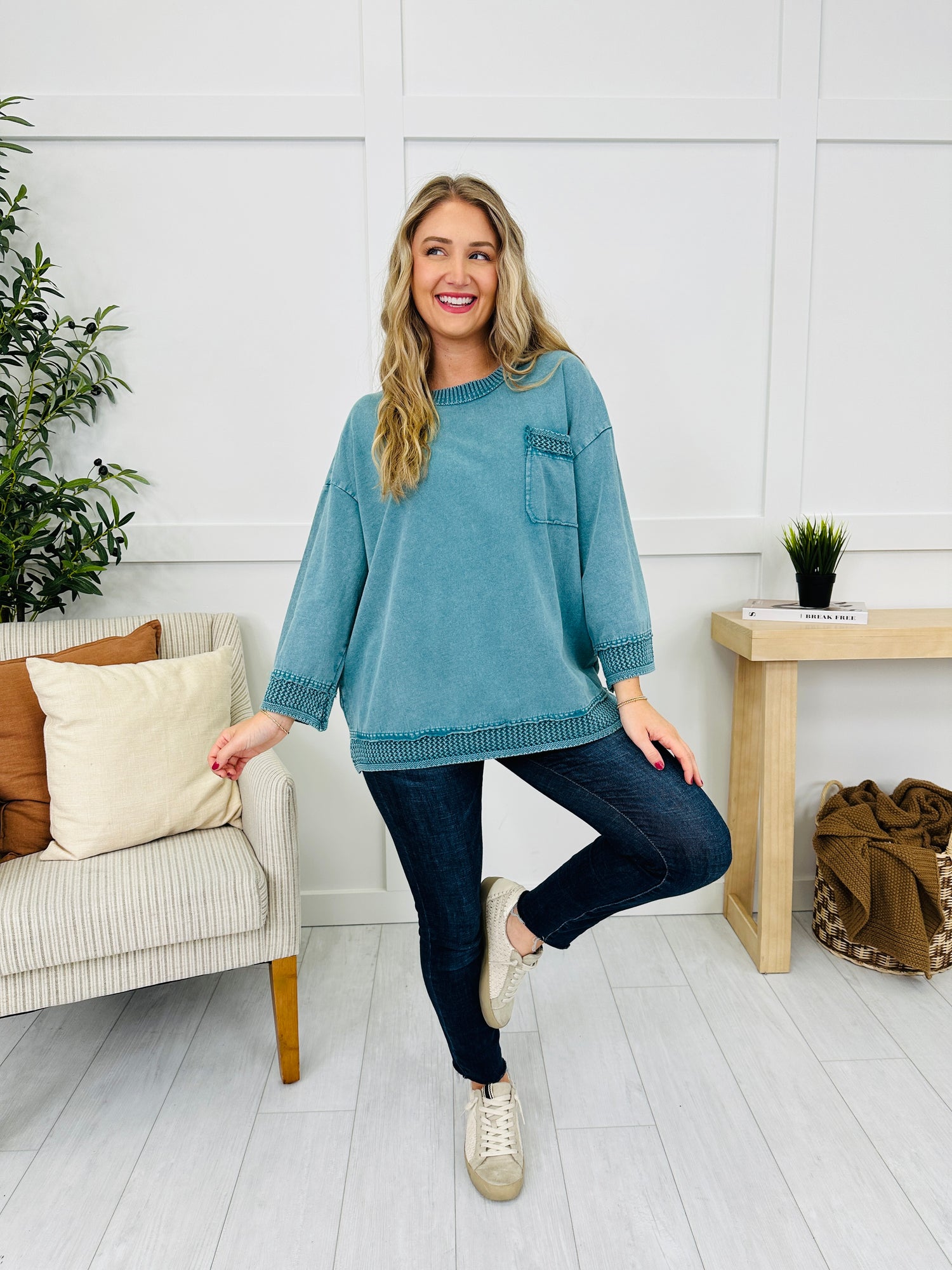 This top blends laid-back comfort with thoughtful design, thanks to its detailed trim accents along the neckline, sleeves, hem, and chest pocket. The relaxed, roomy fit makes it effortless to wear, while the chest pocket detail adds a touch of casual charm. Pair it with denim or leggings for an easy, polished everyday look.