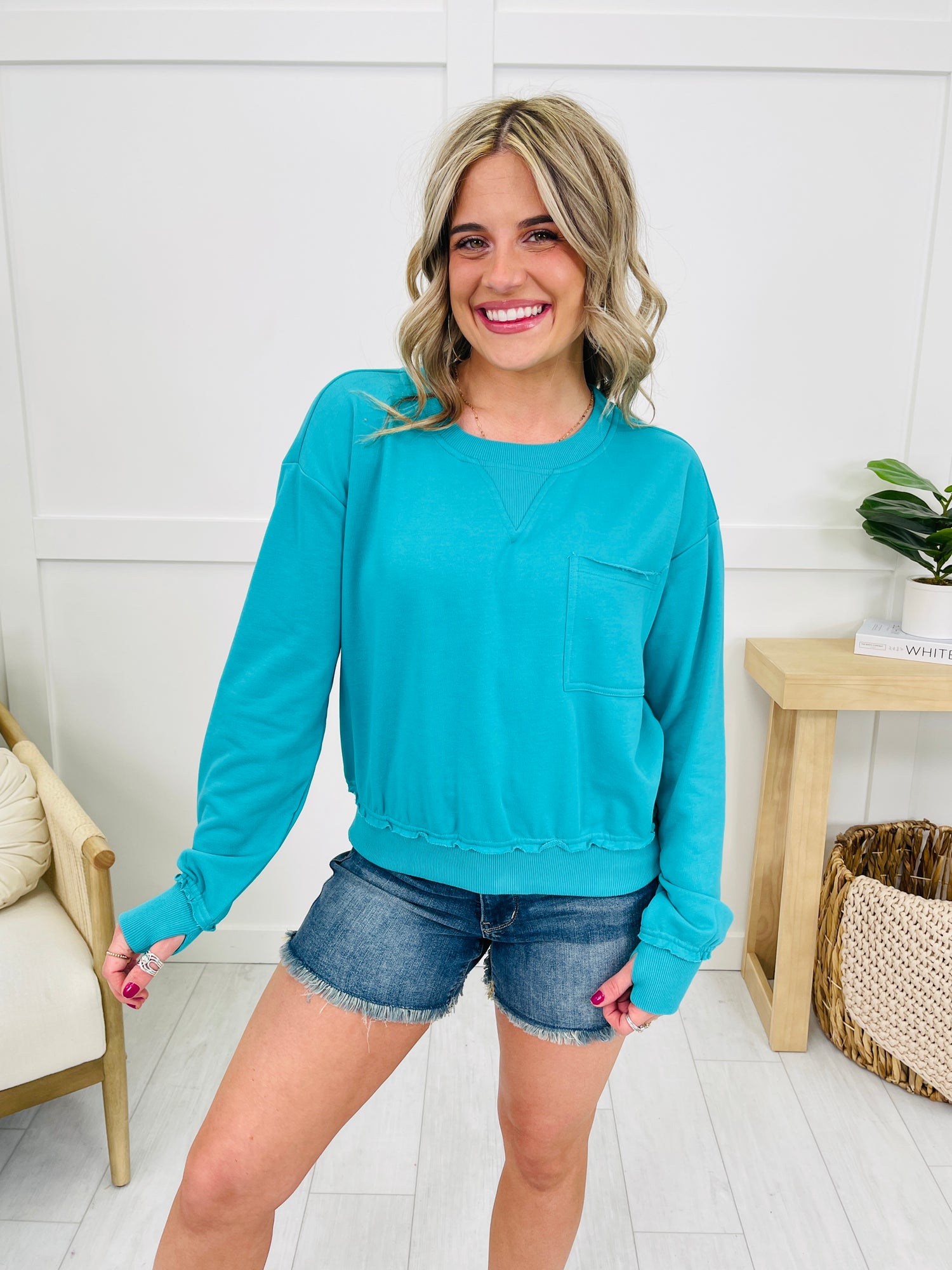 Nothing makes us happier than giving you a spring steal with doorbuster pricing and this new pullover its a must have this season and for only $28, you can get as many of gorgeous bright colors as your heart desires. This pullover is light weight and features trendy reverse hem stitching, thumb holes, and a relaxed pocket. It's perfect for cool nights this spring and summer!