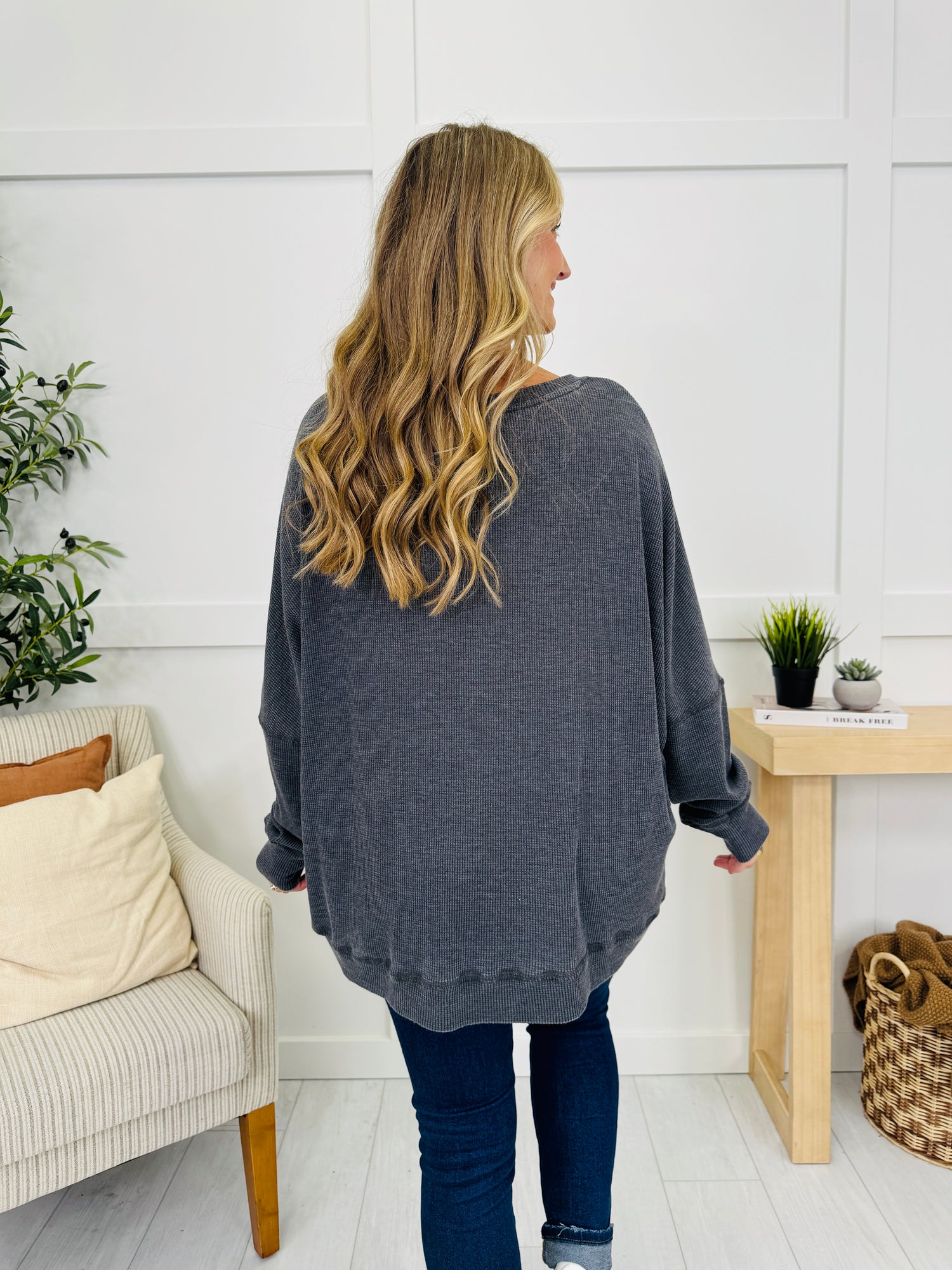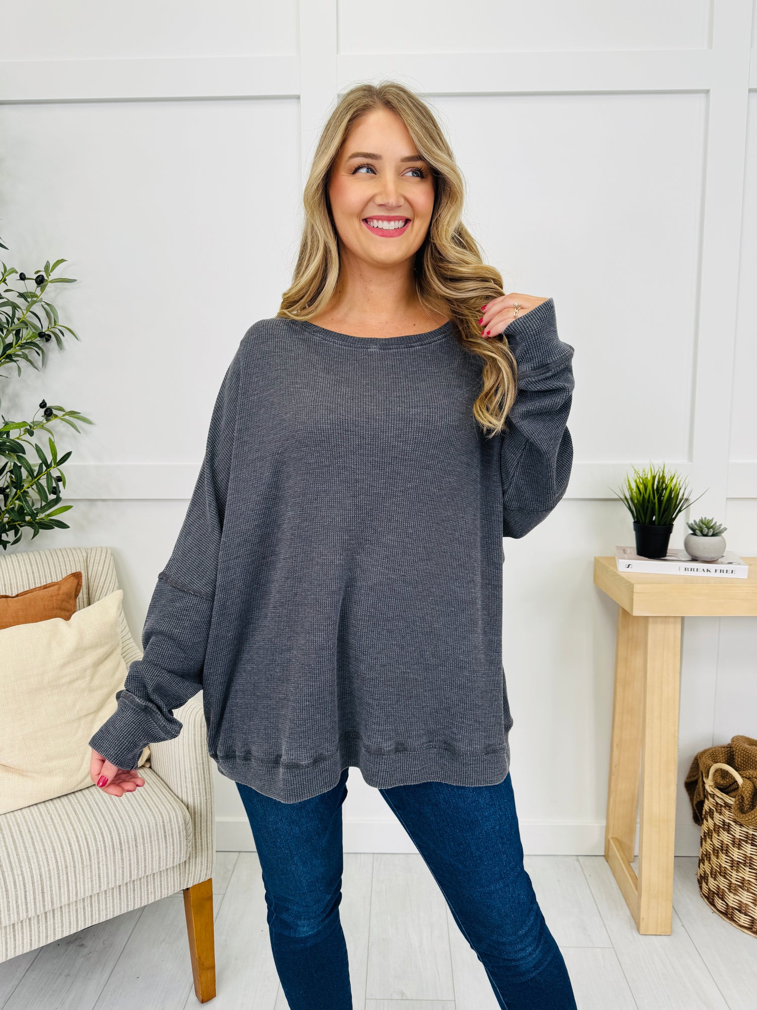 This easygoing top is all about effortless comfort and timeless style. The textured knit adds cozy dimension, while the laid-back silhouette drapes beautifully for an easy, relaxed feel. Finished in a versatile neutral tone that pairs seamlessly with anything in your closet, it’s the perfect throw-on-and-go piece for casual days and cozy nights alike.