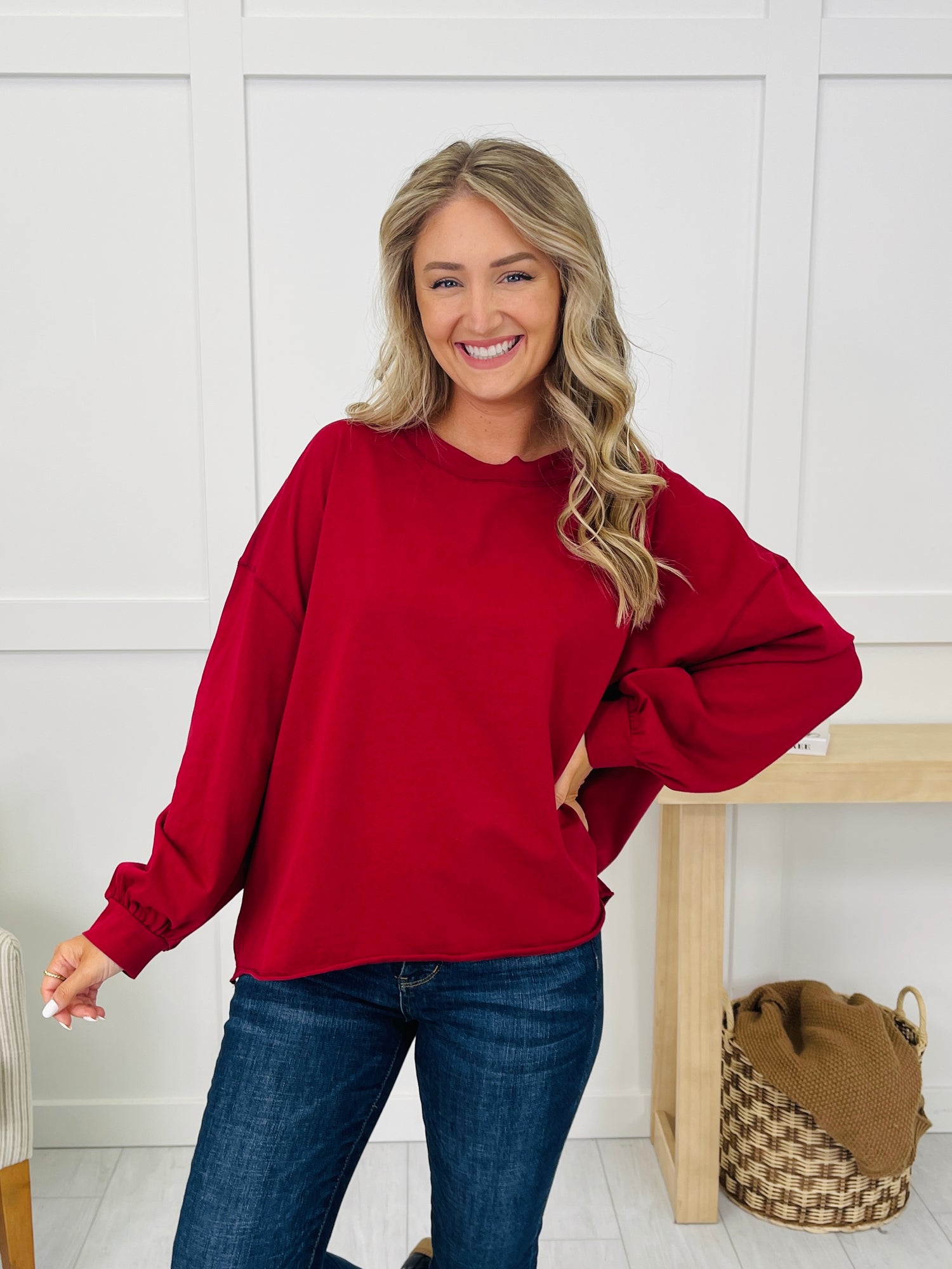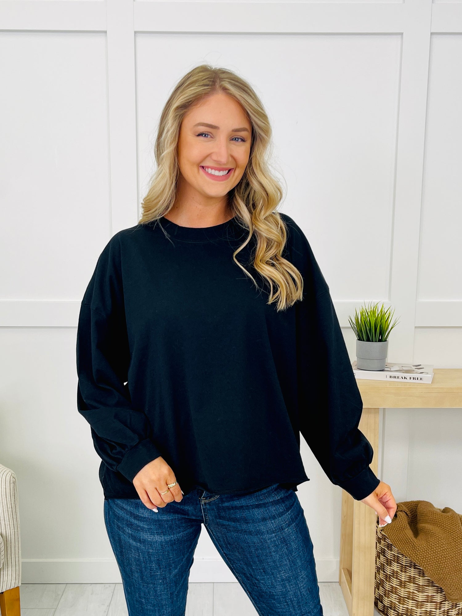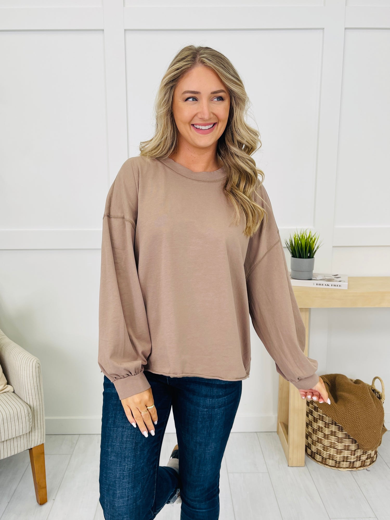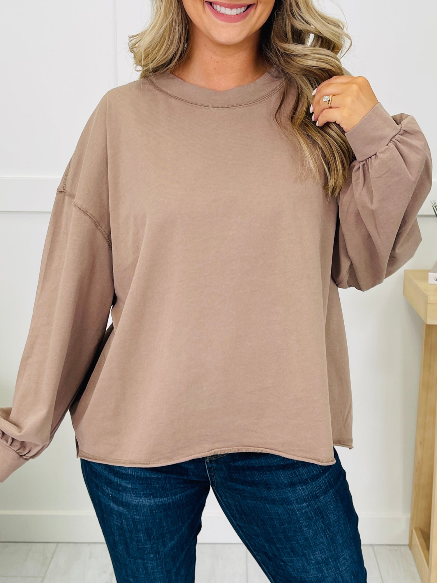 This easygoing top drapes beautifully with its relaxed silhouette, while the fun lantern sleeves add a touch of drama that’s balanced by the clean, fitted cuffs. Finished with a raw-cut hem for an undone, modern edge, it’s the perfect piece to throw on with jeans or leggings for an instant style boost. Soft, breathable fabric and a flattering neckline make it just as comfortable as it is chic.