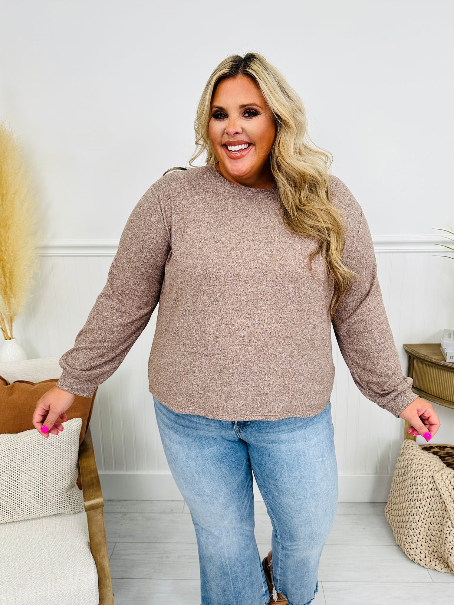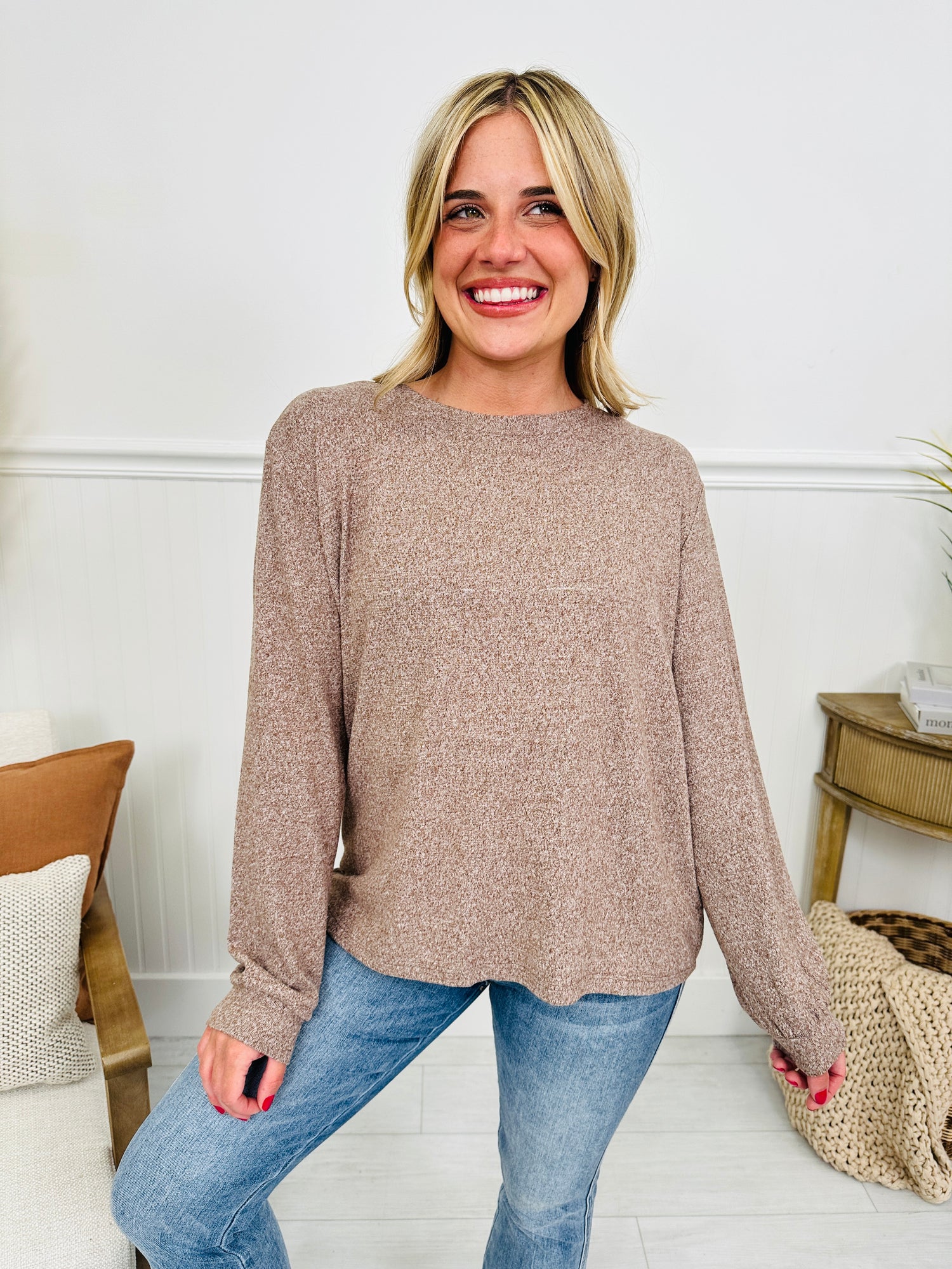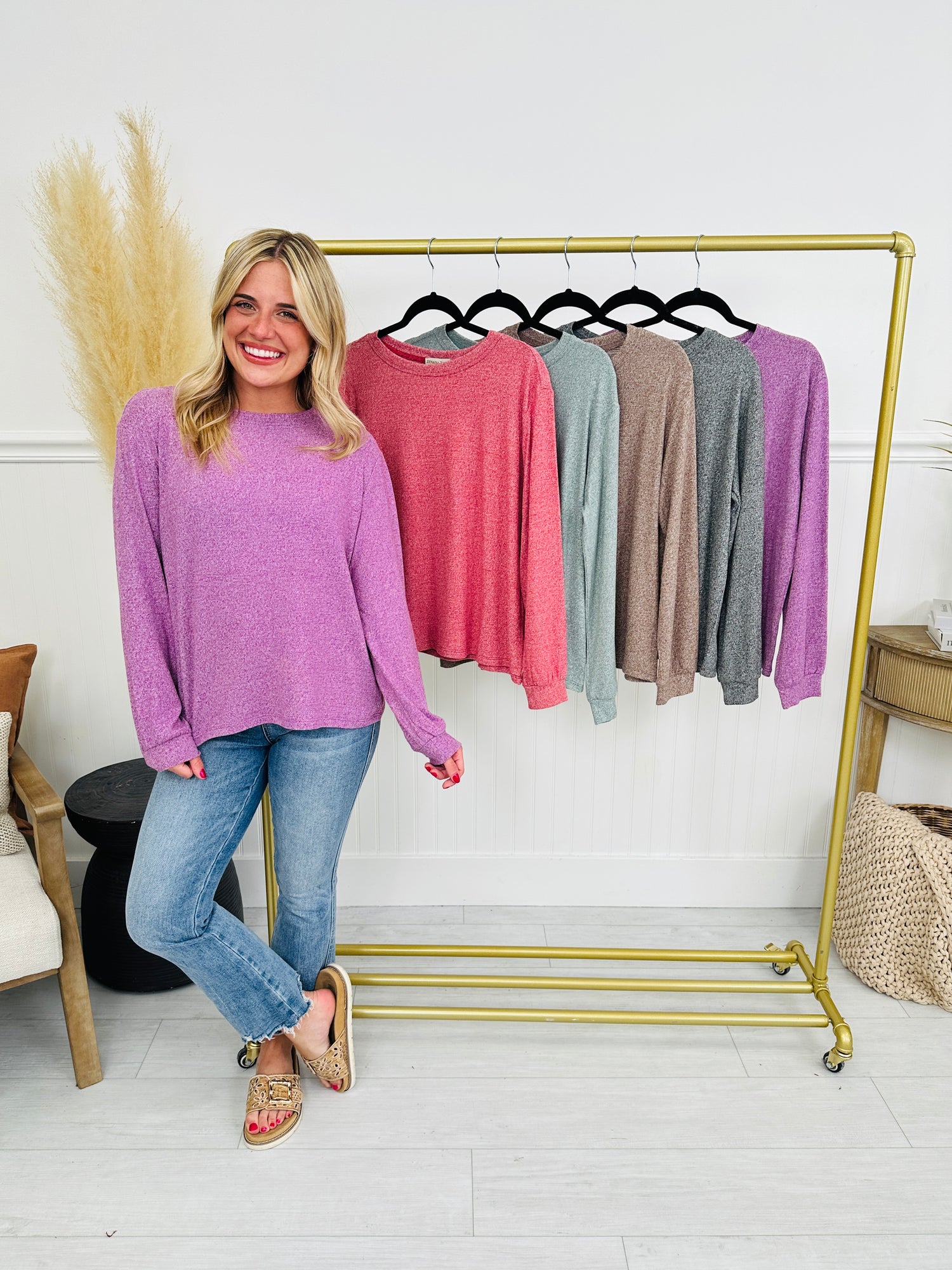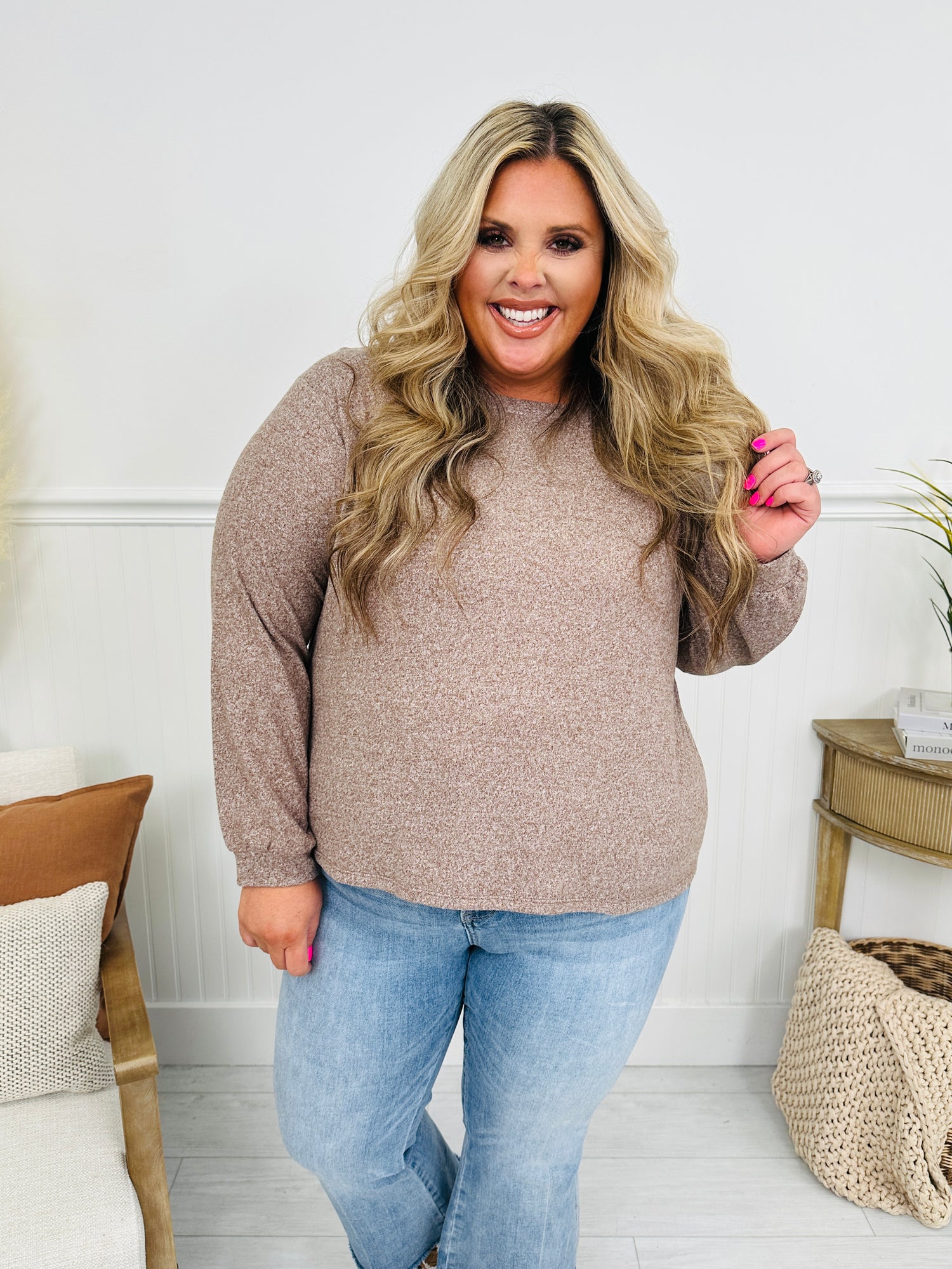 The softest top you'll ever own is here and it's going to be a go-to in your fall wardrobe! Our customers rave about this brushed soft, light weight, knit material! It is stretchy and so comfortable. This top is oversized and flowy in your true size and flattering on every single body type!