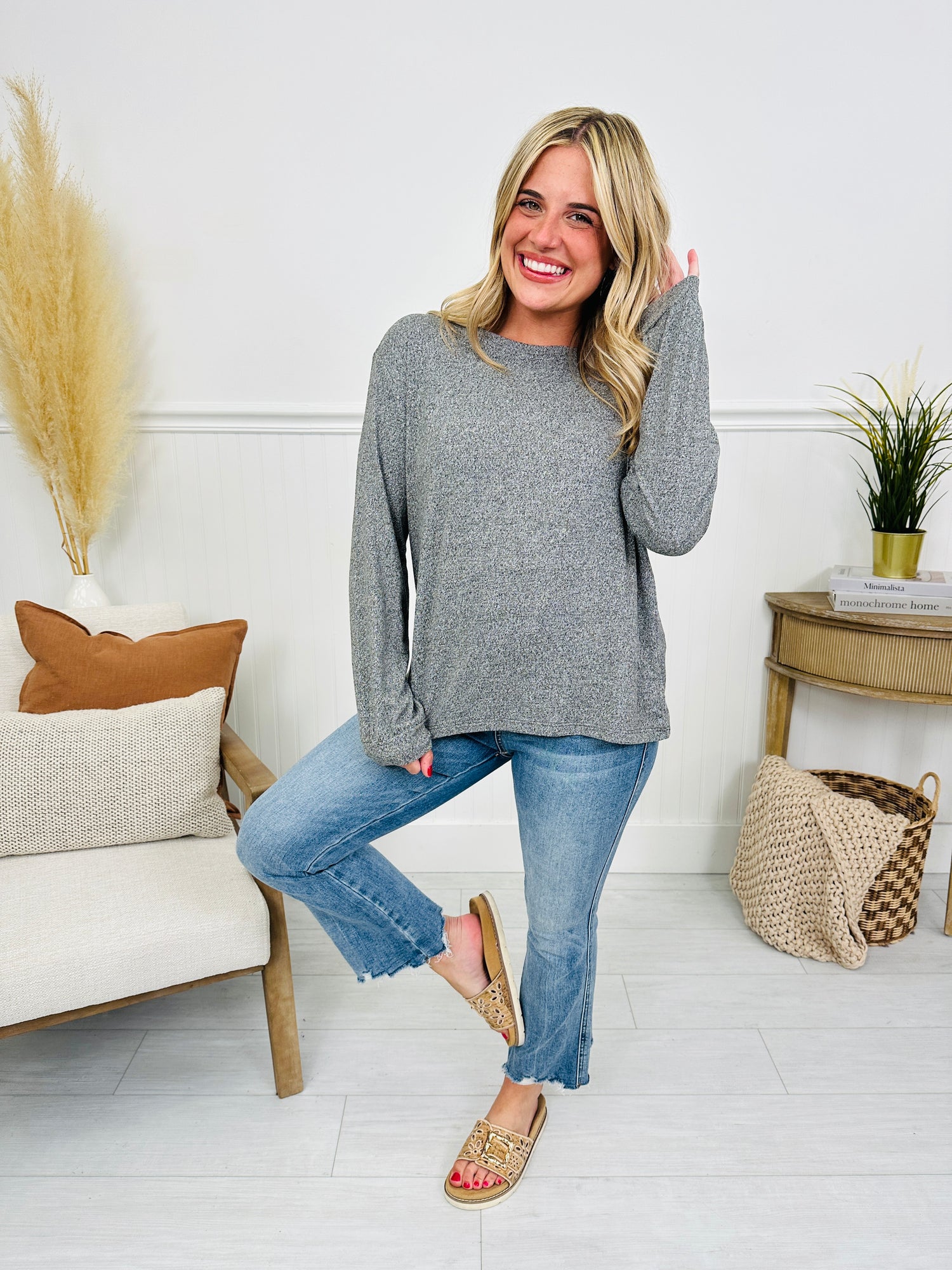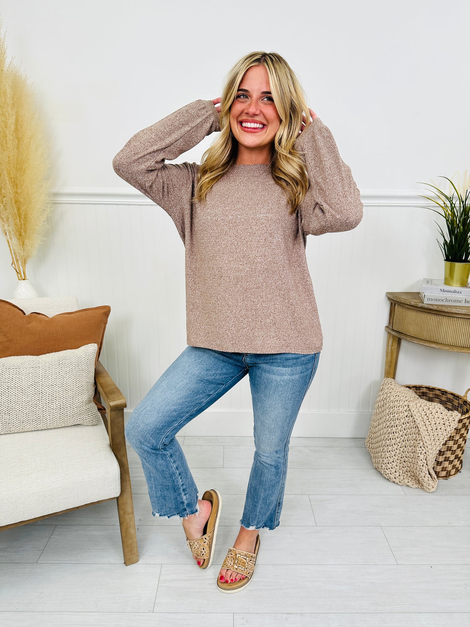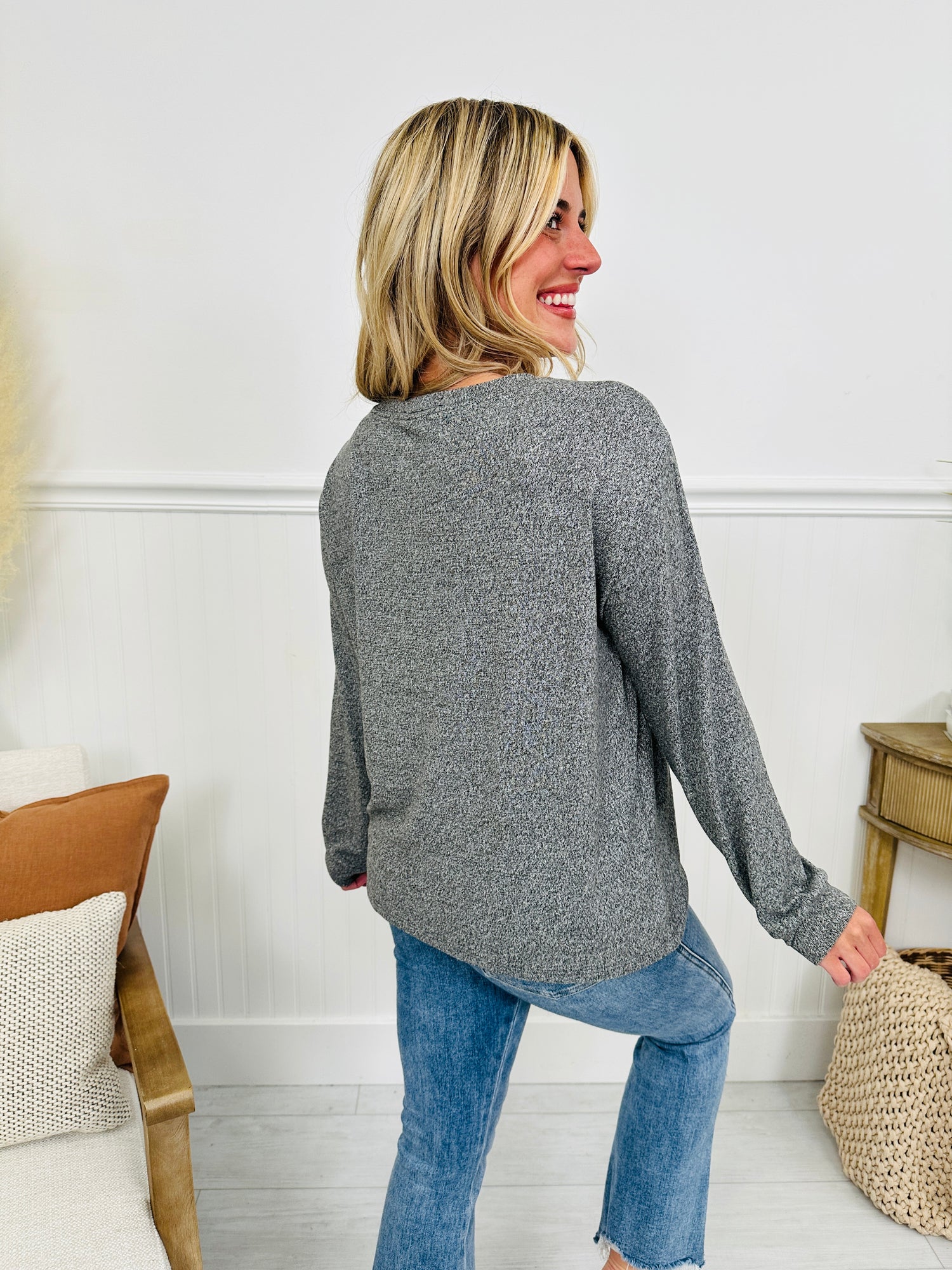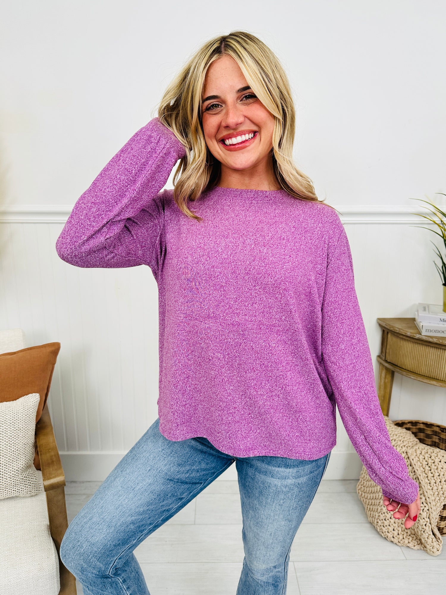 The softest top you'll ever own is here and it's going to be a go-to in your fall wardrobe! Our customers rave about this brushed soft, light weight, knit material! It is stretchy and so comfortable. This top is oversized and flowy in your true size and flattering on every single body type!