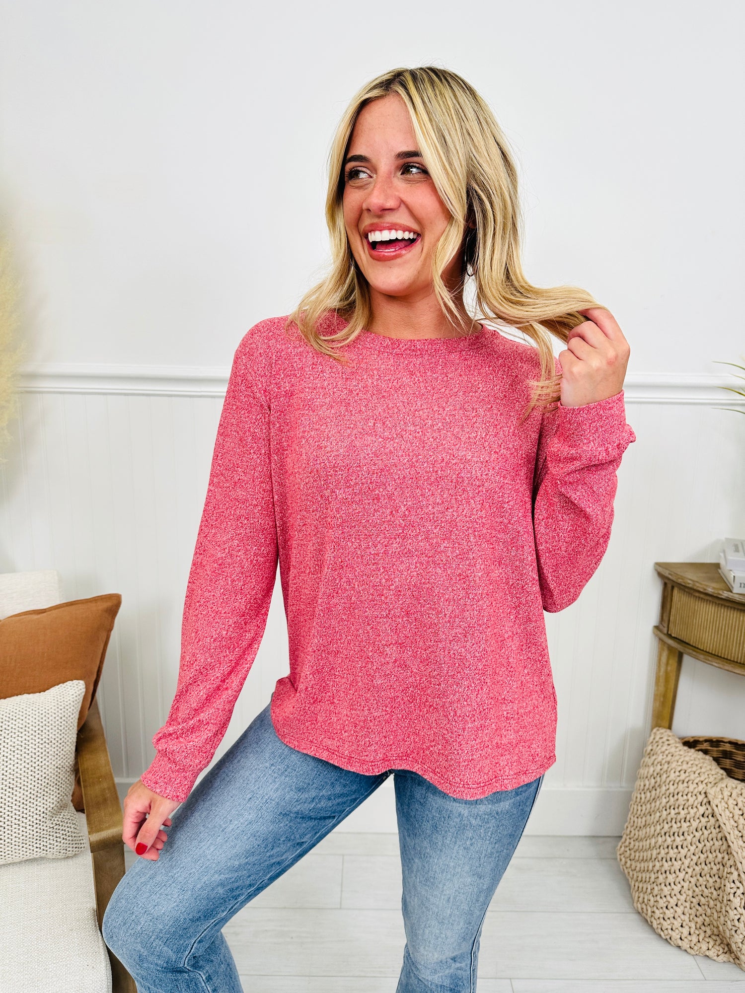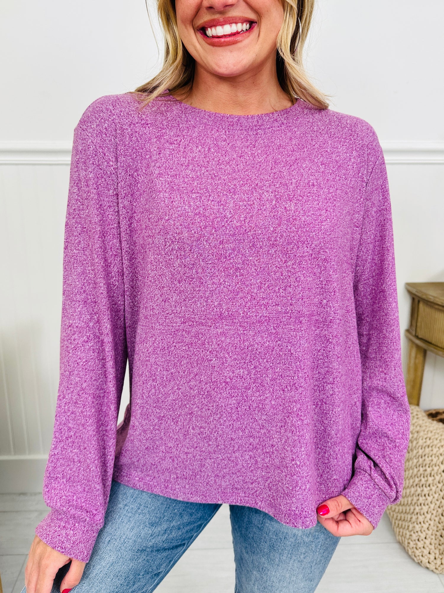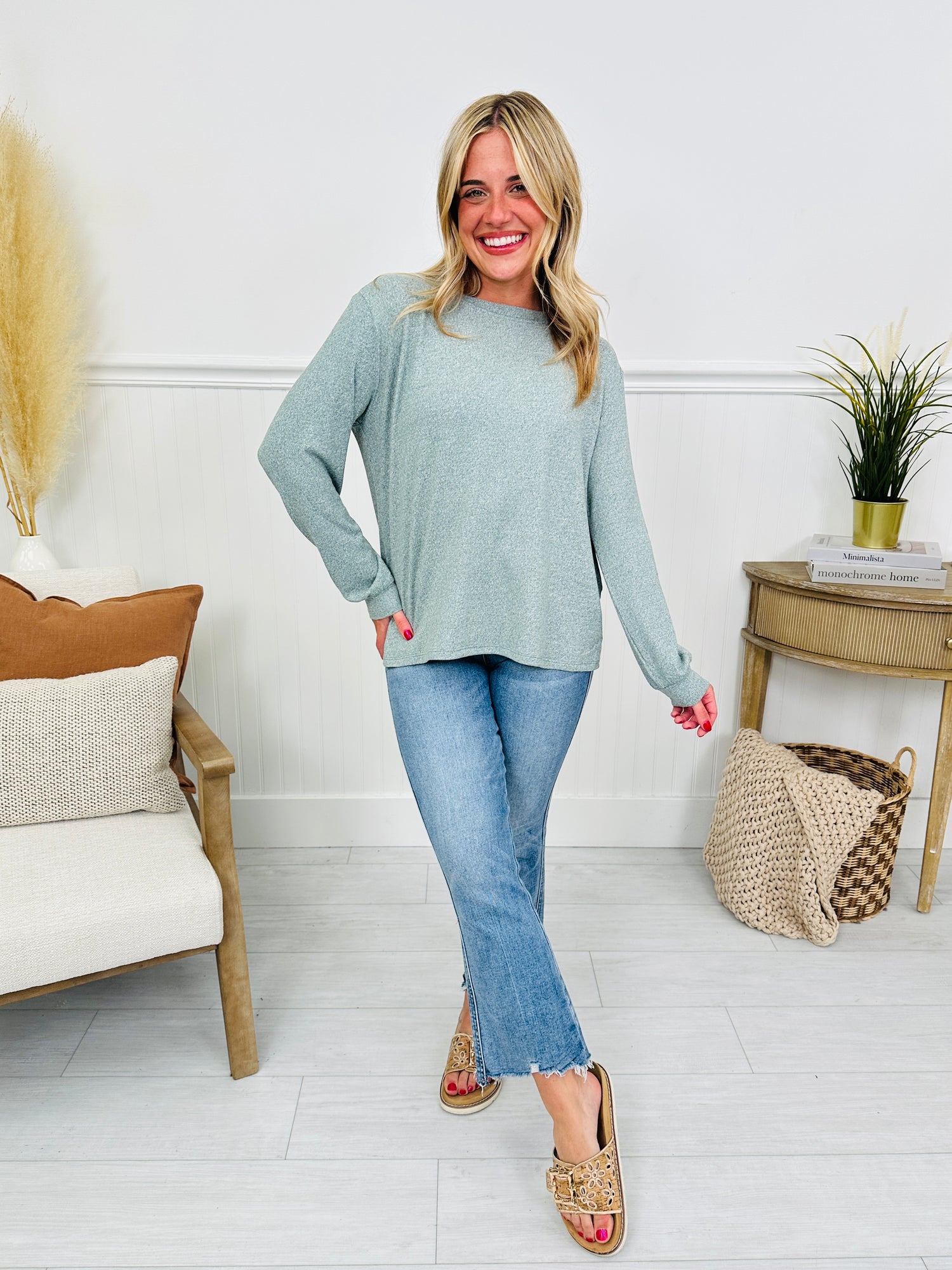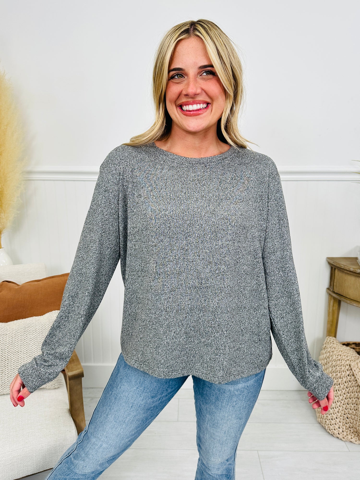 The softest top you'll ever own is here and it's going to be a go-to in your fall wardrobe! Our customers rave about this brushed soft, light weight, knit material! It is stretchy and so comfortable. This top is oversized and flowy in your true size and flattering on every single body type!