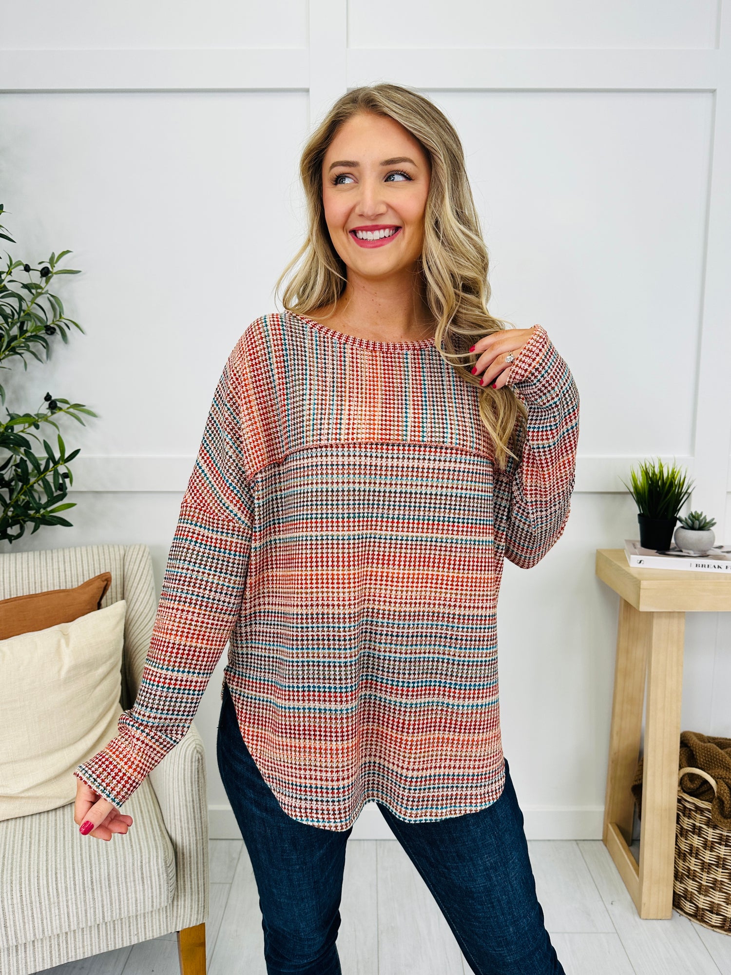 Bring a touch of color and charm to your wardrobe with this beautifully patterned top. The multi-color stripe mix gives it a playful yet polished look, while the textured knit design adds subtle dimension. With its relaxed everyday fit, this piece is perfect for pairing with your favorite denim for an effortlessly stylish outfit.
