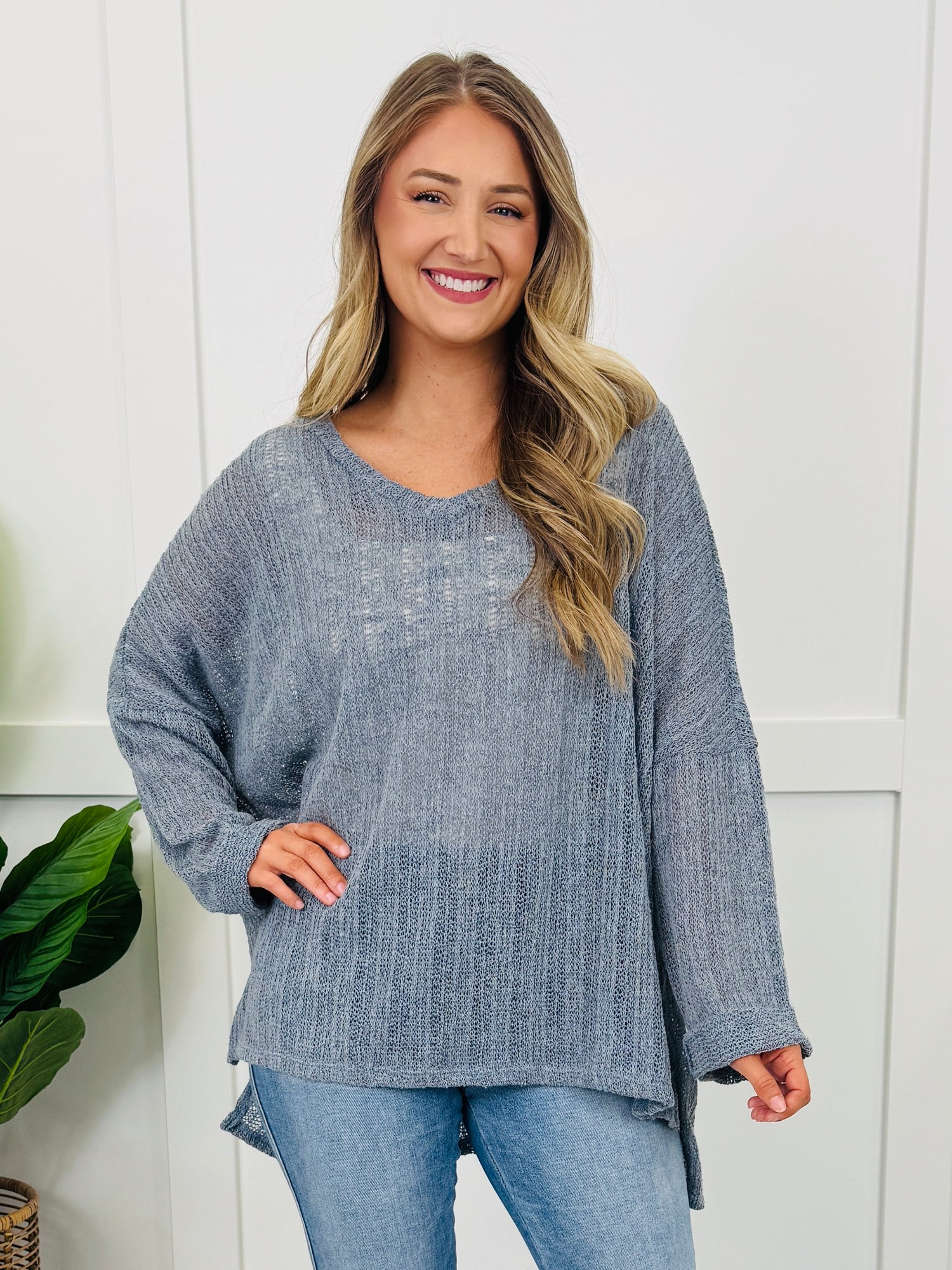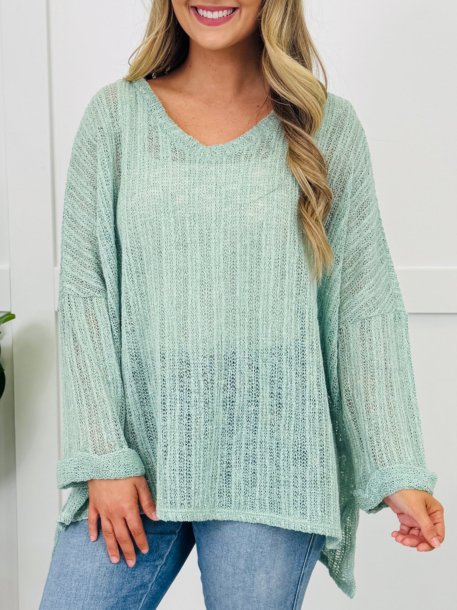 This lightweight knit top brings that easy, breezy feel with an airy open-knit texture and a flattering V-neckline. The relaxed, drapey shape keeps it comfy without feeling bulky, and the asymmetrical hem adds a little extra coverage in back for an effortlessly styled look. Since it’s more open-knit, it’s perfect with a simple tank or cami underneath for a cute, everyday outfit.